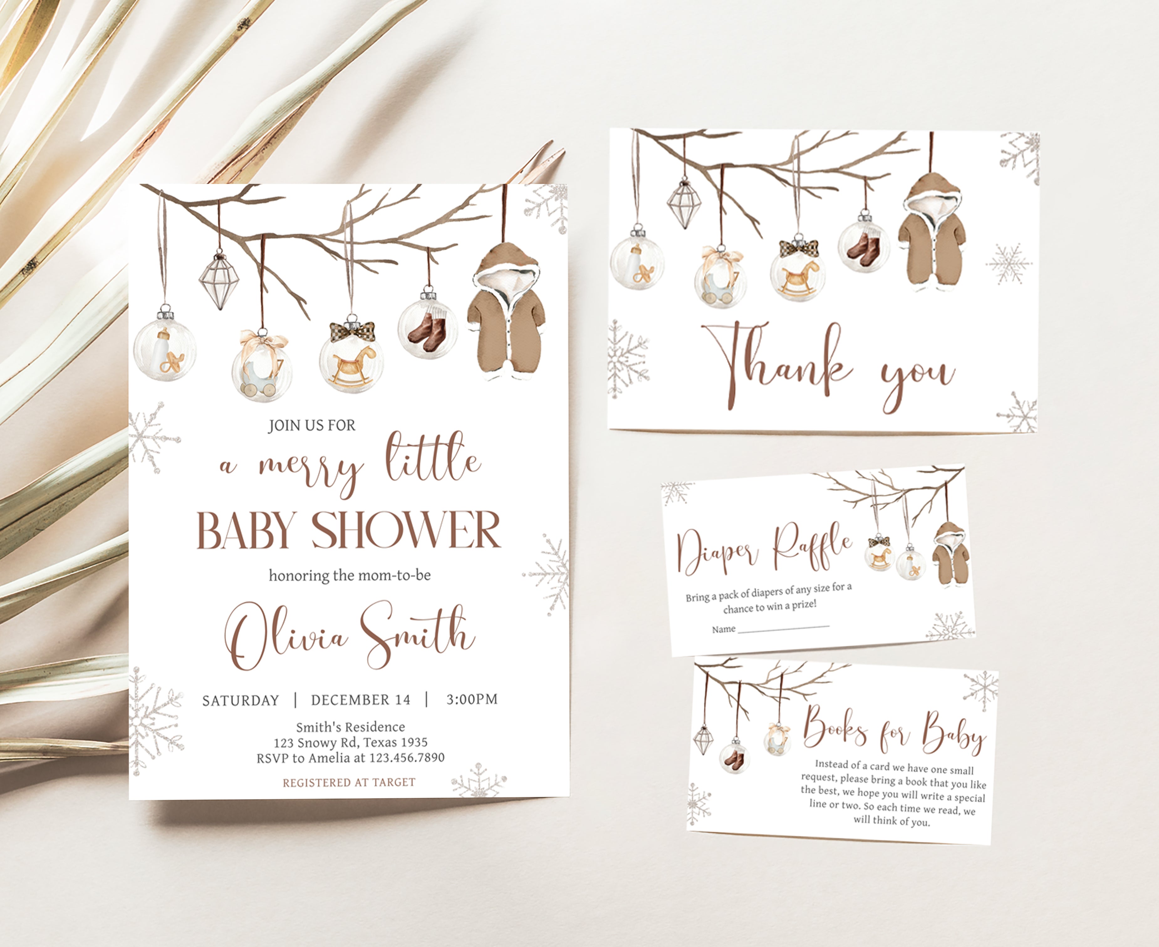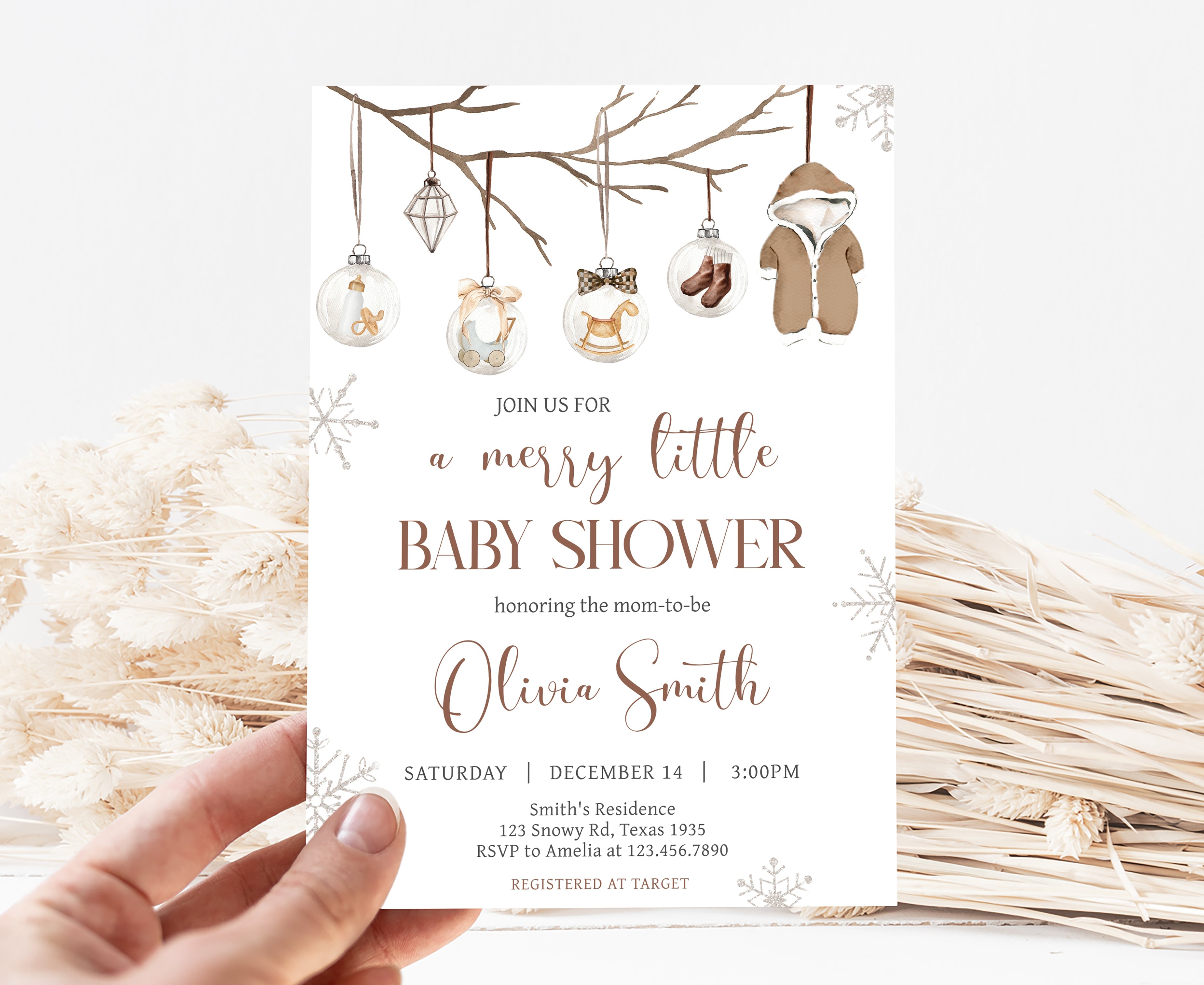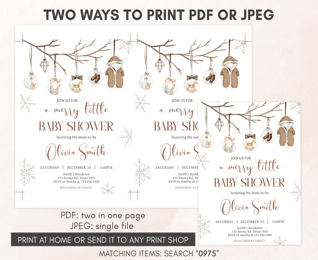 Celebrate with your guests at your Rustic Holiday Baby Shower Party using our delightful Merry Little Christmas Baby Shower Invitation Bundle. This Gender Neutral Baby Clothes Baby Shower Invite is the ideal choice to set the tone for a Christmas-themed celebration.
