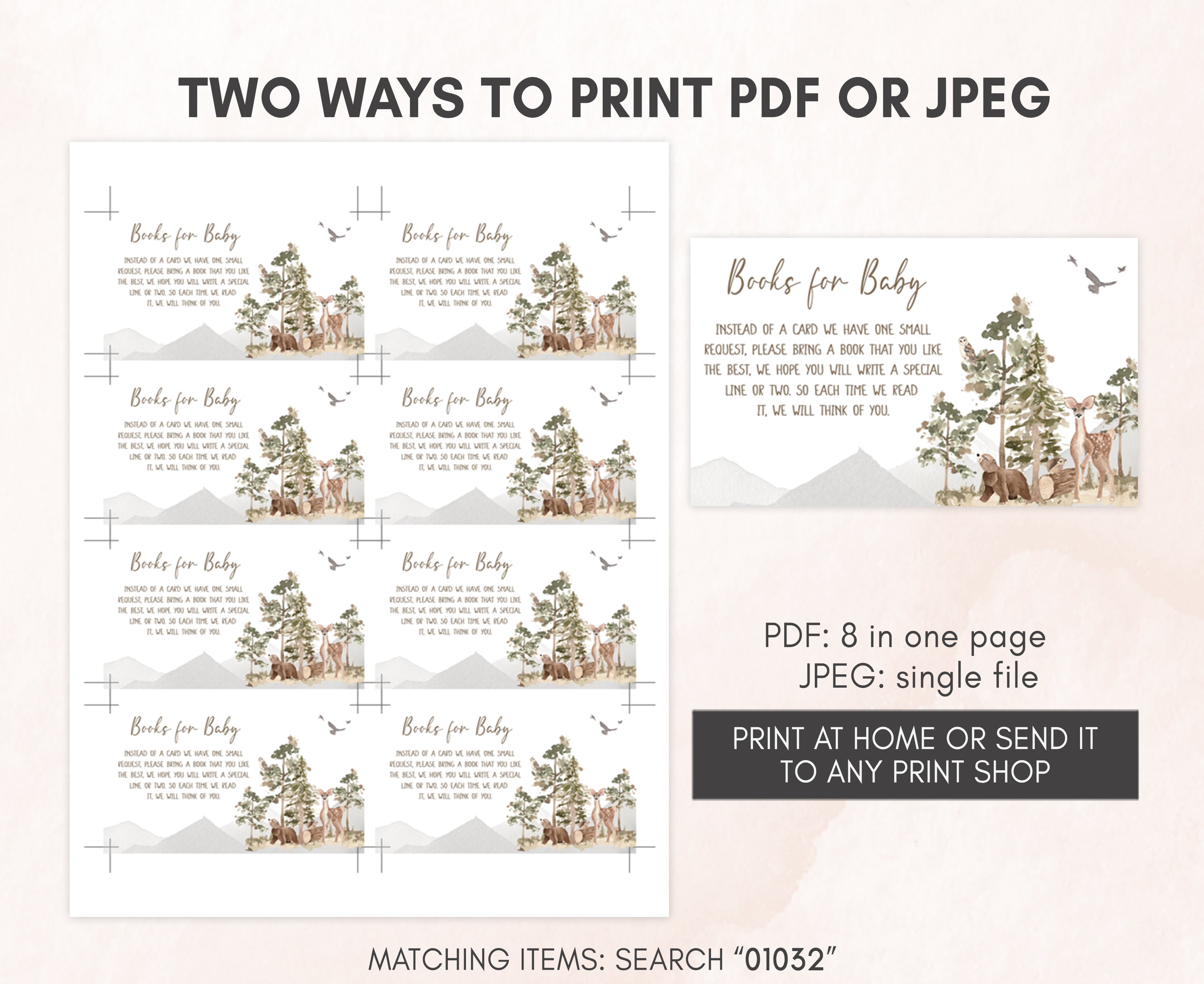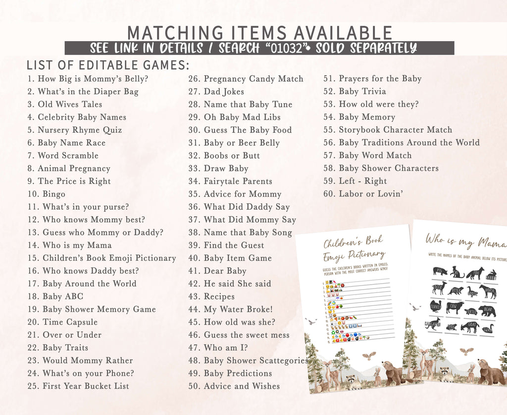 ➡ Visit this link for all the matching items for Gender Neutral Woodland Baby Shower theme: