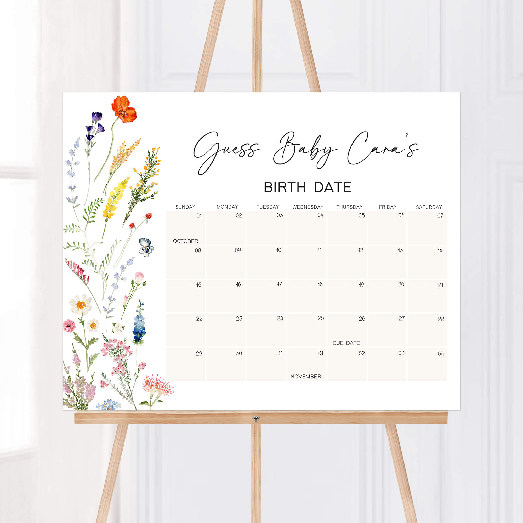 Partake in the excitement of your Wildflower Baby Shower Party with our Baby in Bloom Due Date Game! Embrace the adorable spirit of the Botanical Garden Baby Shower party as guests make their predictions for the due date, coming together to share in the anticipation of the upcoming arrival. Complete the joy and fun with this Spring Baby Shower Birthday Predictions.