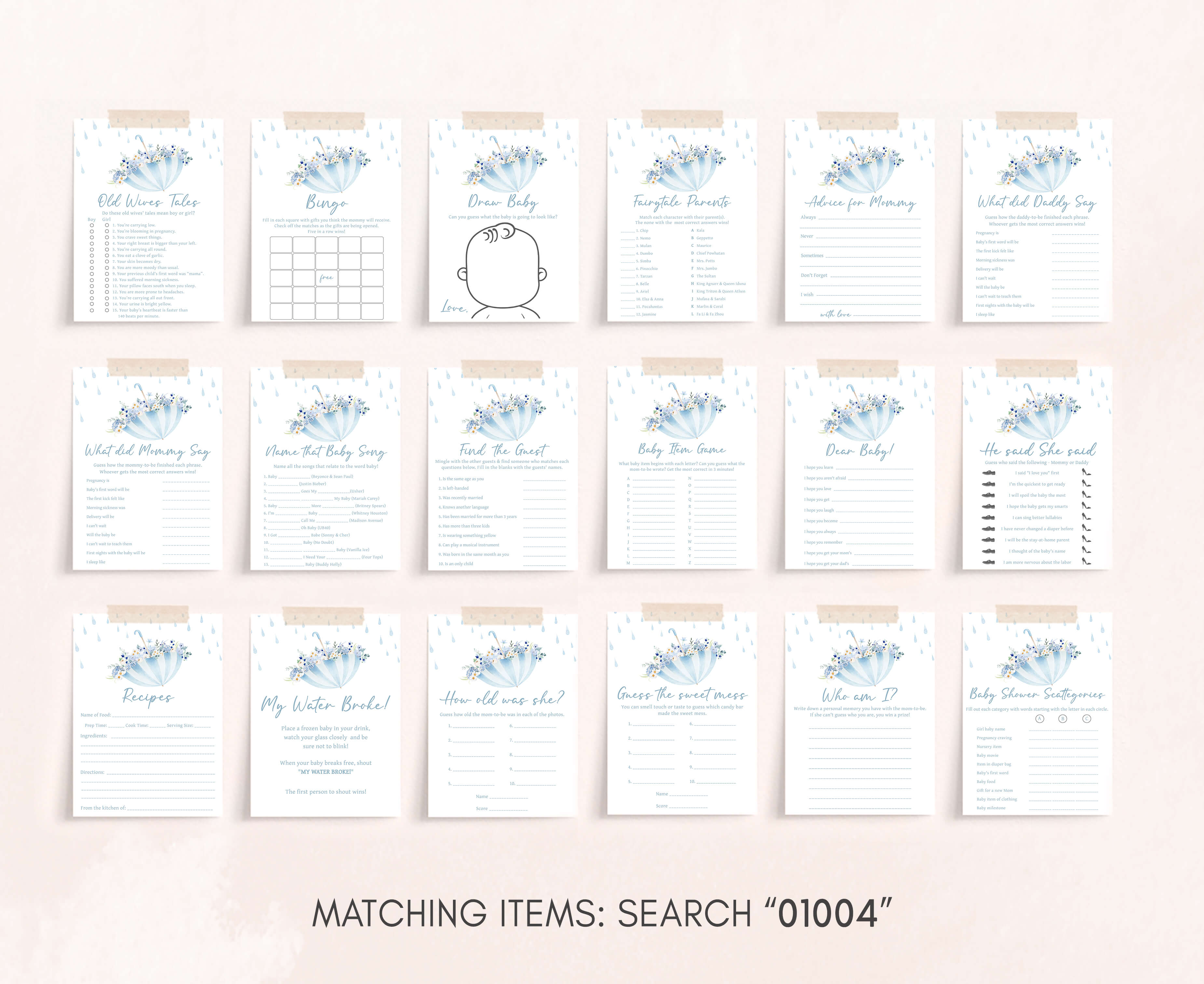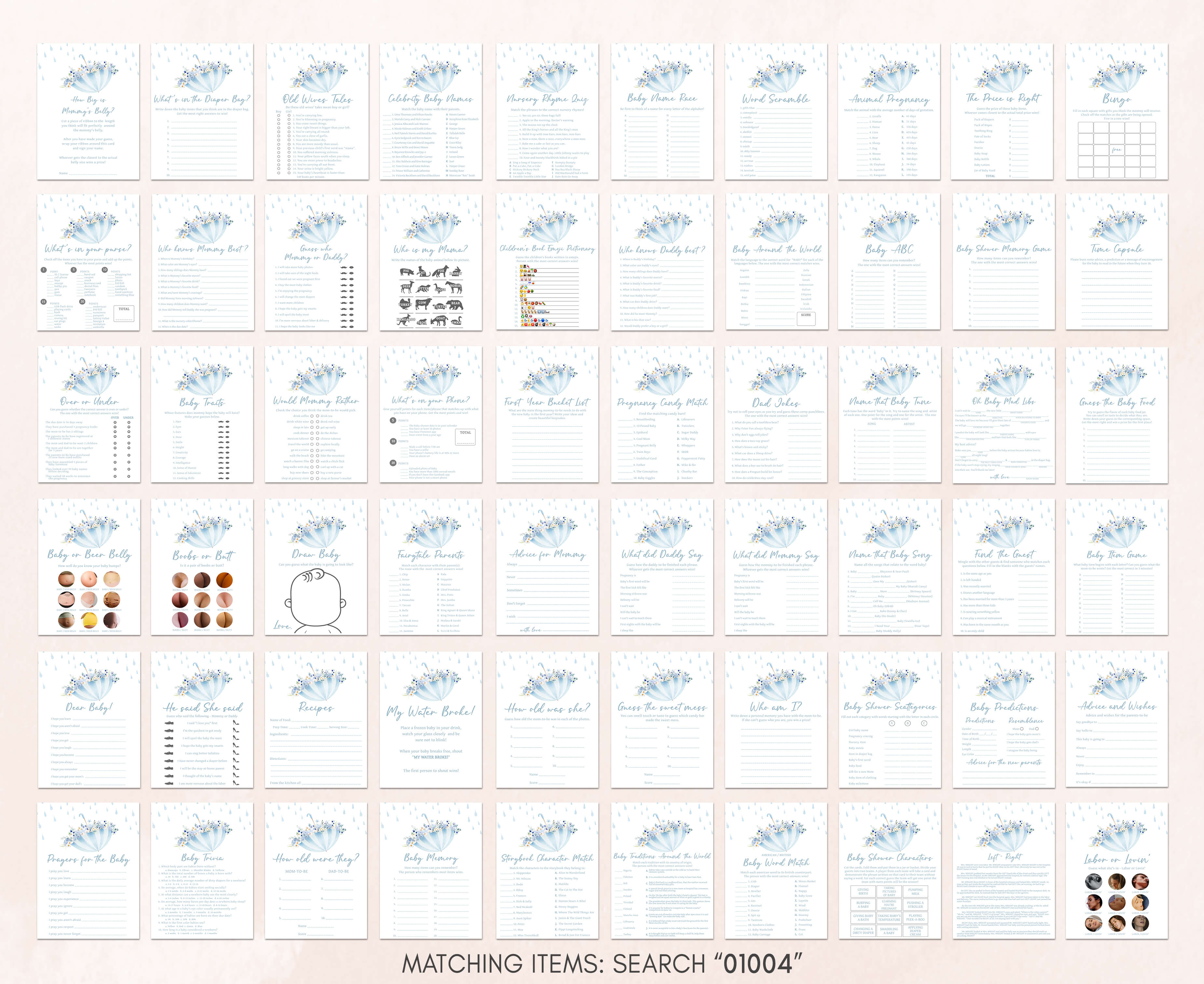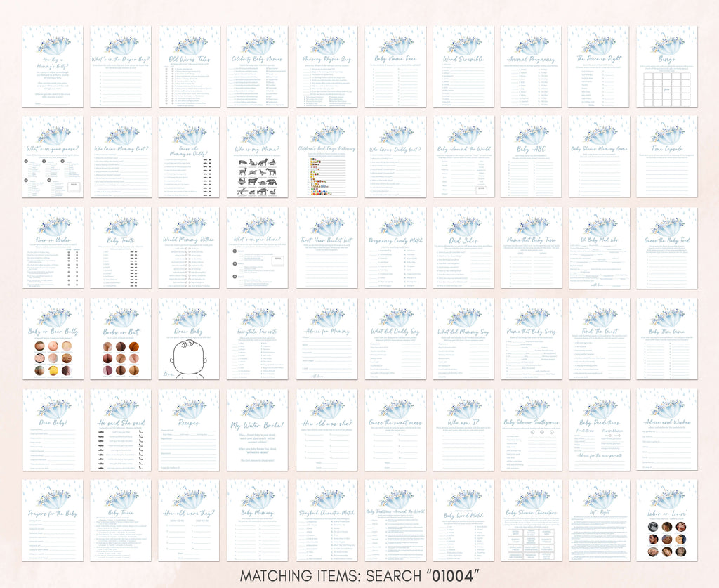 Make your Blue Spring Baby Shower Party a joyous and laughter-filled occasion with our charming Rain Showers Games Set. Packed with heartwarming activities and entertaining challenges, these Floral Umbrella Baby Shower Game Pack will infuse your celebration with unforgettable moments, crafting cherished memories along the way.