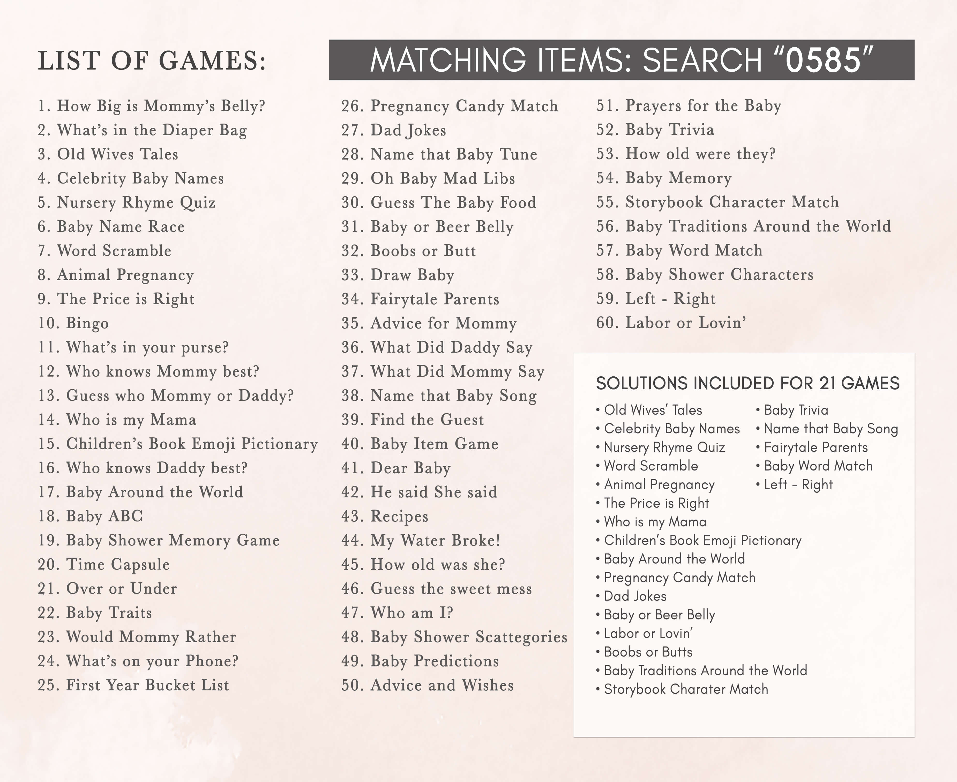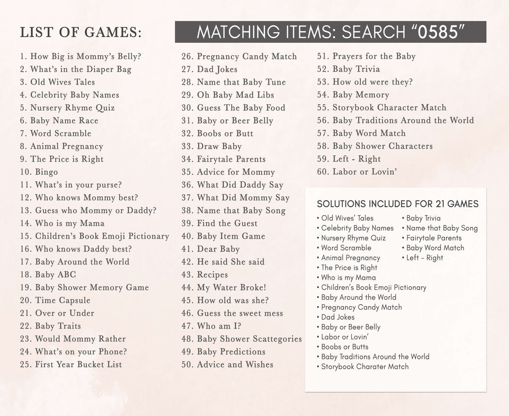 Discover the ultimate collection of baby shower games in a single package, each one fully editable for a personalized touch. Enjoy the top 60 Editable Baby Shower Game Cards, sized at 5" x 7", ensuring endless fun and entertainment for your celebration.