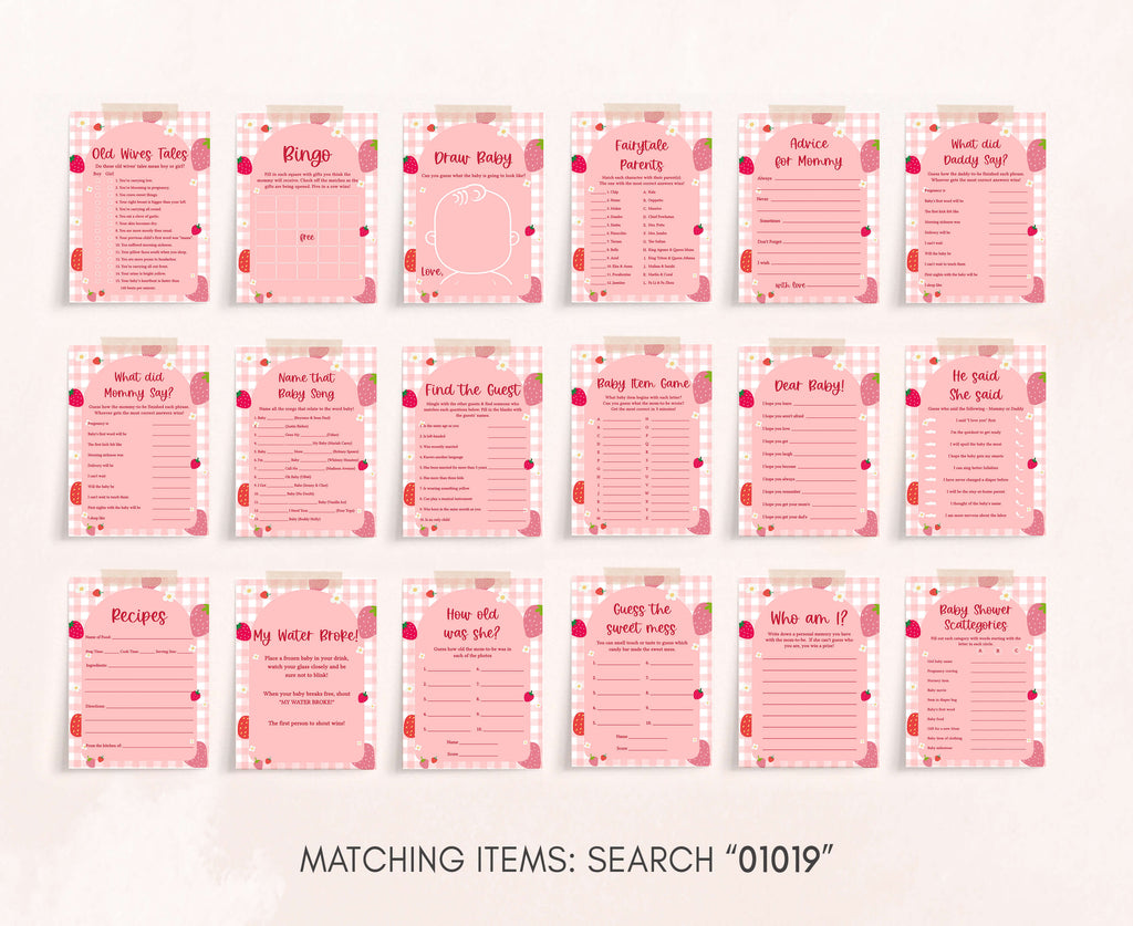 Make your Pink Gingham Strawberry Baby Shower Party a joyous and laughter-filled occasion with our charming Berry Sweet on the Way Games Set. Packed with heartwarming activities and entertaining challenges, these Spring Summer Strawberry Baby Shower Game Pack will infuse your celebration with unforgettable moments, crafting cherished memories along the way.