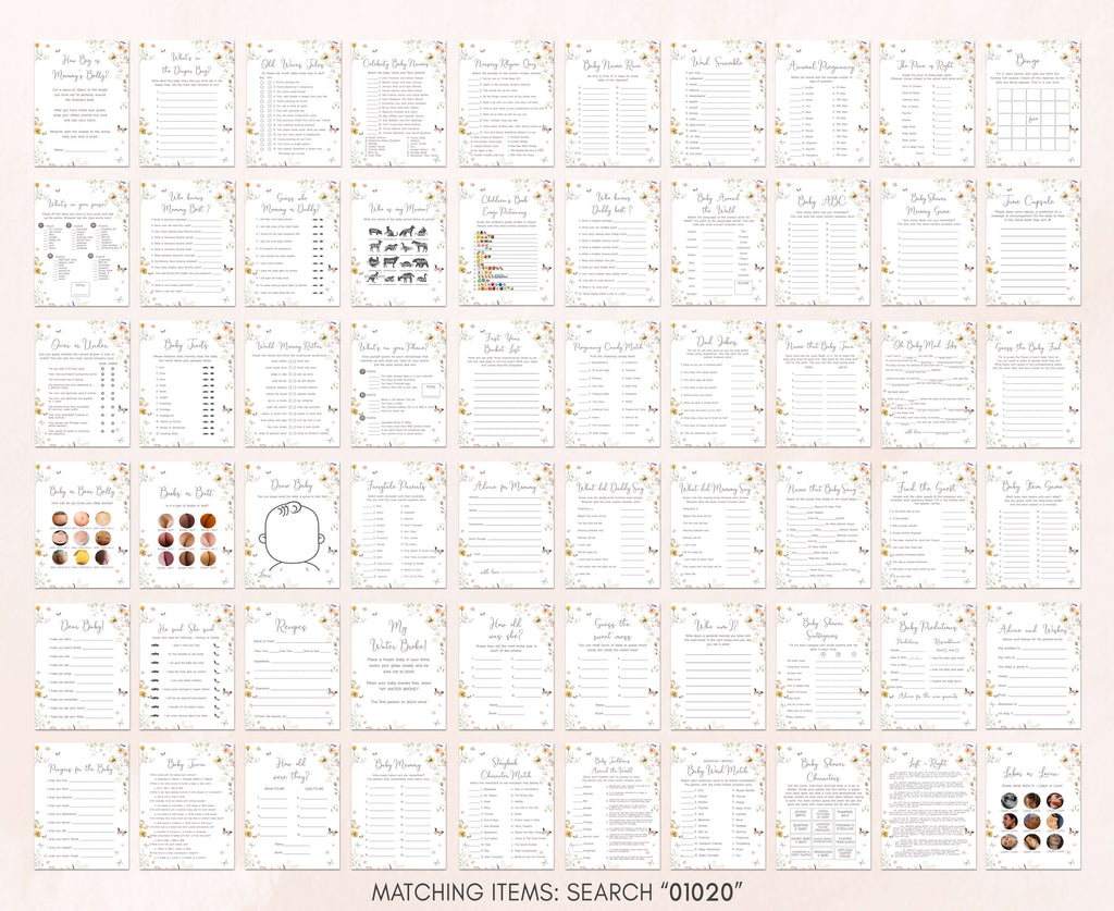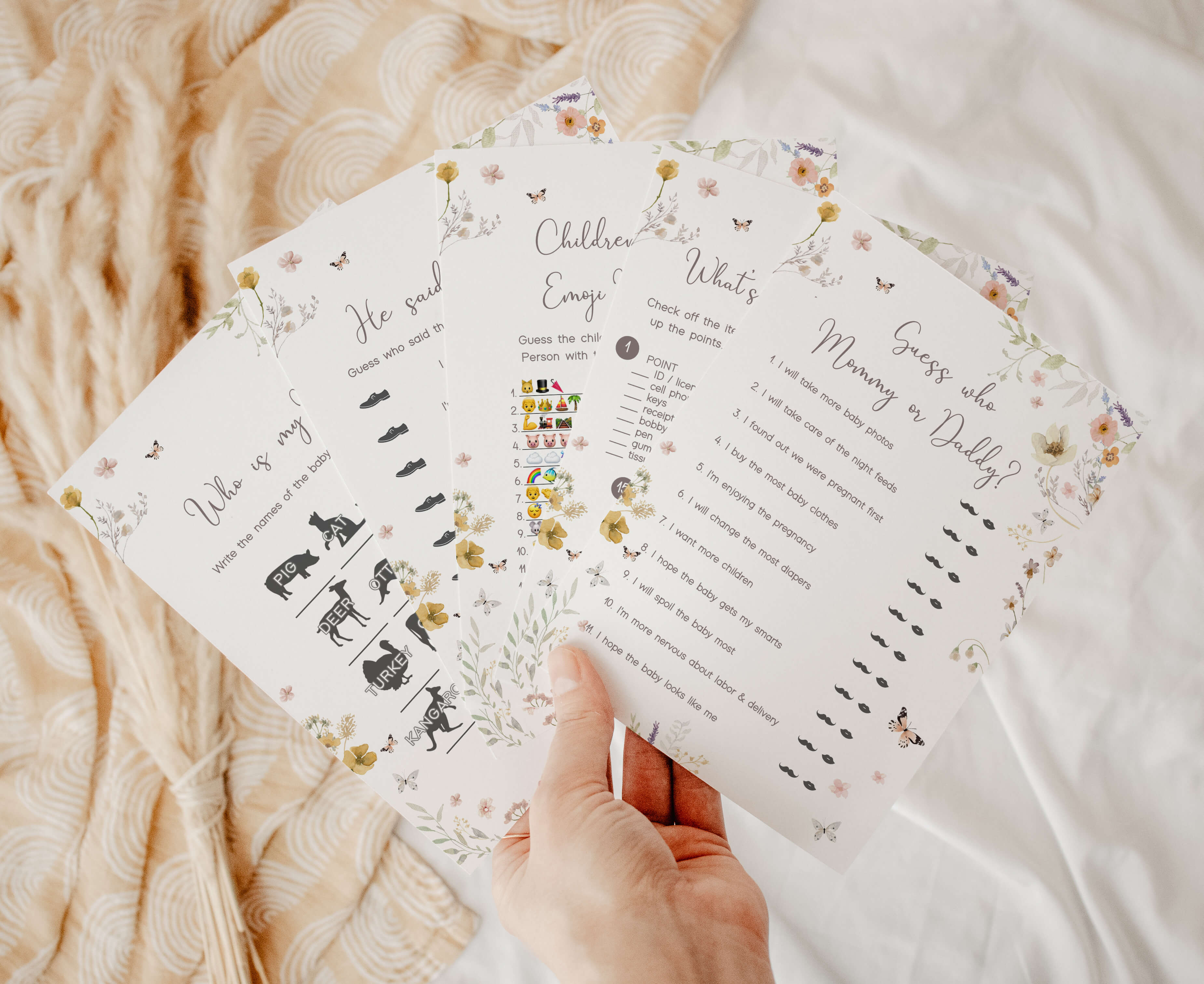 Make your Boho Wildflower Baby Shower Party a joyous and laughter-filled occasion with our charming Spring Butterfly Floral Games Set. Packed with heartwarming activities and entertaining challenges, these Little Wildflower on the Way Baby Shower Game Pack will infuse your celebration with unforgettable moments, crafting cherished memories along the way.