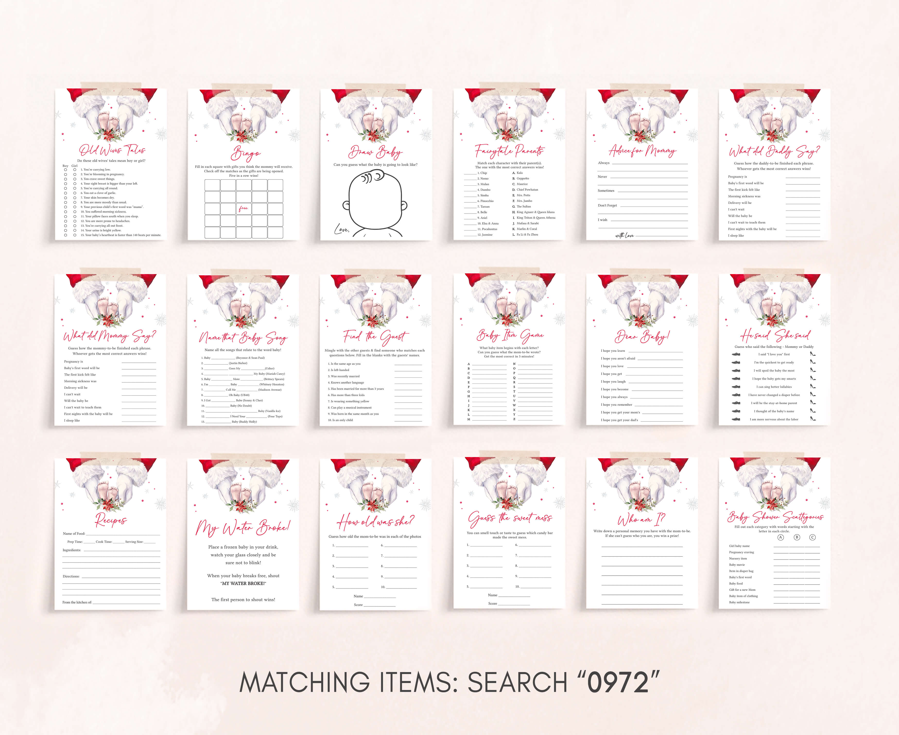 Make your Minimalist Christmas Baby Shower Party a joyous and laughter-filled occasion with our charming Baby Santa Claus Games Set. Packed with heartwarming activities and entertaining challenges, these Festive Holiday Baby Shower Game Pack will infuse your celebration with unforgettable holiday moments, crafting cherished memories along the way.