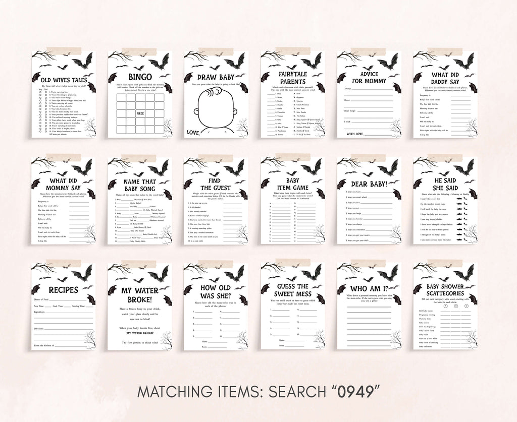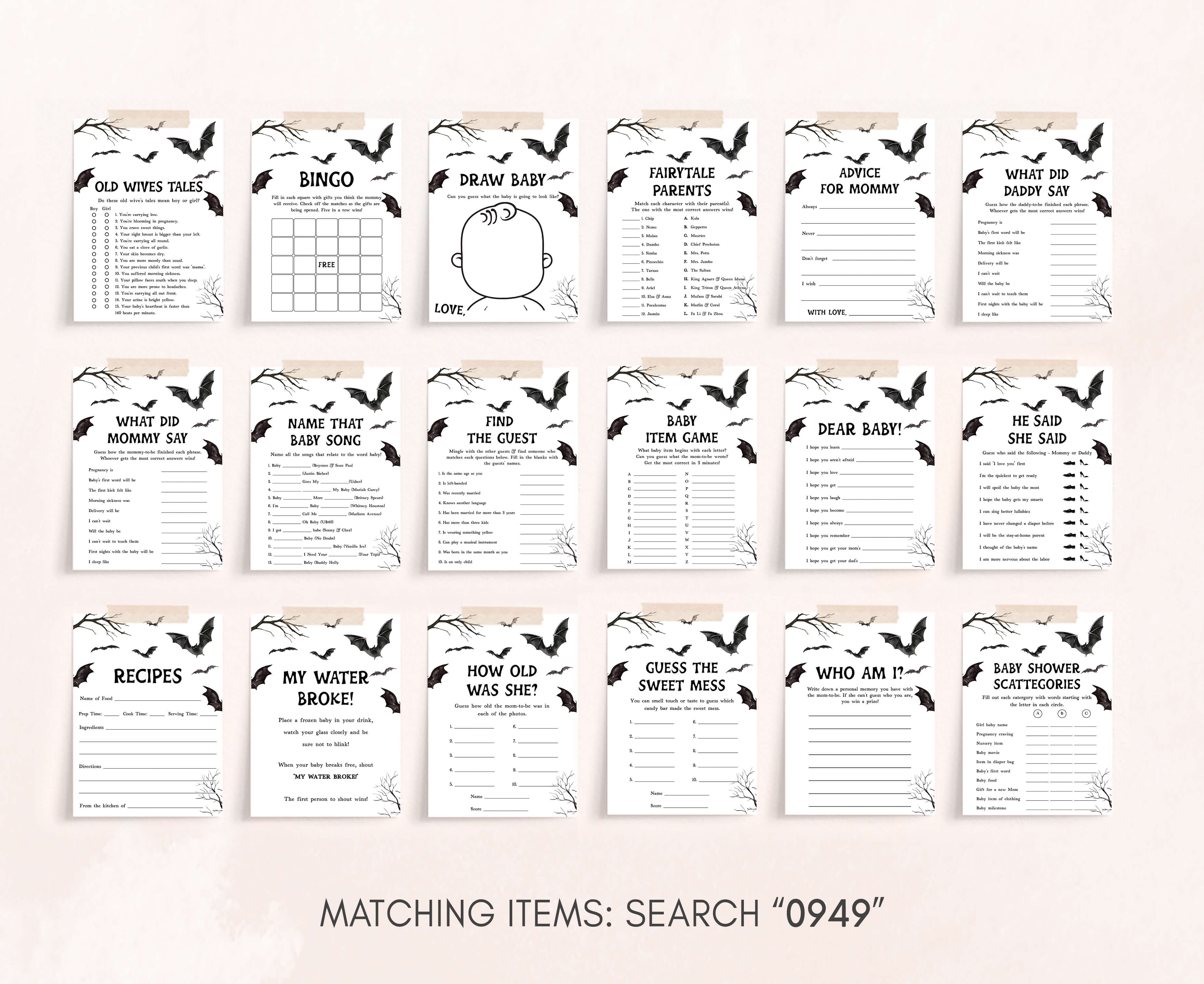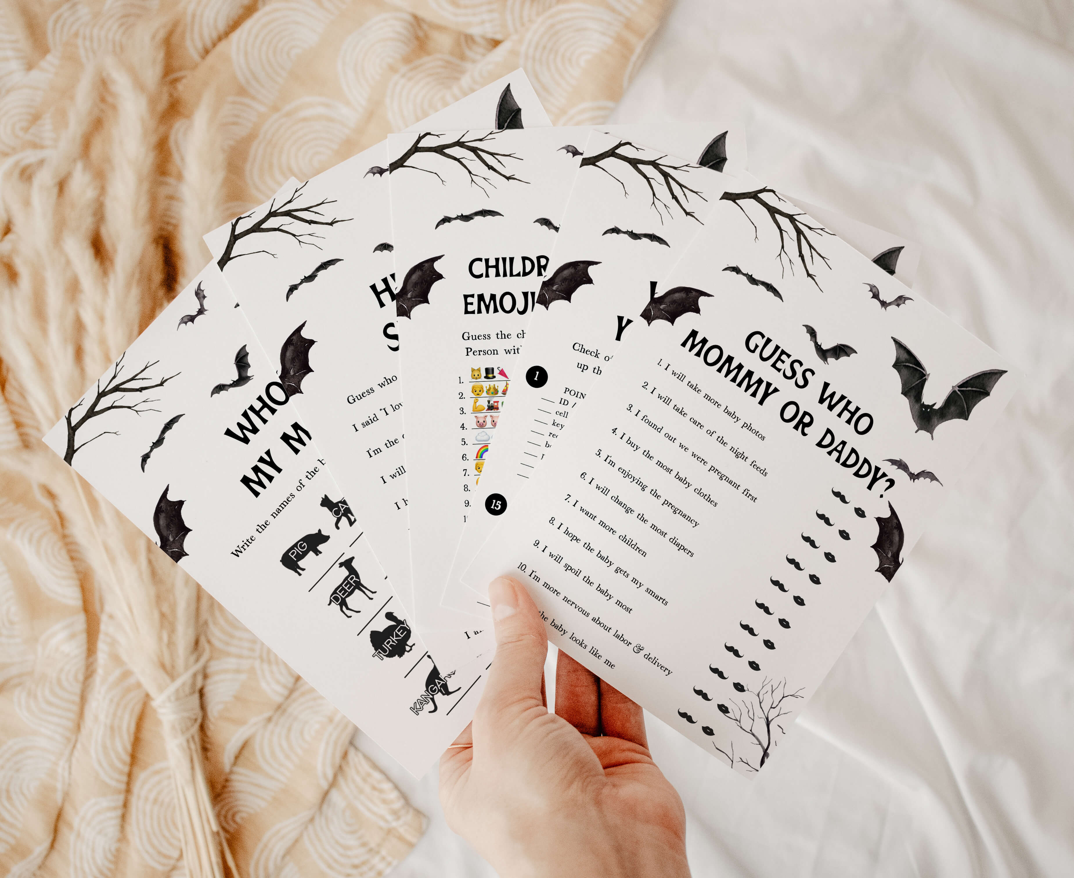 Make your Gender Neutral Baby Shower Party a joyous and laughter-filled occasion with our charming Spooky Bat Halloween Games Set. Packed with heartwarming activities and entertaining challenges, these Black and White Baby Shower Game Pack will infuse your celebration with unforgettable moments, crafting cherished memories along the way.