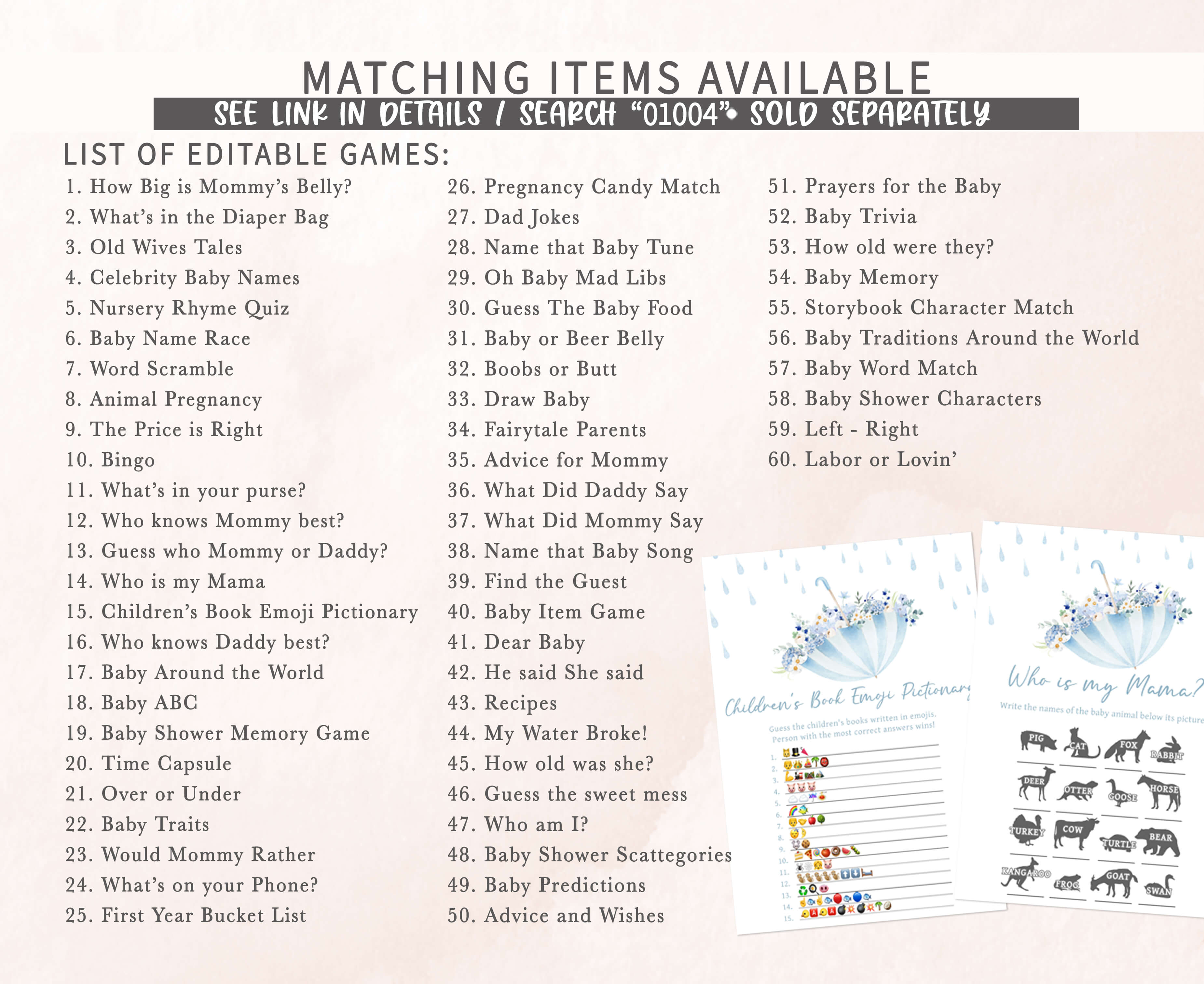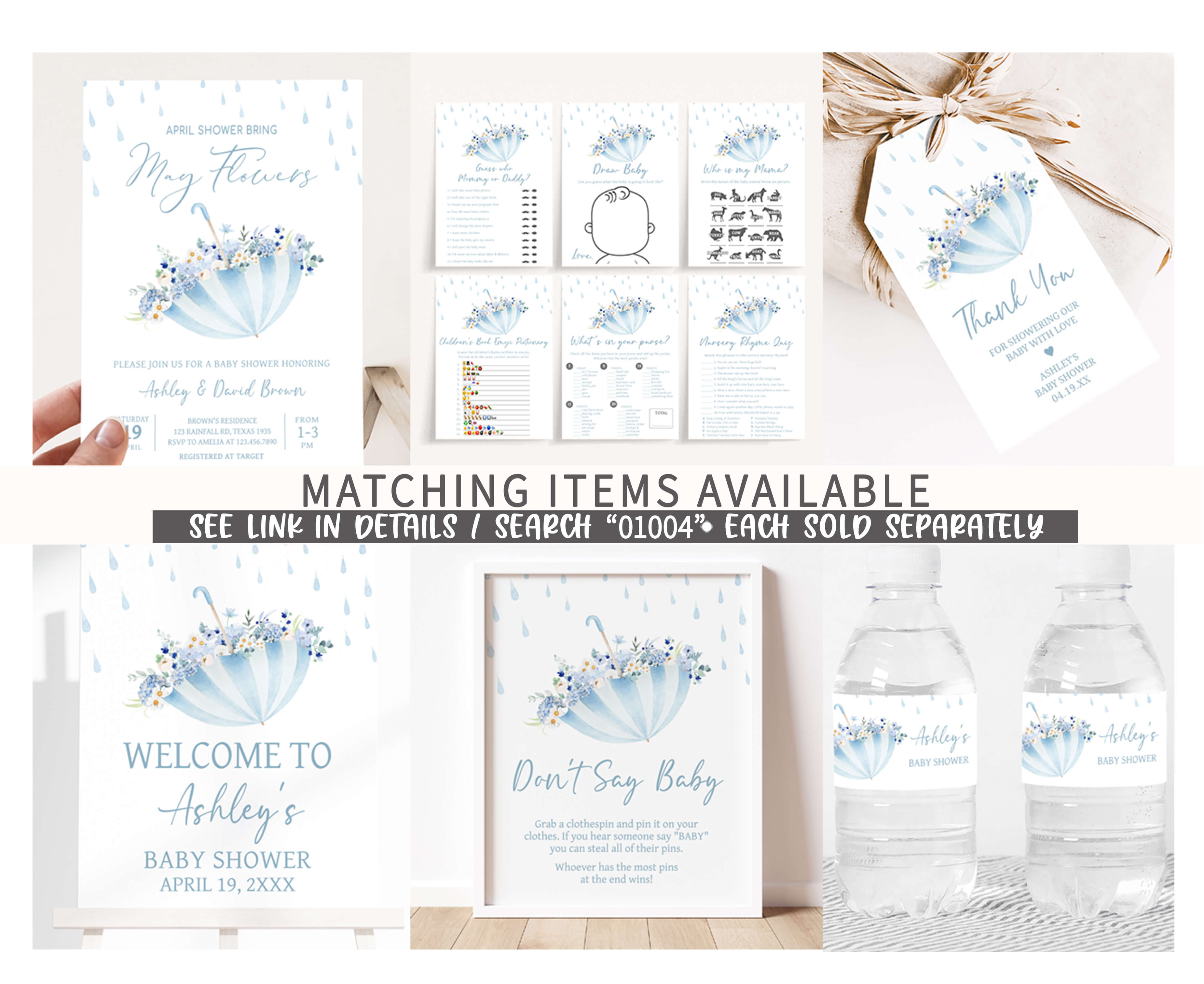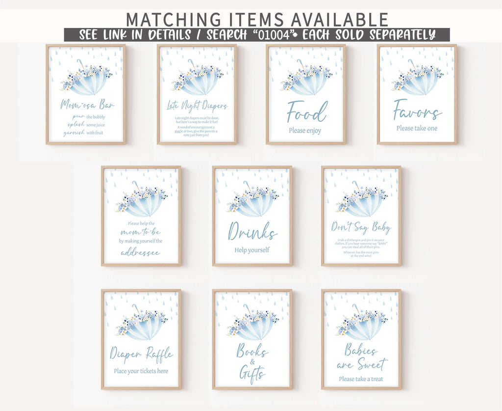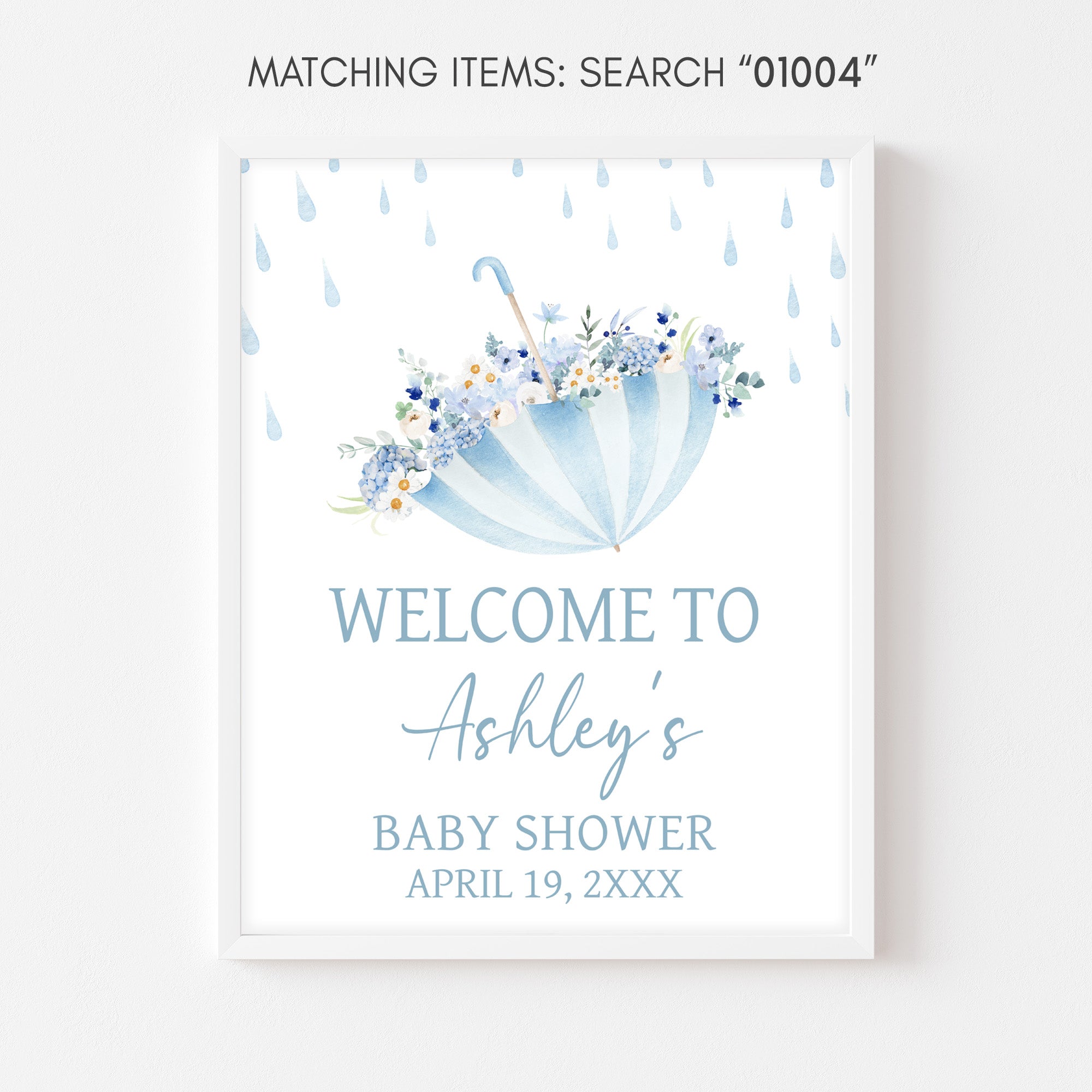 Elevate the charm of your Blue Spring Baby Shower Party with the Rain Showers Welcome Sign Printable. With its blooming design, it effortlessly captivates attention and enhances the overall ambiance, playfully guiding your guests to the heart of the Floral Umbrella Baby Shower celebration.