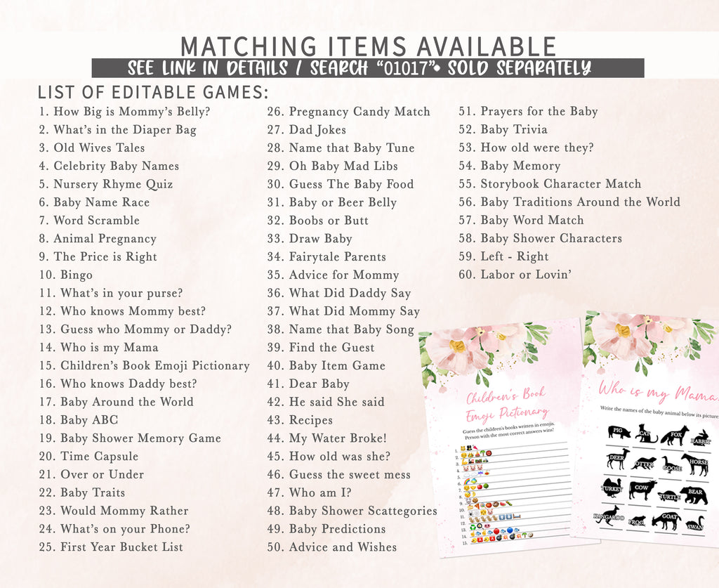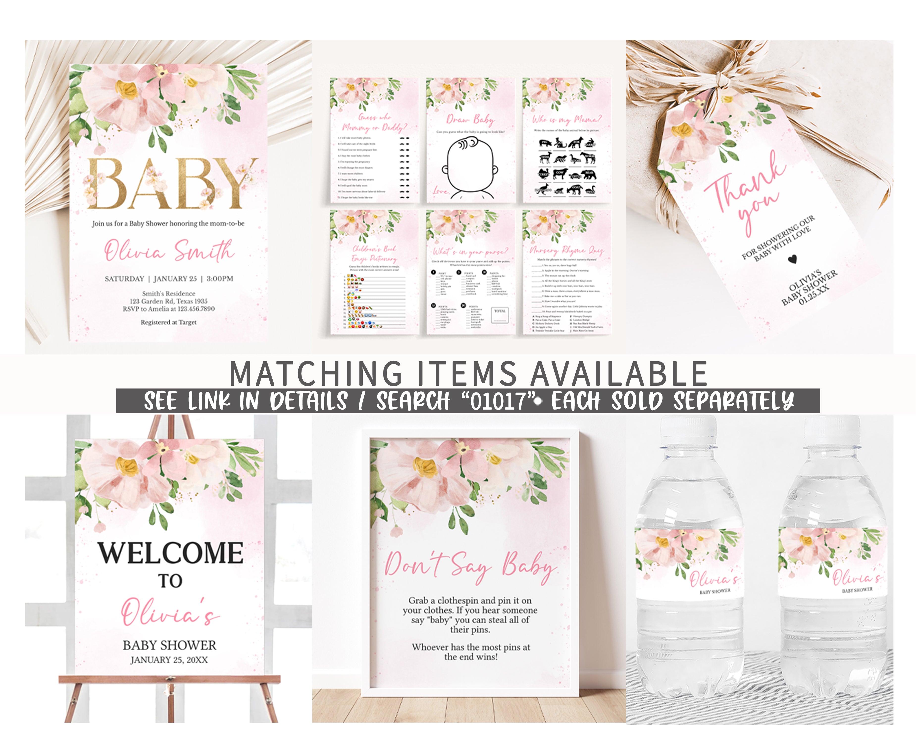 ➡ Visit this link for all the matching items for Flower Girl Baby Shower theme: