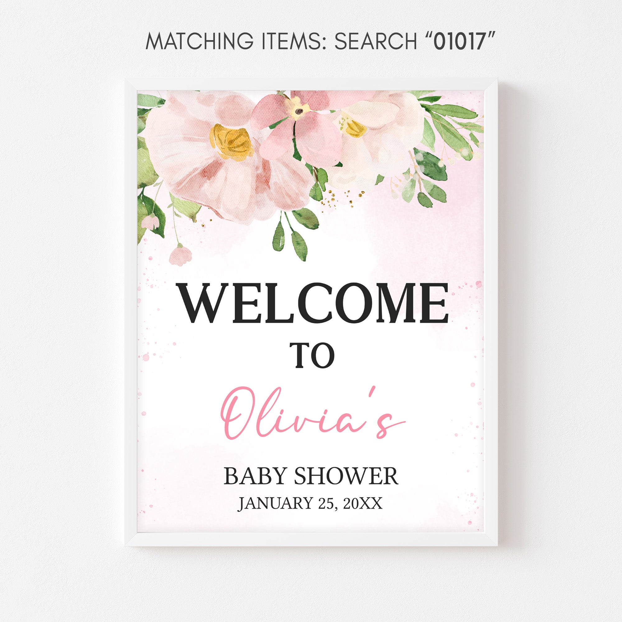 Elevate the charm of your Pastel Spring Baby Shower Party with the Pink Floral Welcome Sign Printable. With its blooming design, it effortlessly captivates attention and enhances the overall ambiance, playfully guiding your guests to the heart of the Watercolor Flowers Baby Shower celebration.