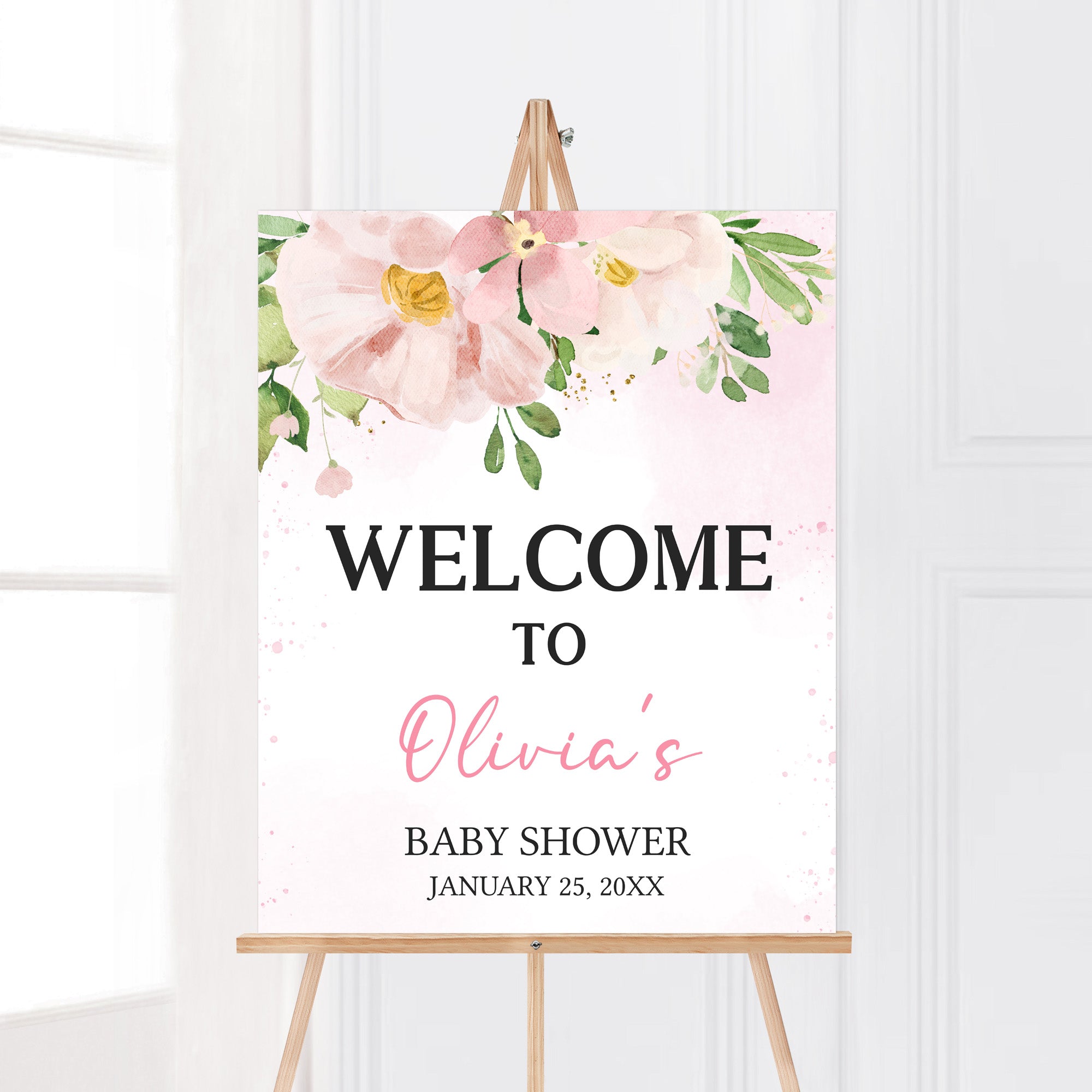 Editable Floral Spring Baby Shower Welcome Sign