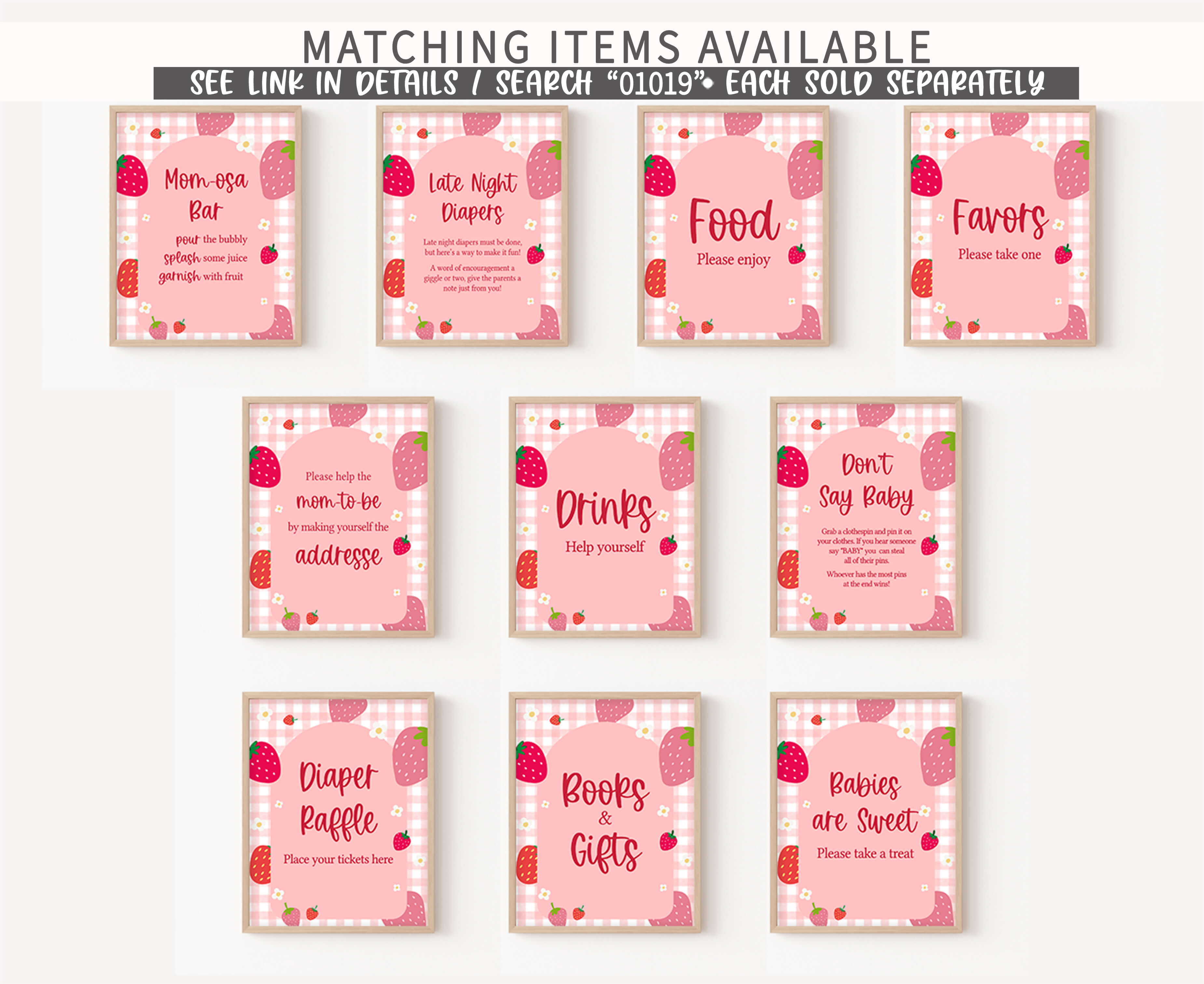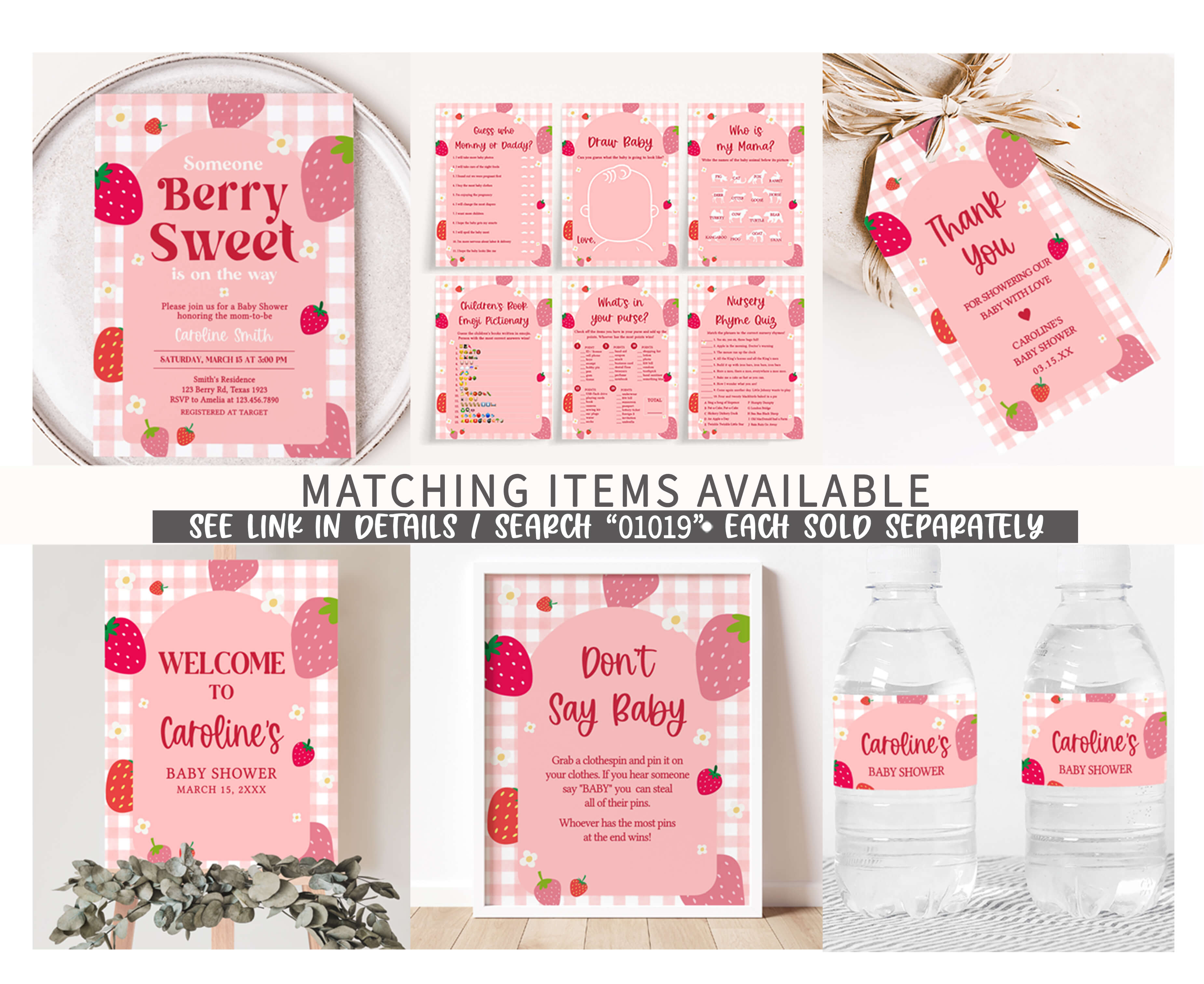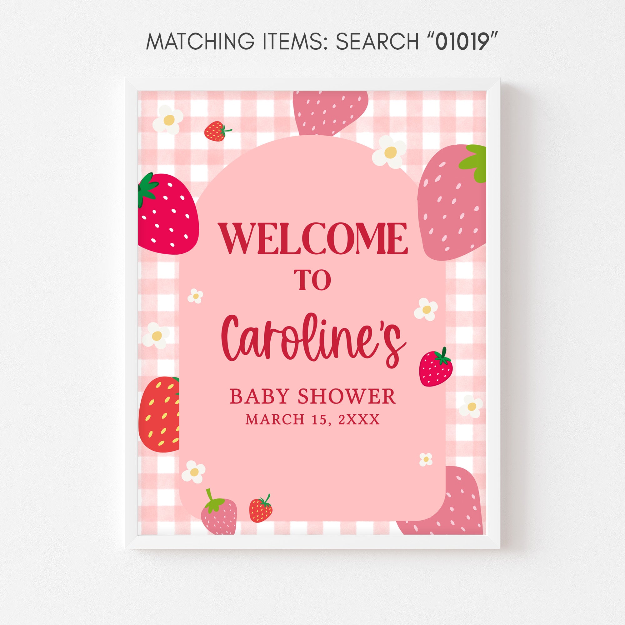 Elevate the charm of your Pink Gingham Strawberry Baby Shower Party with the Berry Sweet on the Way Welcome Sign Printable. With its vibrant design, it effortlessly captivates attention and enhances the overall ambiance, playfully guiding your guests to the heart of the Spring Summer Strawberry Baby Shower celebration.
