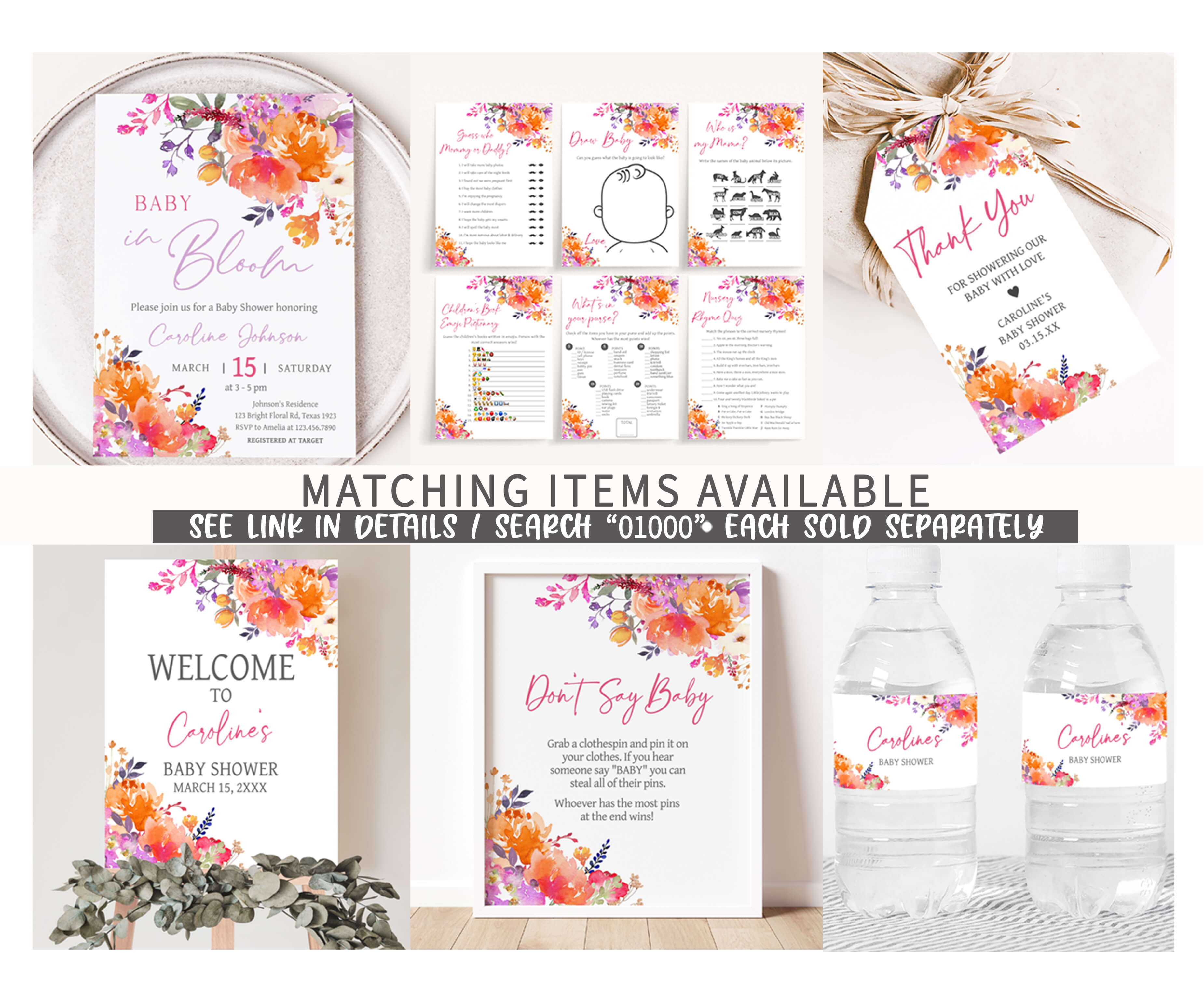 ➡ Visit this link for all the matching items for Spring Girl Baby Shower theme: