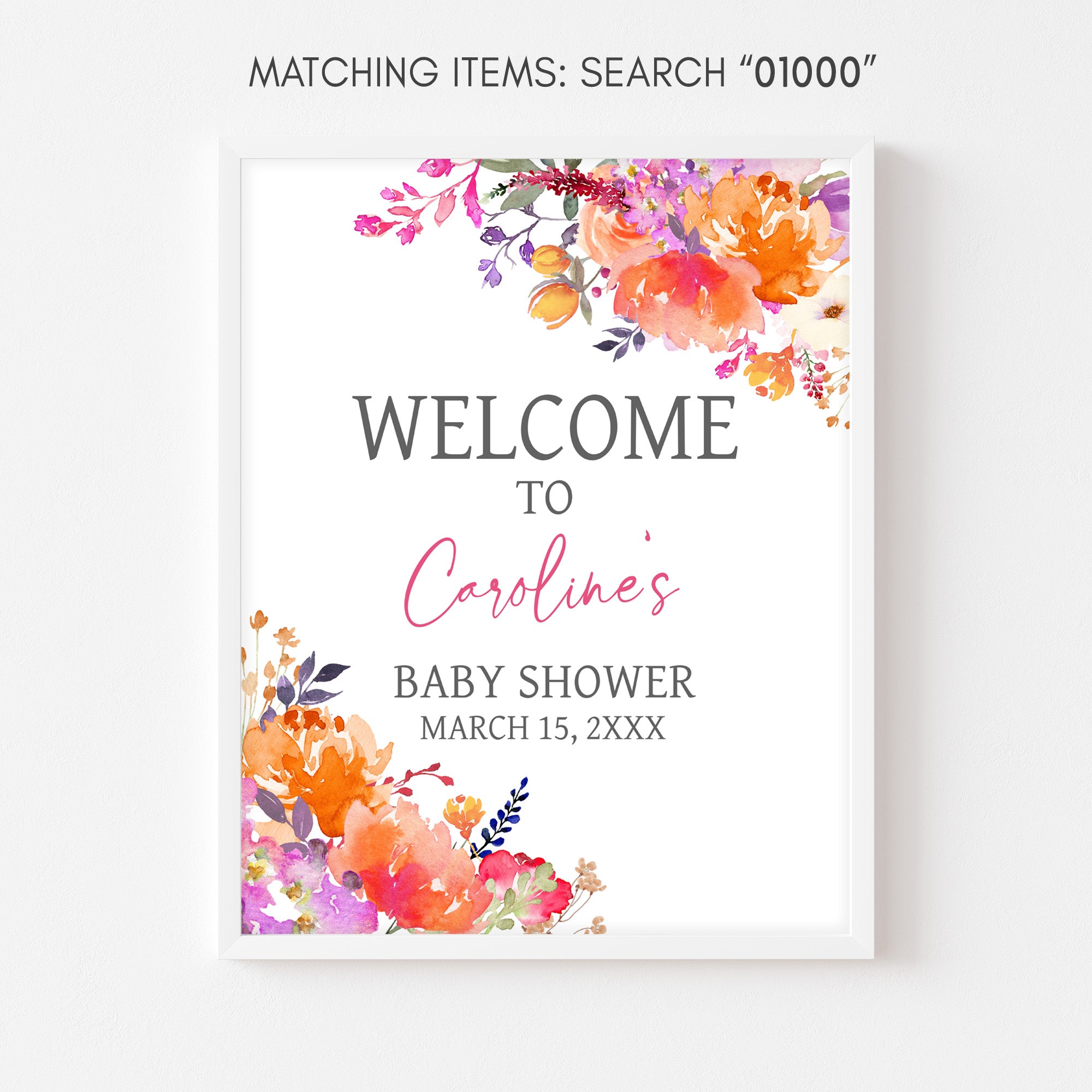 Elevate the charm of your Spring Flower Baby Shower Party with the Watercolor Floral Welcome Sign Printable. With its blooming design, it effortlessly captivates attention and enhances the overall ambiance, playfully guiding your guests to the heart of the Floral Baby Girl Baby Shower celebration.
