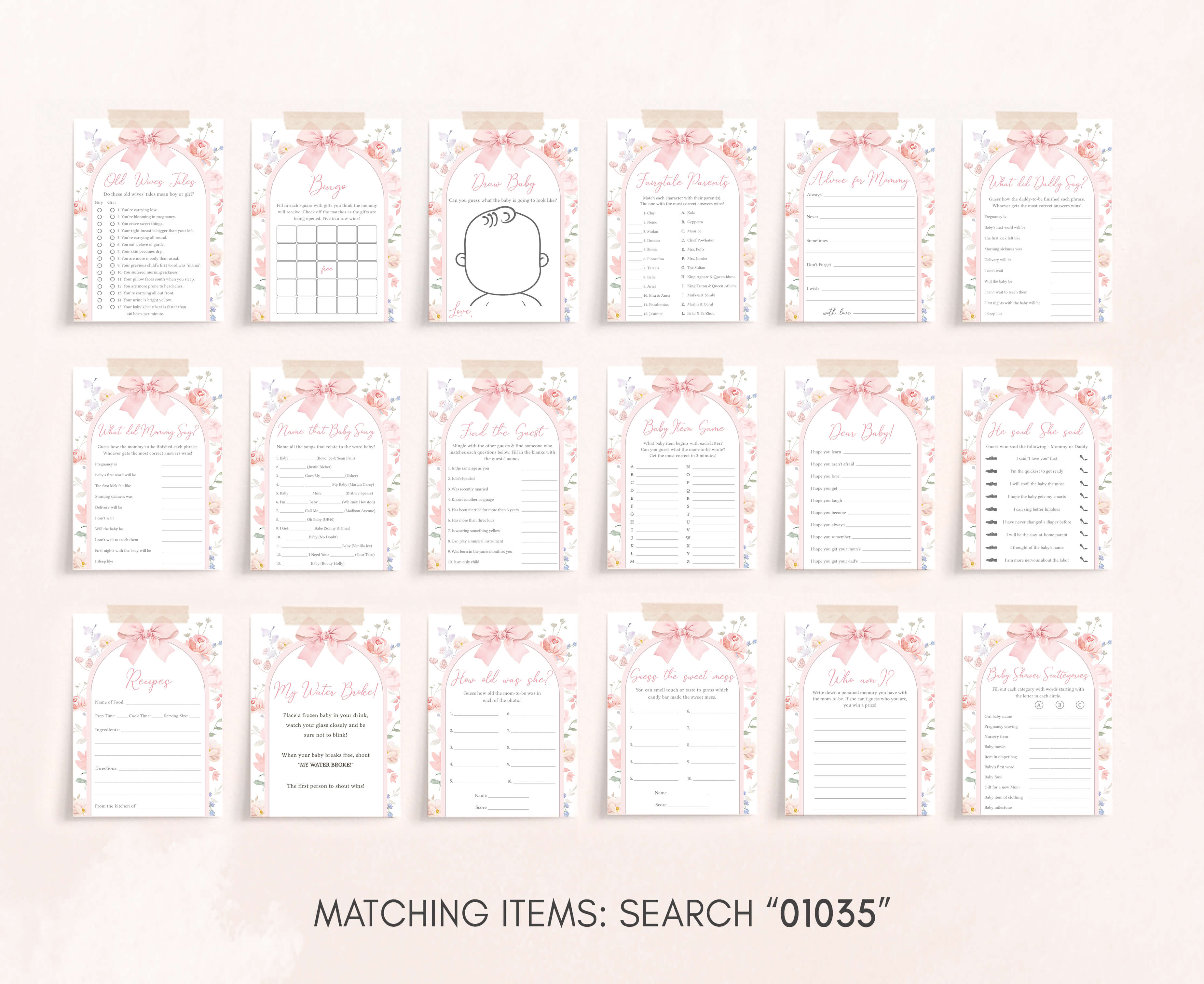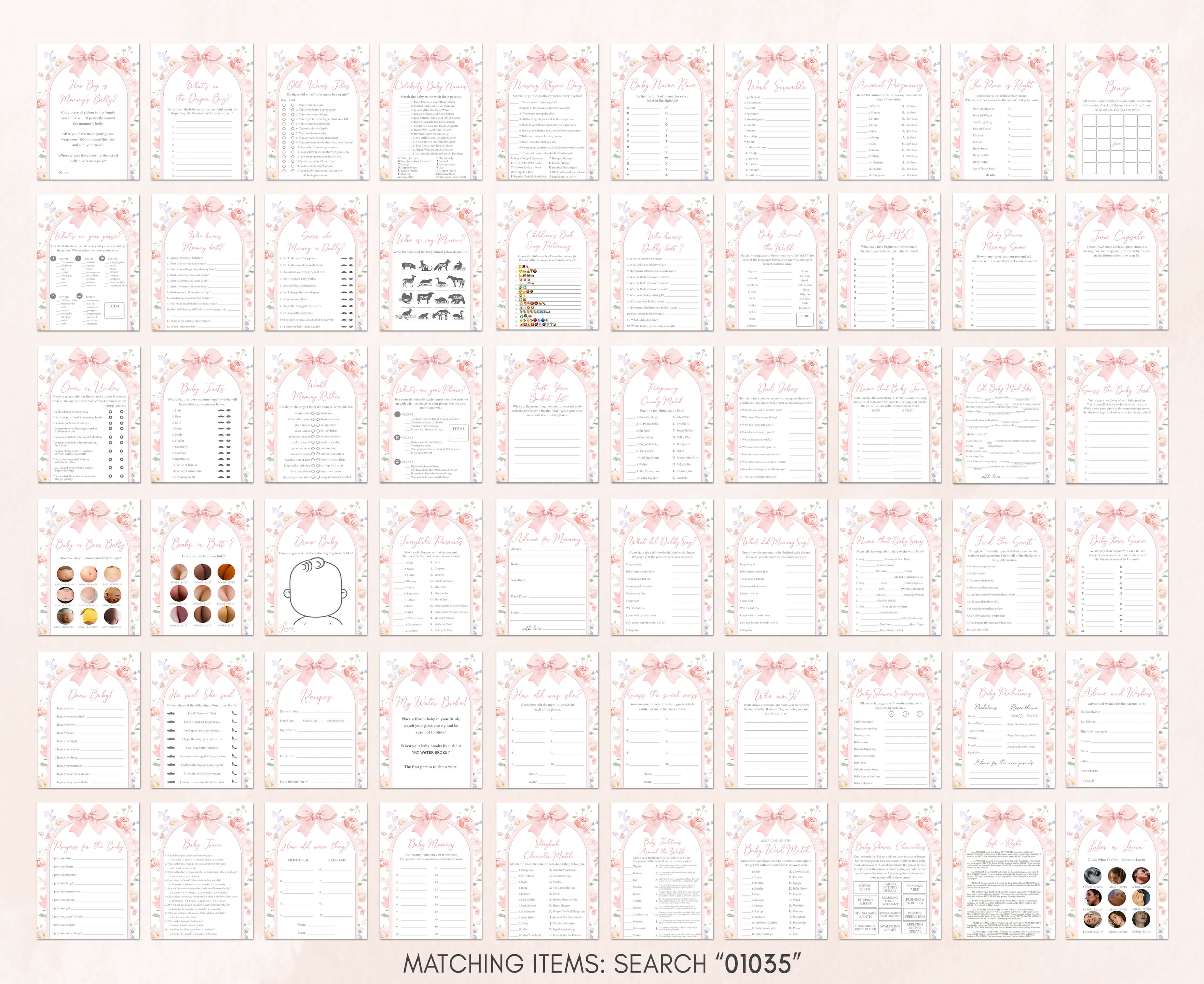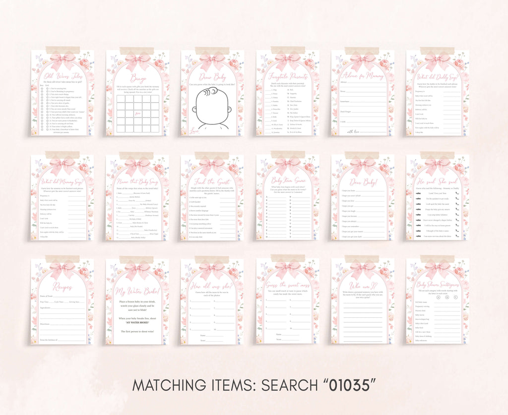Make your Spring Bow Baby Shower Party a joyous and laughter-filled occasion with our charming Pastel Flower Arch Games Set. Packed with heartwarming activities and entertaining challenges, these Pink Floral Ribbon Baby Shower Game Pack will infuse your celebration with unforgettable moments, crafting cherished memories along the way.