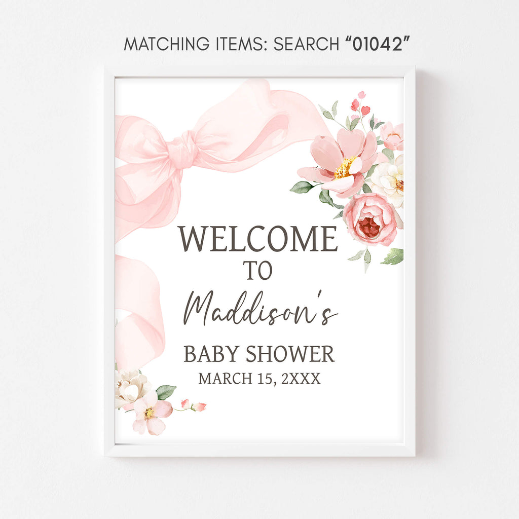 Elevate the charm of your Girl Flowers Baby Shower Party with the Pastel Coquette Ribbon Welcome Sign Printable. With its blooming design, it effortlessly captivates attention and enhances the overall ambiance, playfully guiding your guests to the heart of the Pink Baby in Bloom Baby Shower celebration.