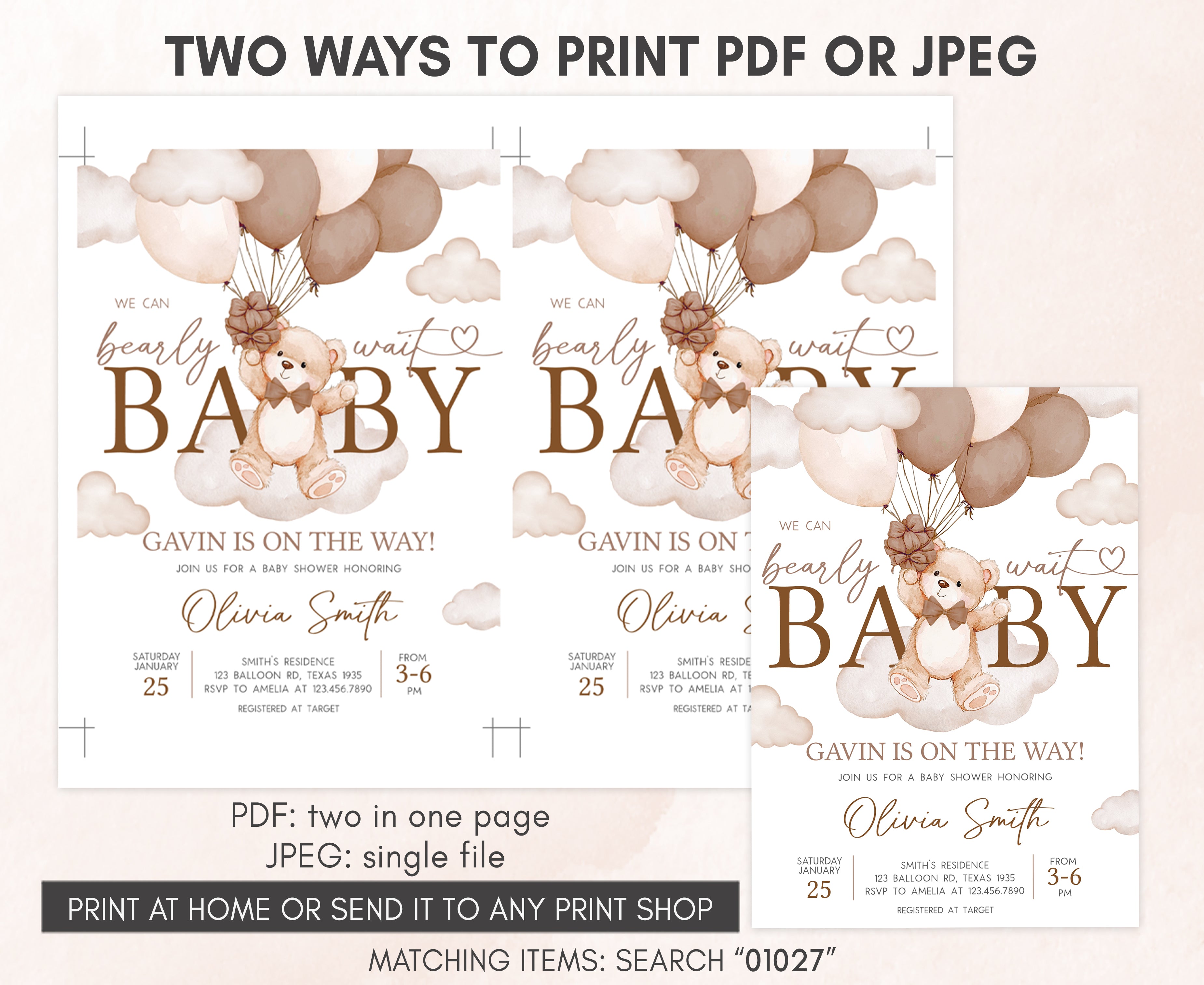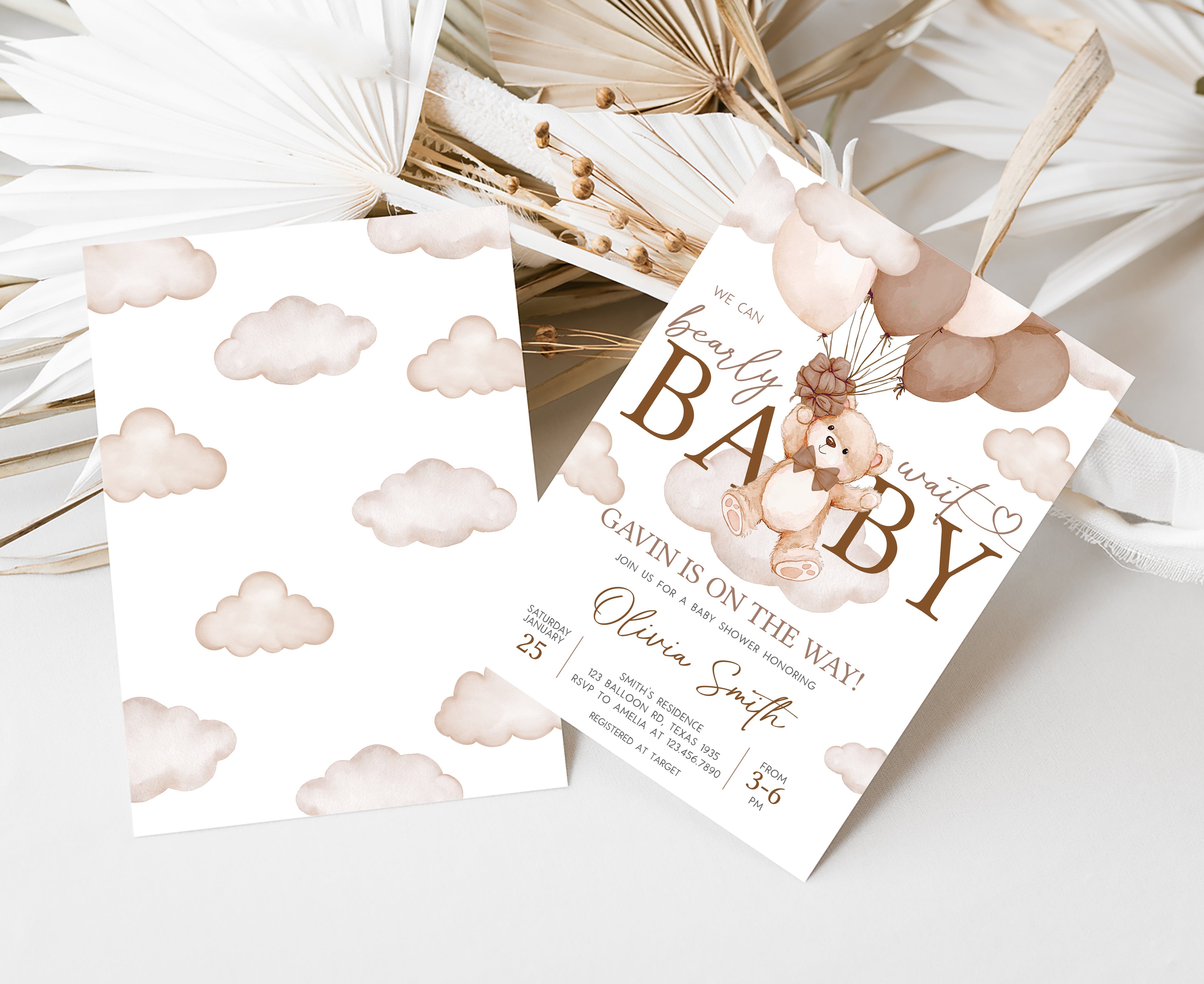 Celebrate with your guests at your Bear Cloud Baby Shower Party using our delightful We Can Bearly Wait Baby Shower Invitation. This Brown Balloon Bear Baby Shower Invite is the ideal choice to tone for a Bear-themed celebration.