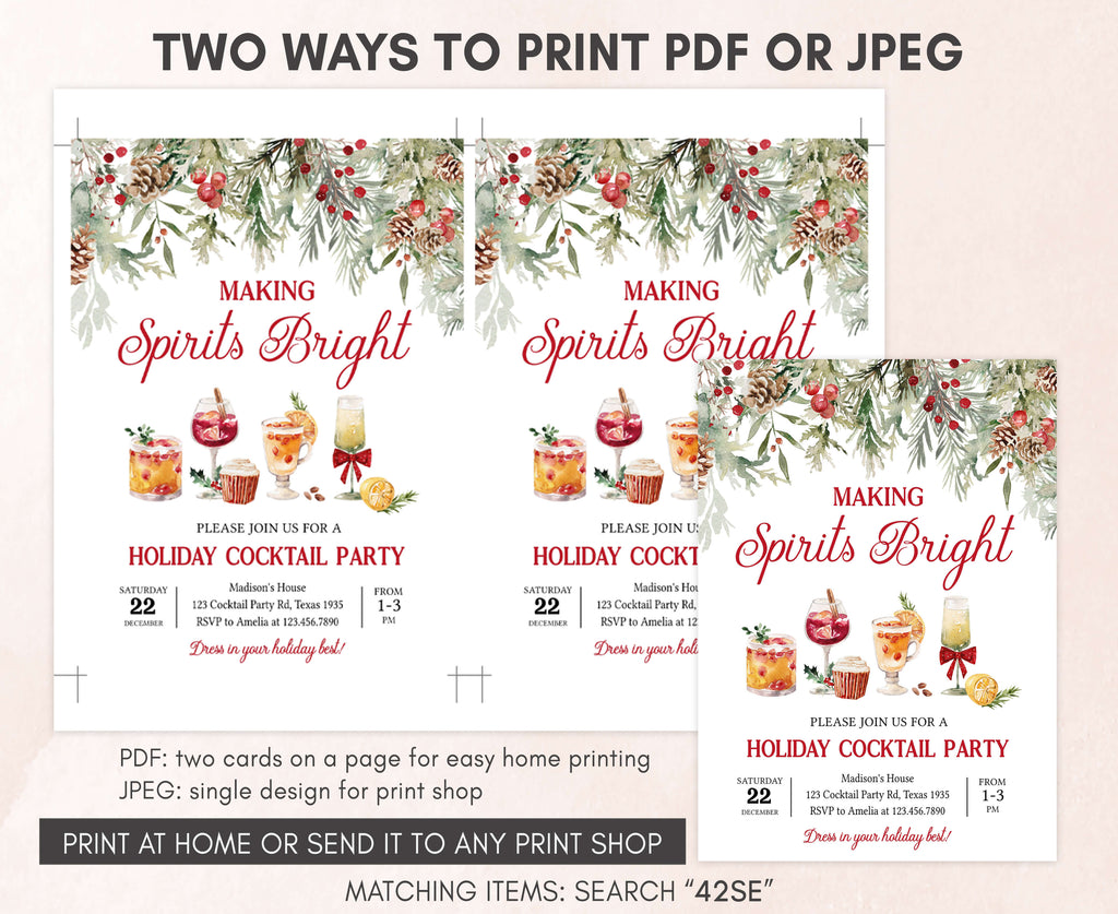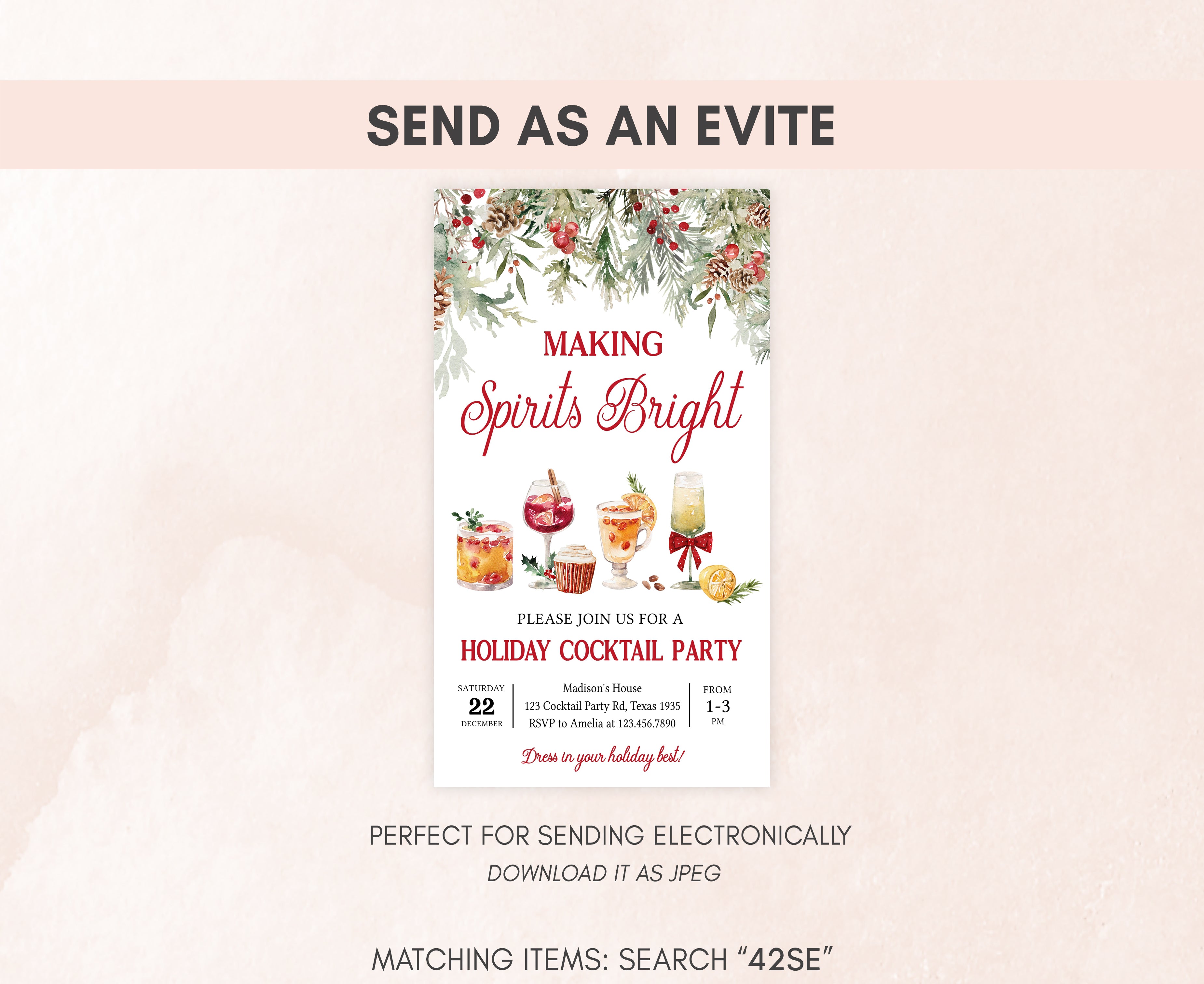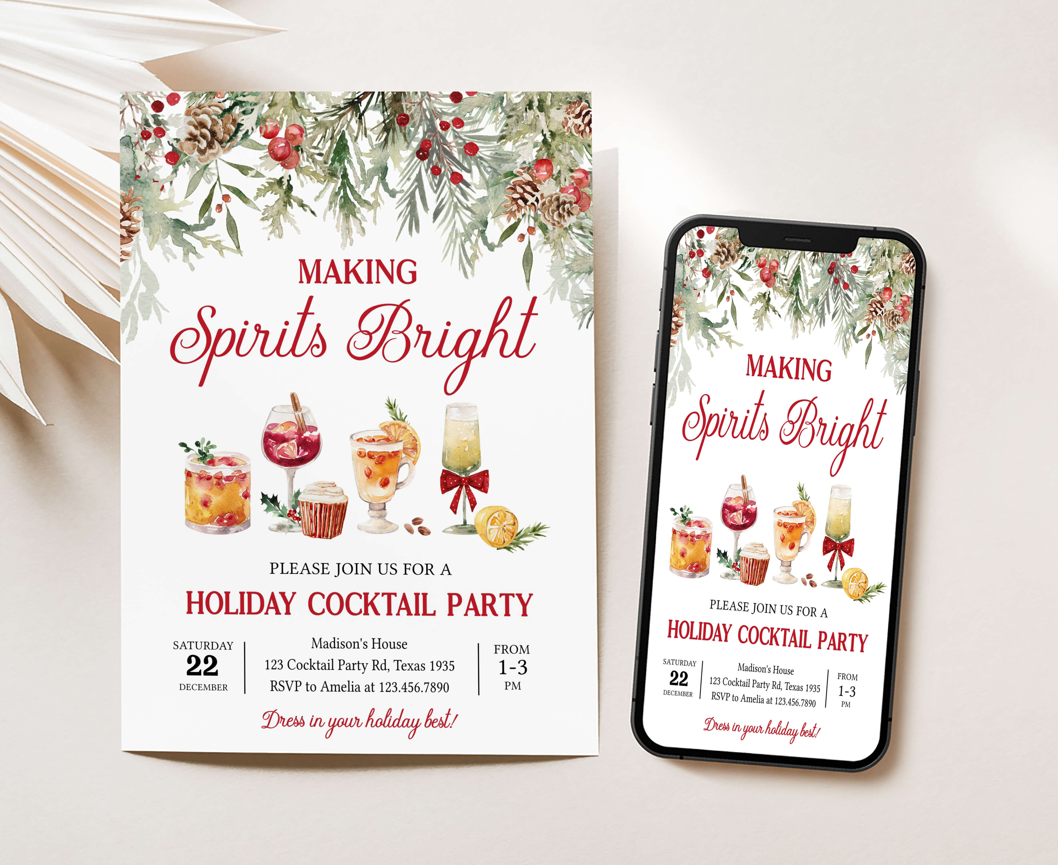 Celebrate with your guests at your Holiday Drink Party using our delightful Yuletide Christmas Gathering Invitation. This Seasonal Cocktail Drinks Invite is the ideal choice to tone for a Christmas-themed celebration.