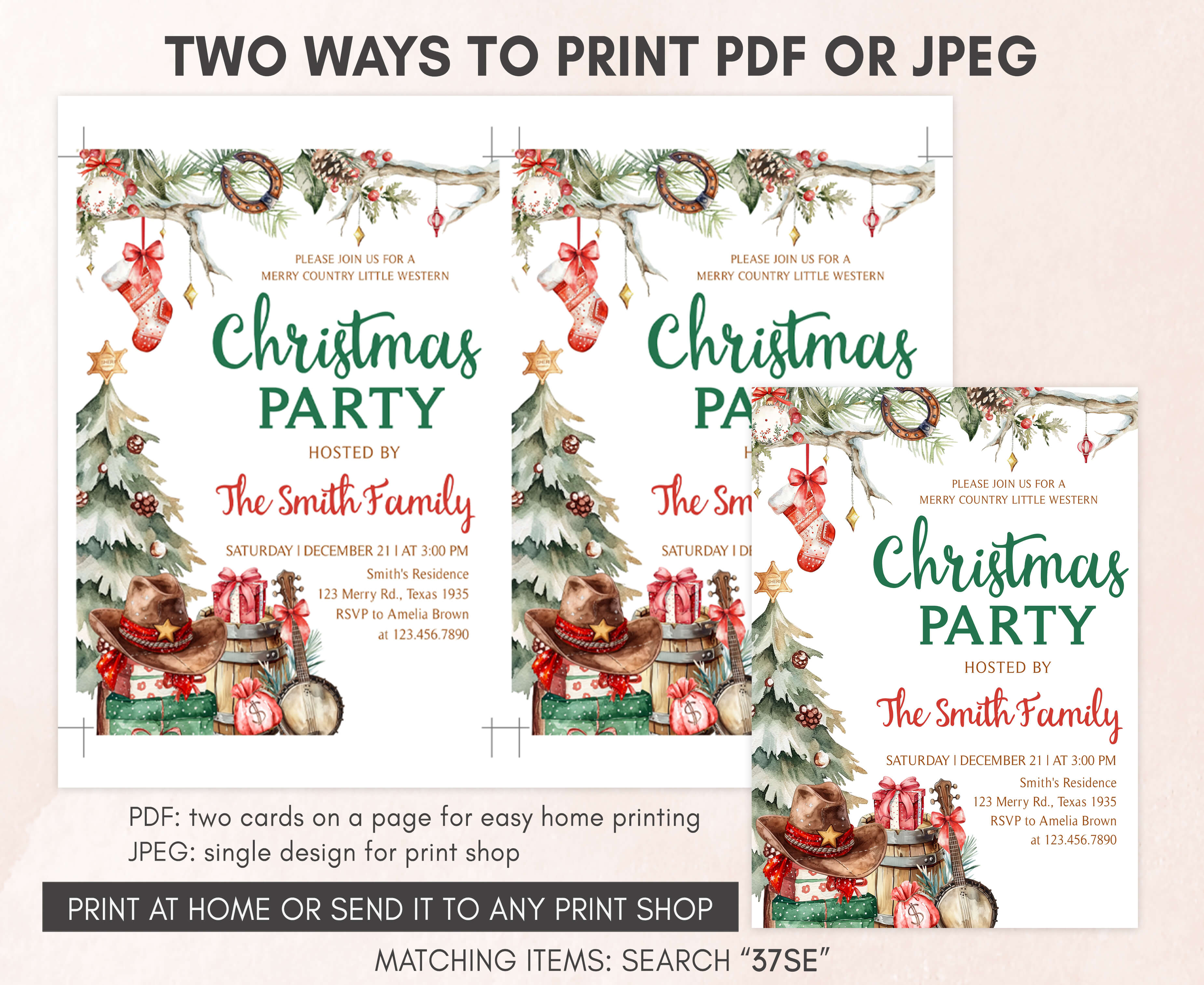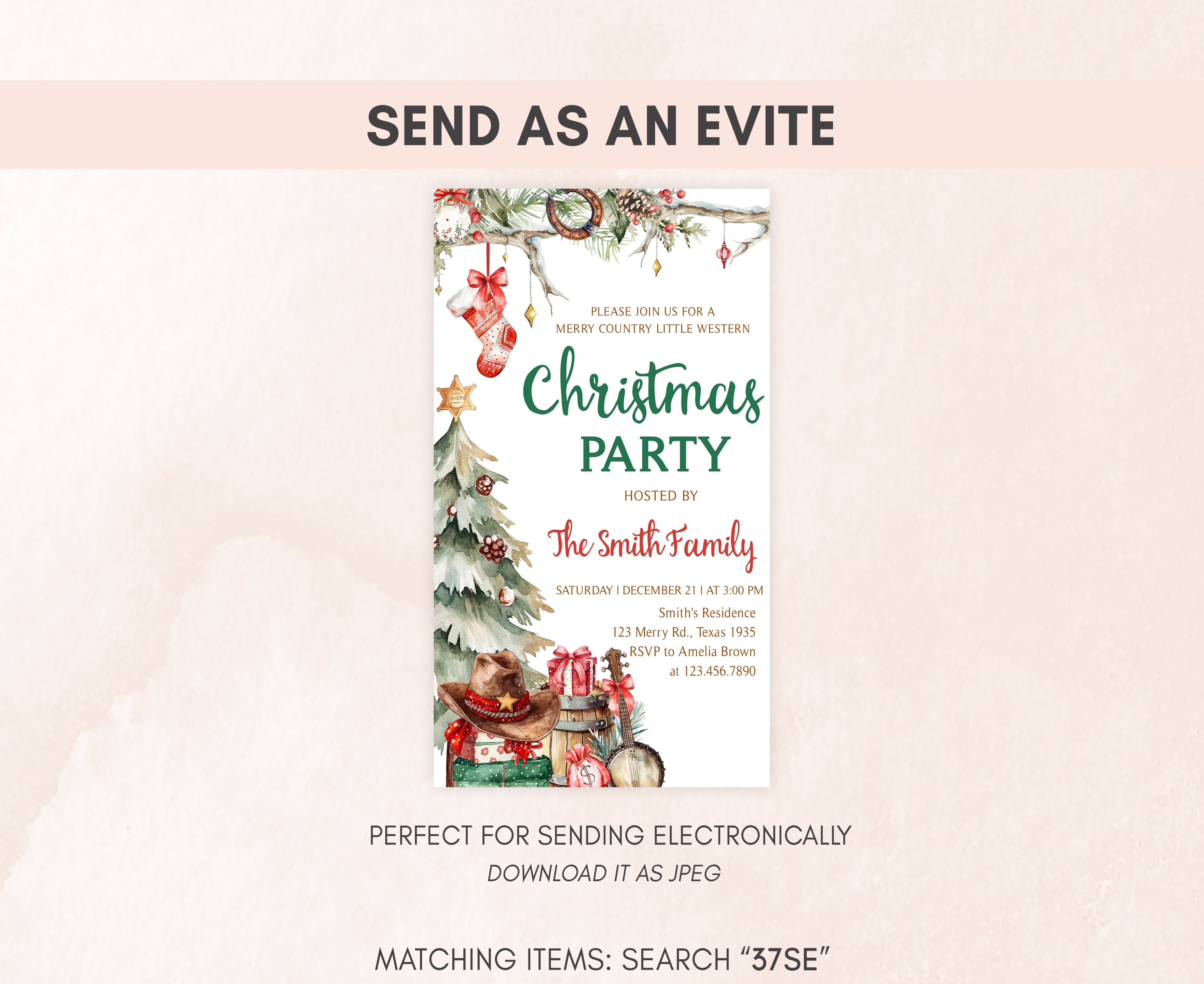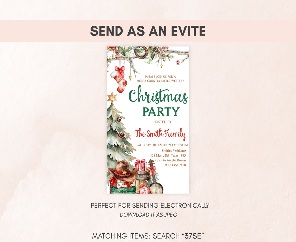 Celebrate with your guests at your Little Western Holiday Party using our delightful Merry Country Christmas Invitation. This Farmhouse Christmas Tree Invite is the ideal choice to tone for a Holiday-themed celebration.