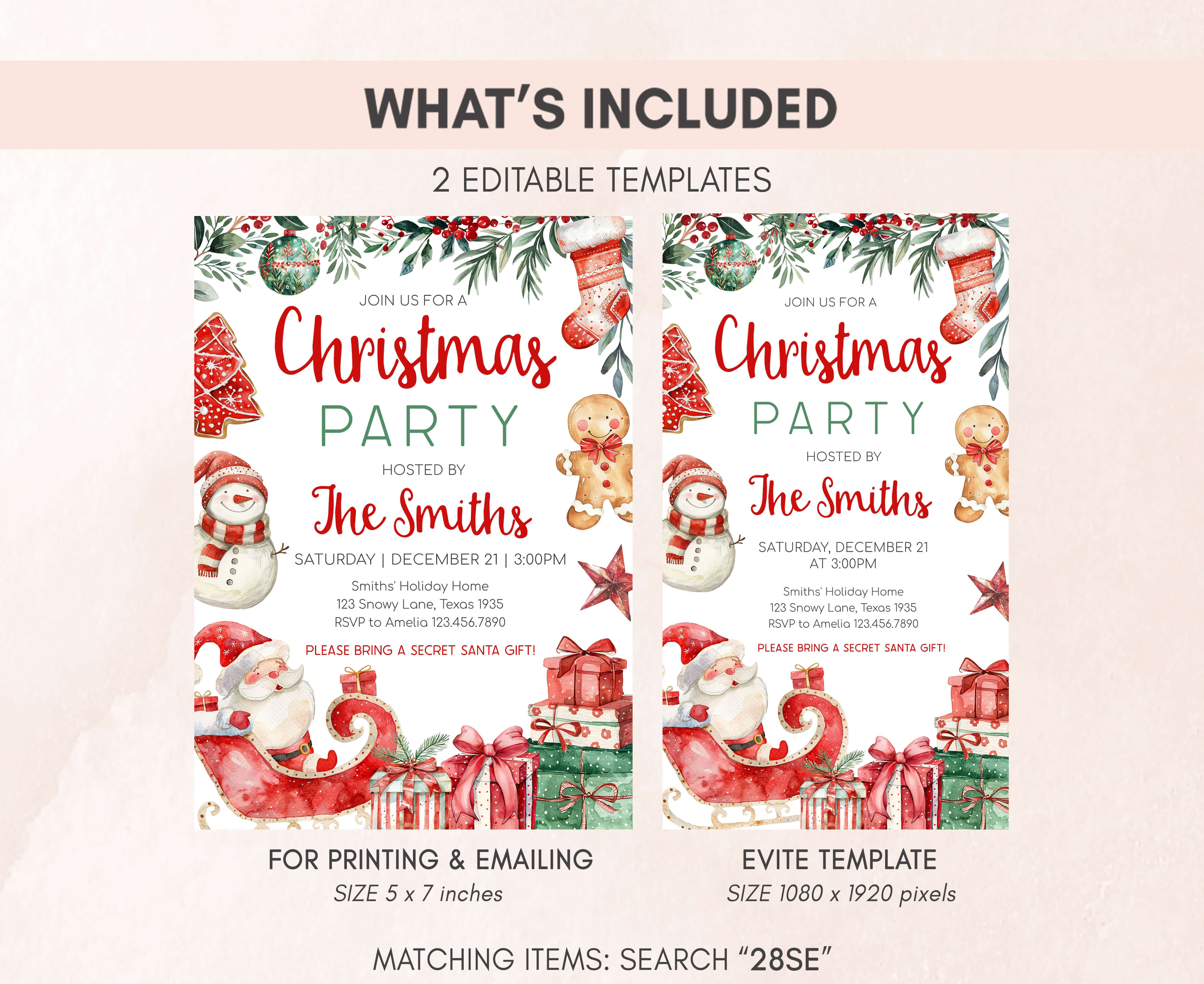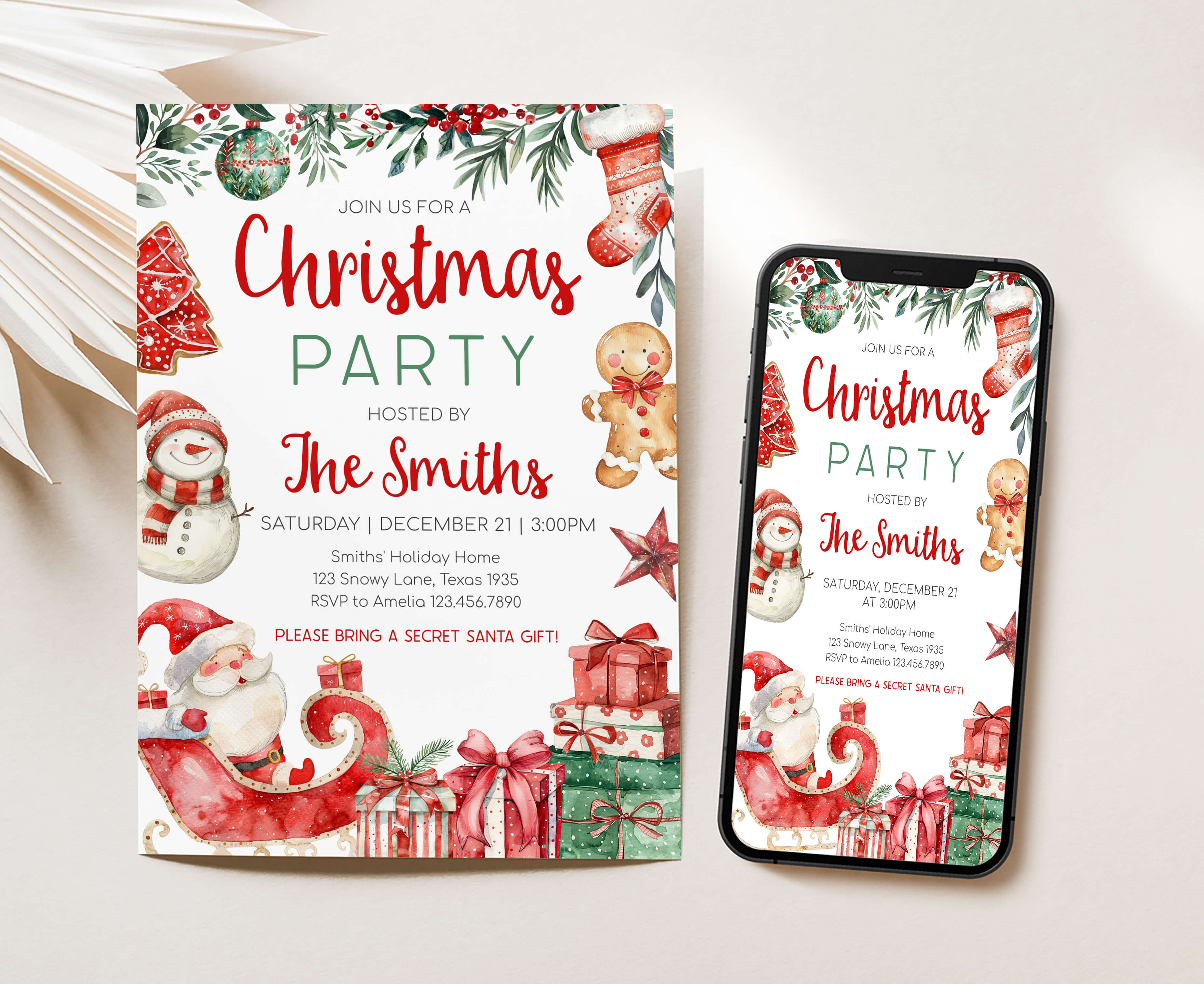 Celebrate with your guests at your Festive Christmas Dinner Party using our delightful Gingerbread Snowman Invitation. This Holiday Secret Santa Invite is the ideal choice to tone for a Christmas-themed celebration.