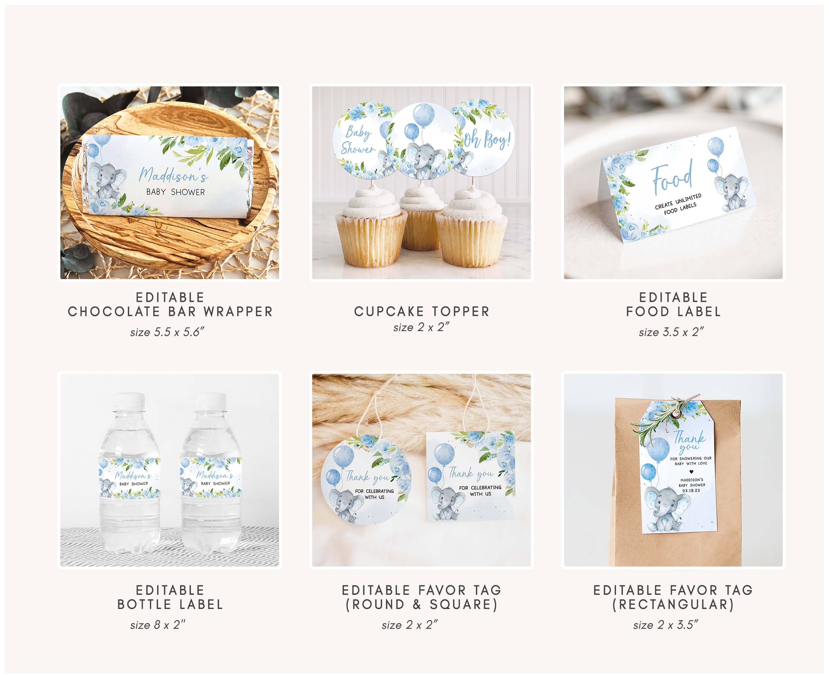 ➡ Visit this link for all the matching items for Boy Elephant Baby Shower theme: