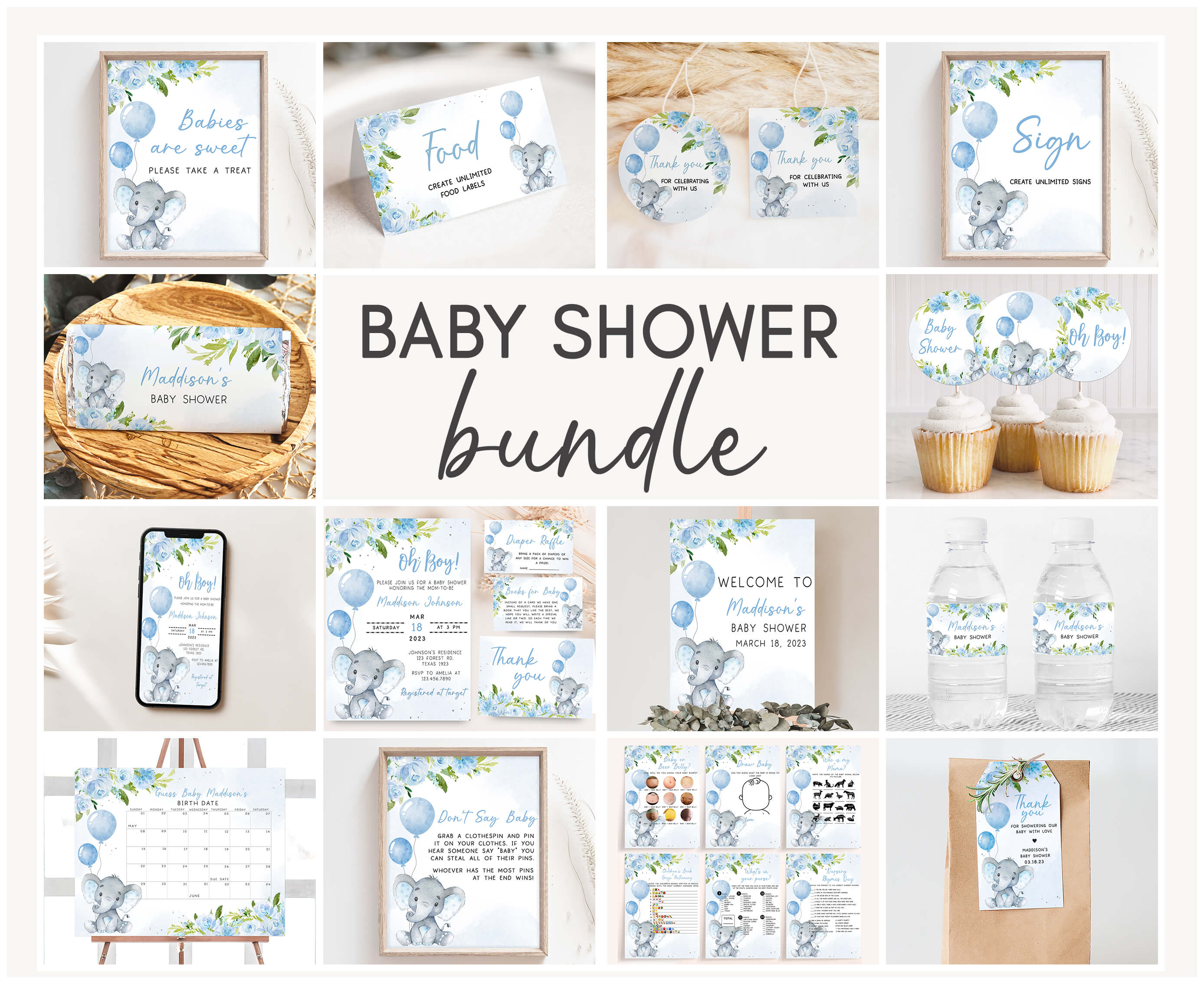 Bring your Blue Balloon Baby Shower Party to life with this all-in-one Floral Elephant Baby Shower Mega Bundle. Designed to impress, each piece works seamlessly to enhance your setup and create a fun, memorable Little Peanut Baby Shower experience from start to finish.