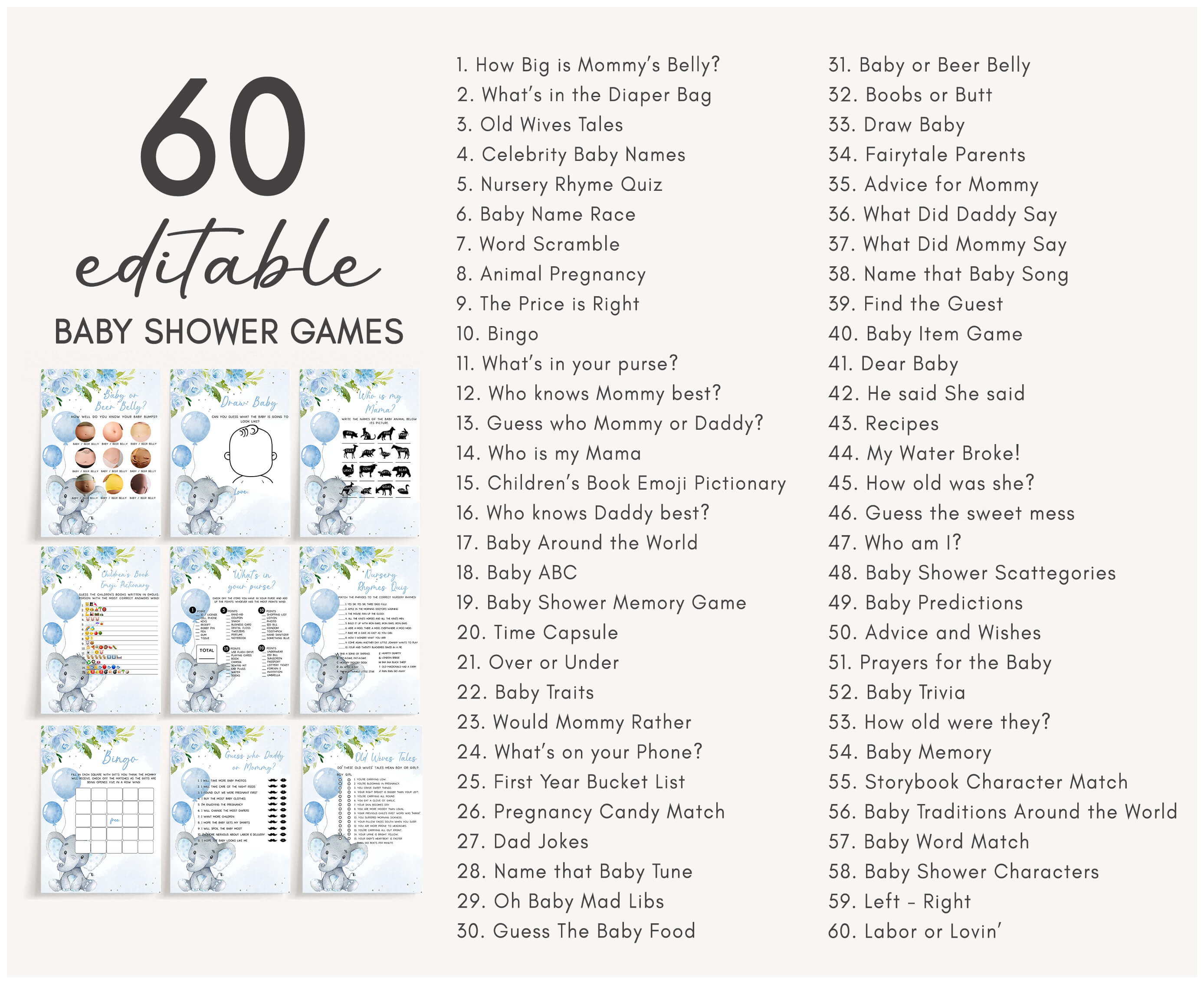 ‣ 60 Editable Games: 5x7” (list of games shown in product photos)