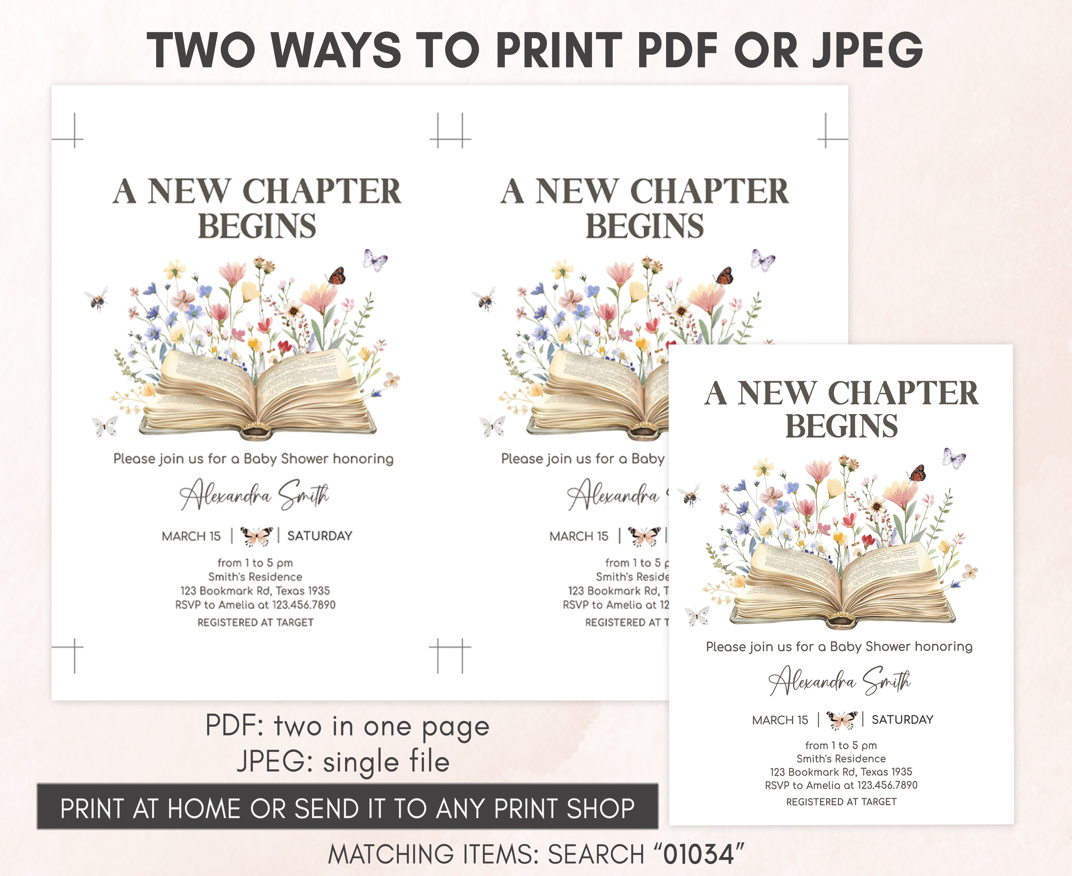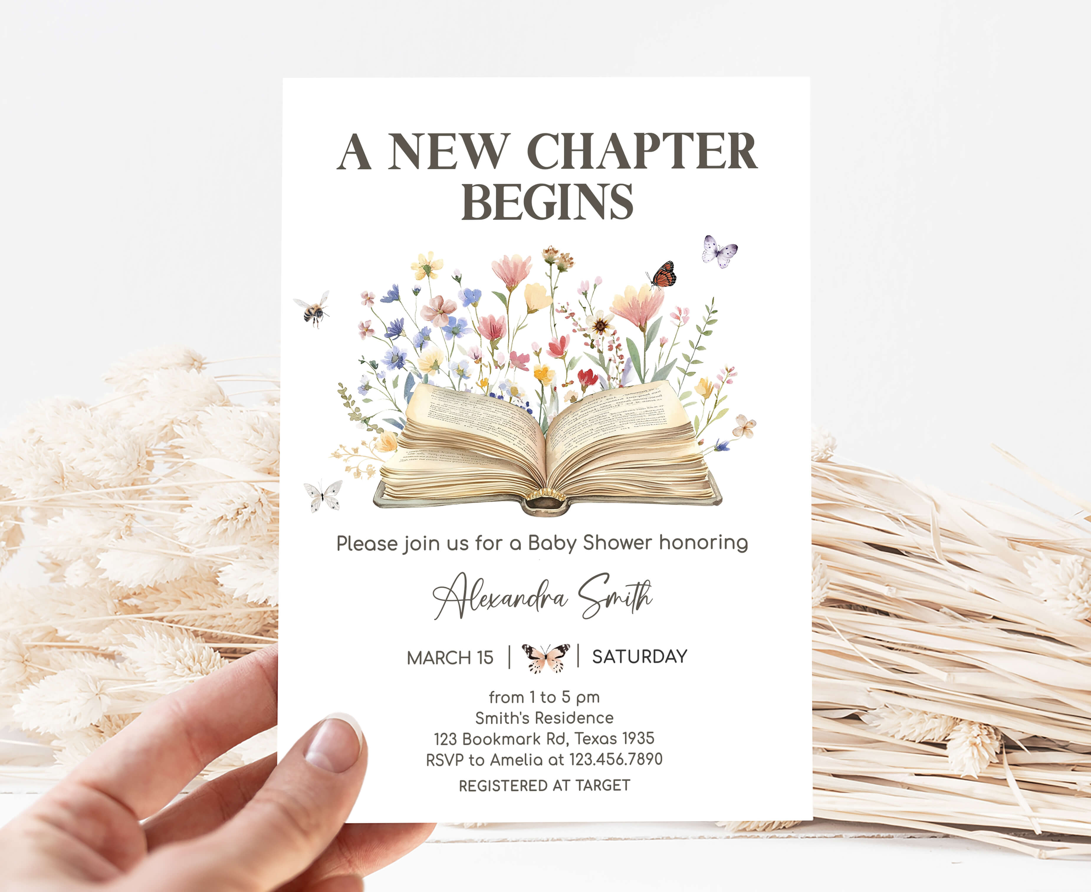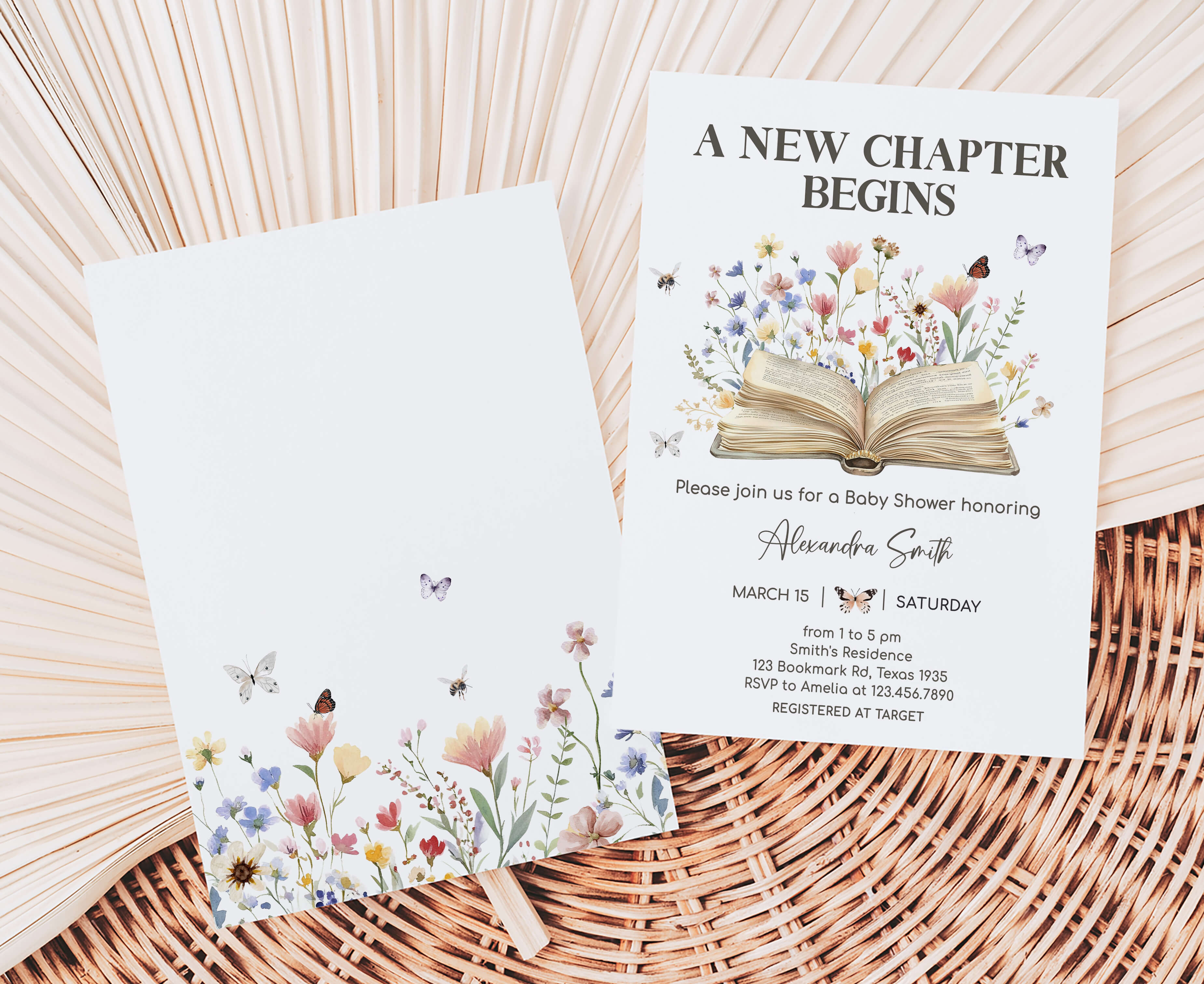 Celebrate with your guests at your Spring Flowers Baby Shower Party using our delightful Floral Storybook Baby Shower Invitation Bundle. This Butterfly Spring Book Baby Shower Invite is the ideal choice to set the tone for a Spring-themed celebration.