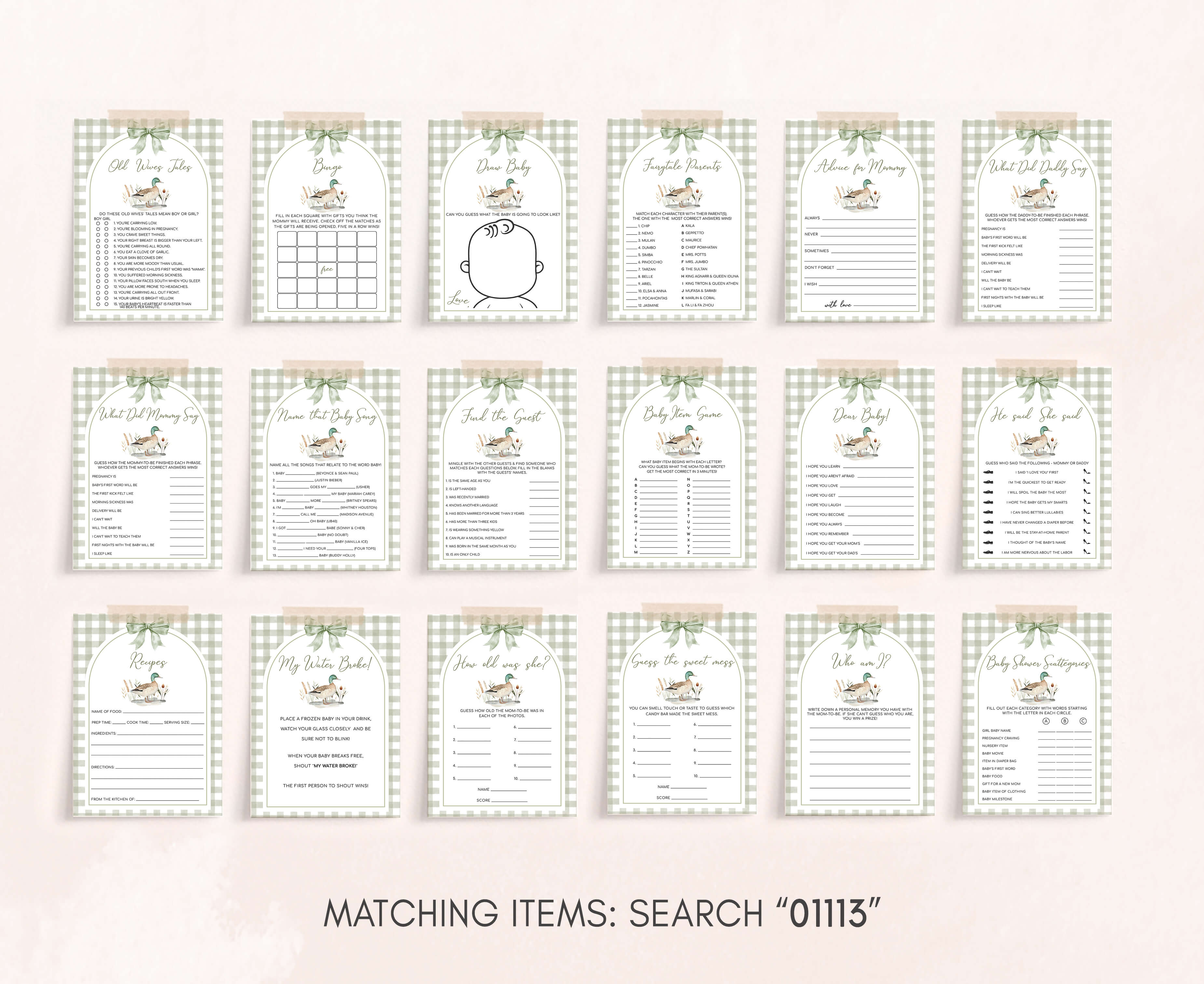 Make your Rustic Fall Baby Shower Party a joyous and laughter-filled occasion with our charming A Baby Boy is on his Way Games Set. Packed with heartwarming activities and entertaining challenges, these Gingham Mallard Duck Baby Shower Game Pack will infuse your celebration with unforgettable moments, crafting cherished memories along the way.