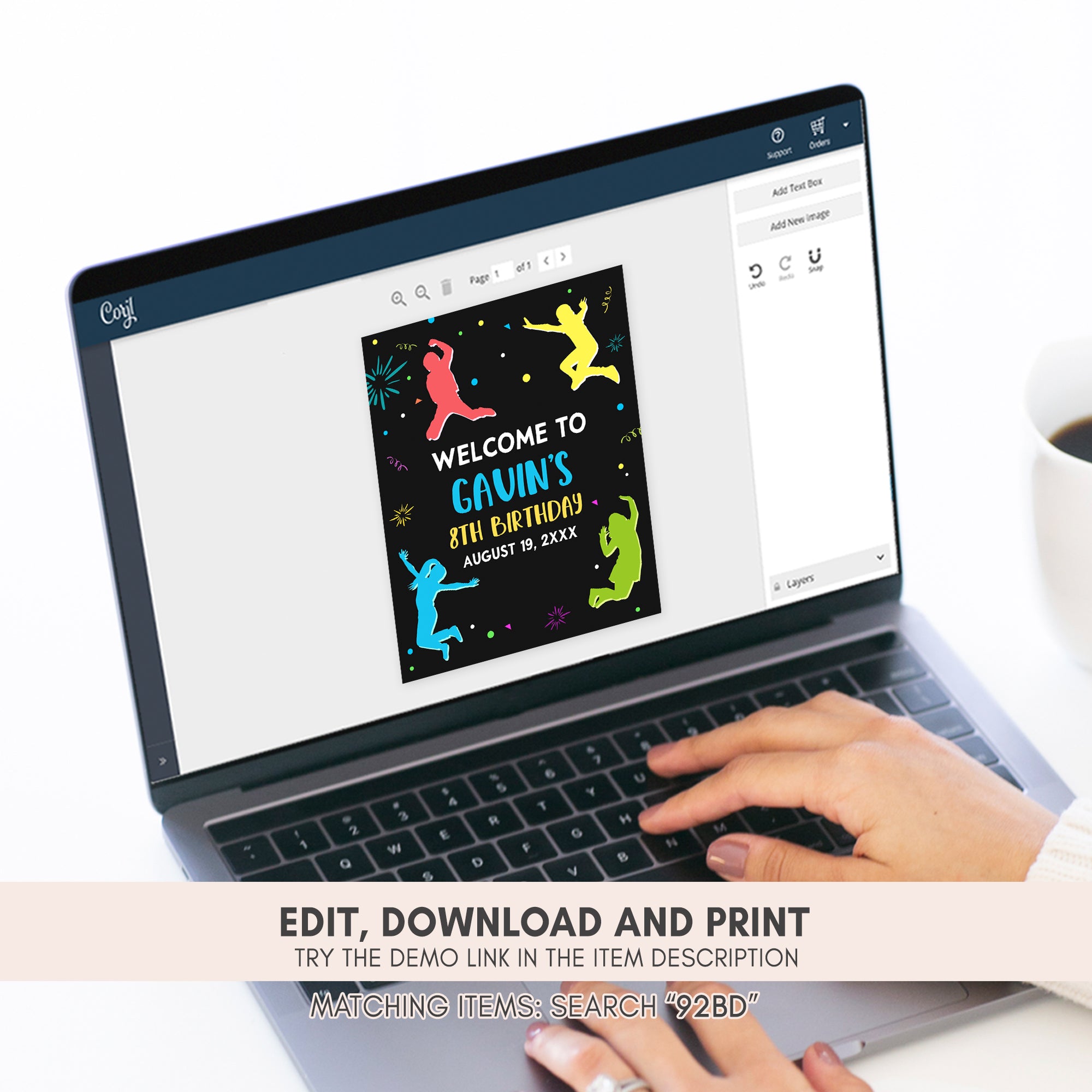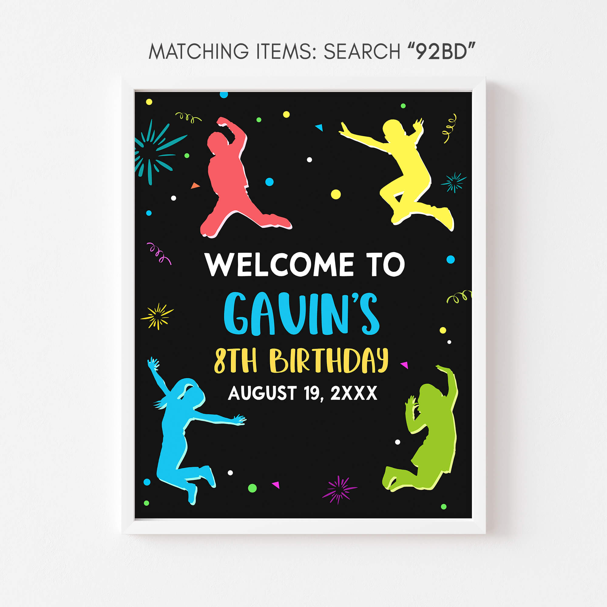 Elevate the charm of your Bounce Play Birthday Party with the Neon Trampoline Birthday Welcome Sign Printable. With its adorable design, it effortlessly captivates attention and enhances the overall ambiance, playfully guiding your guests to the heart of the Kids Jump and Play celebration.