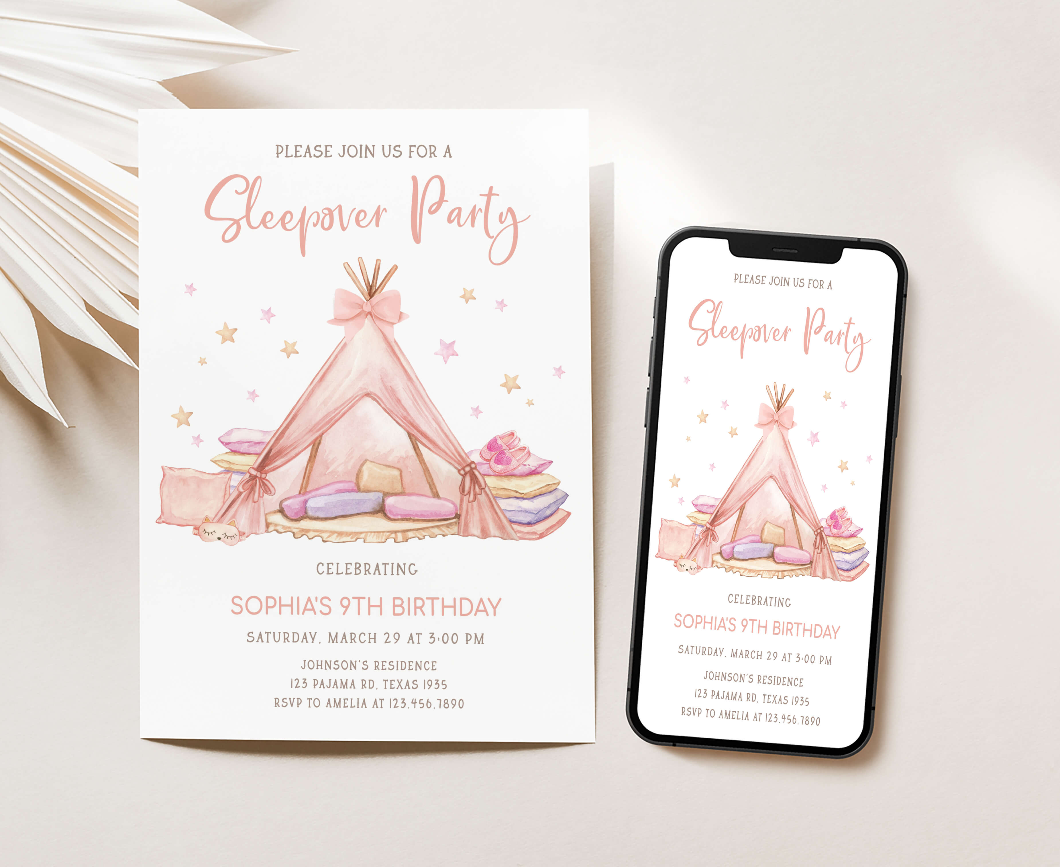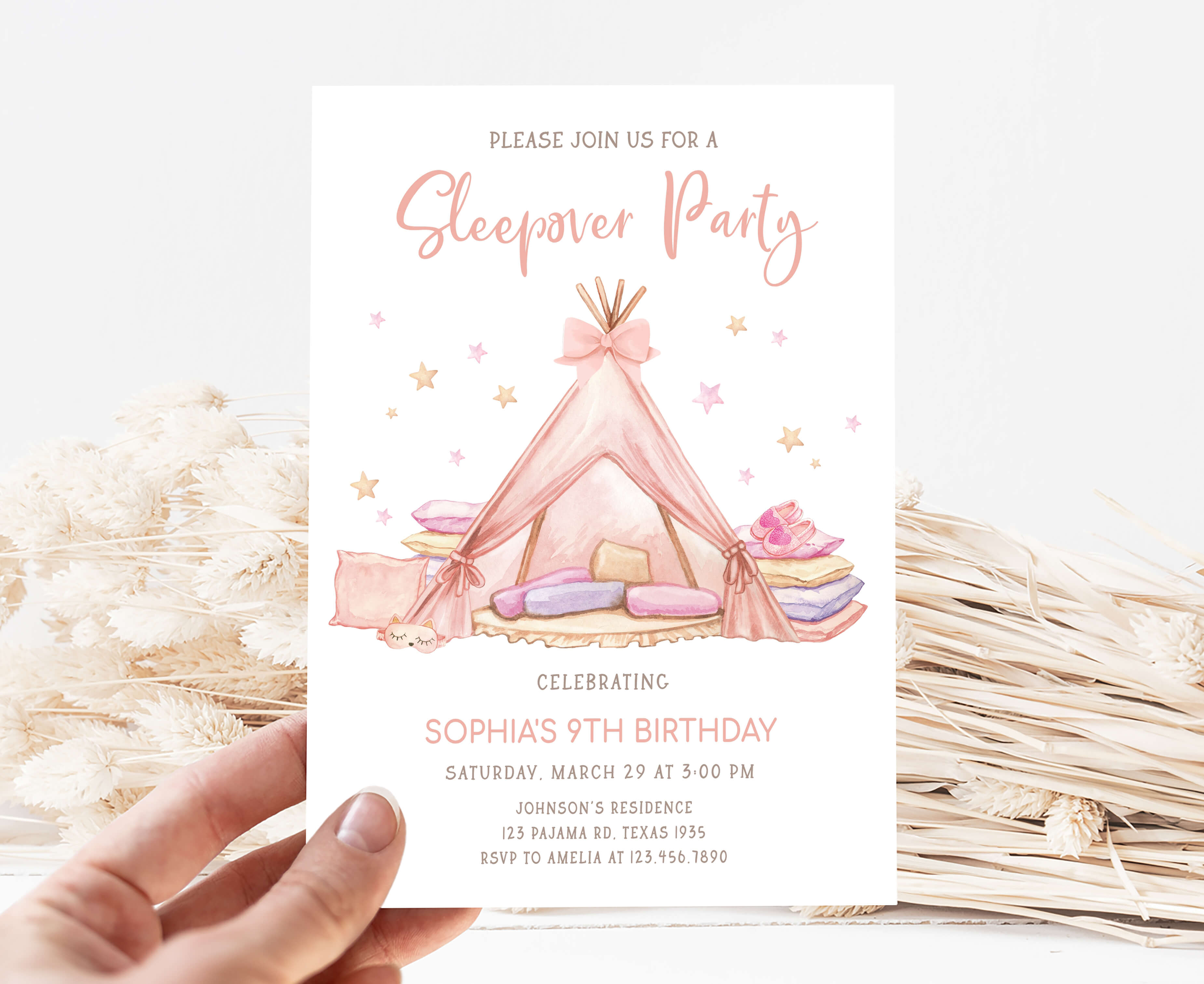 Celebrate with your guests at your Girls Pajama Birthday Party using our delightful Pajama Teepee Birthday Invitation. This Pink Tent Sleepover Birthday Invite is the ideal choice to tone for a Pajama-themed celebration.