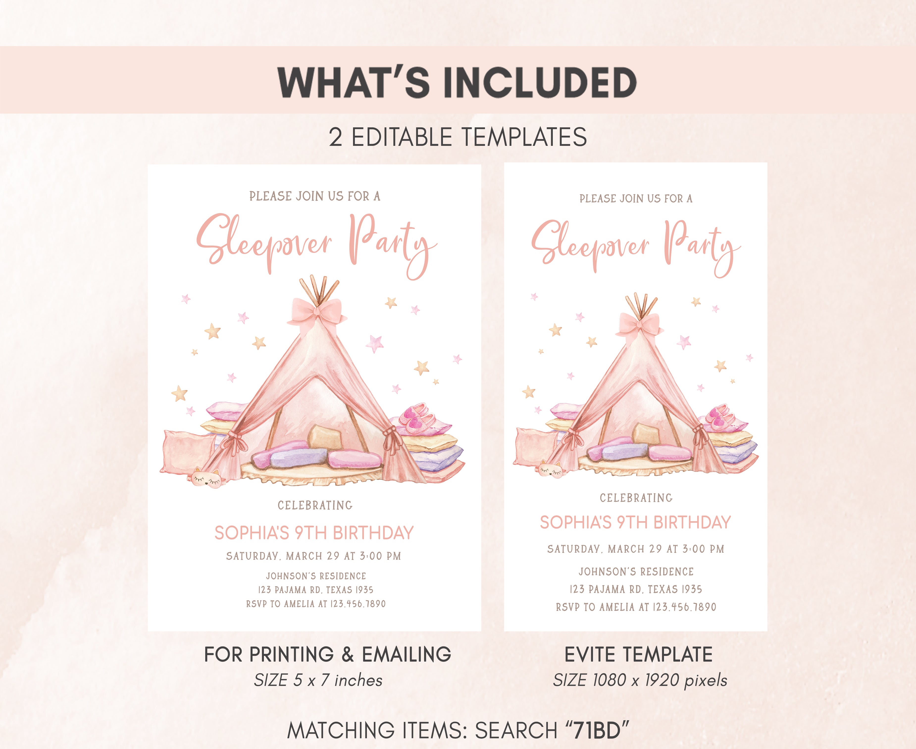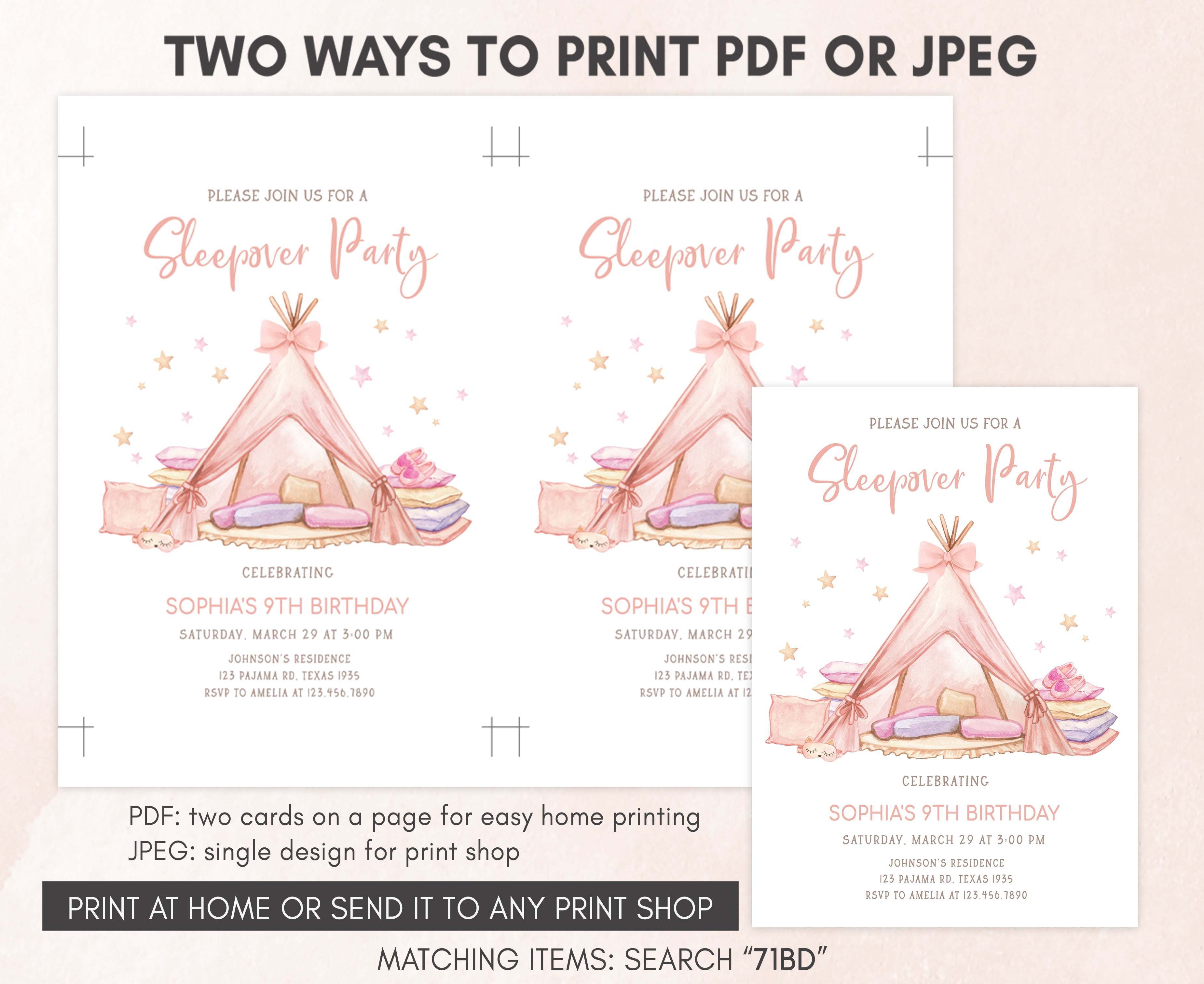 ➡ Visit this link for all the matching items for Slumber Party Girls Birthday Party theme: