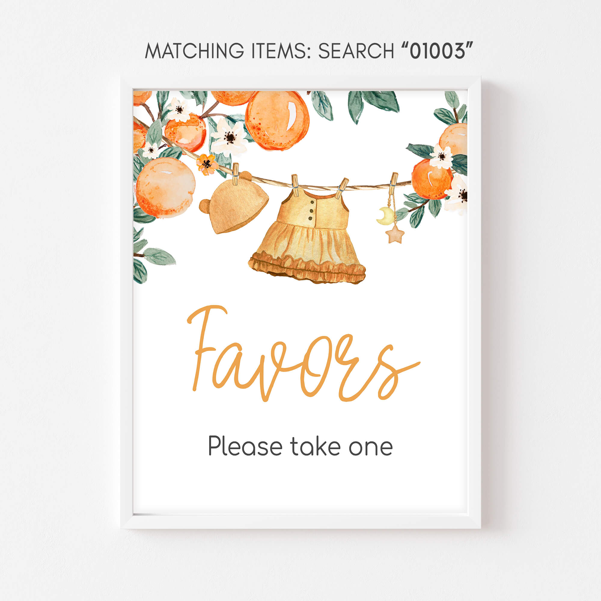 Craft an ideal atmosphere for your Spring Summer Baby Shower Party using our enchanting Orange Little Cutie Baby Shower Thank you Sign Printable. These prints not only add a touch of charm but also serve as helpful guides, directing guests to various Cute Baby Clothesline party sections with their delightful designs.