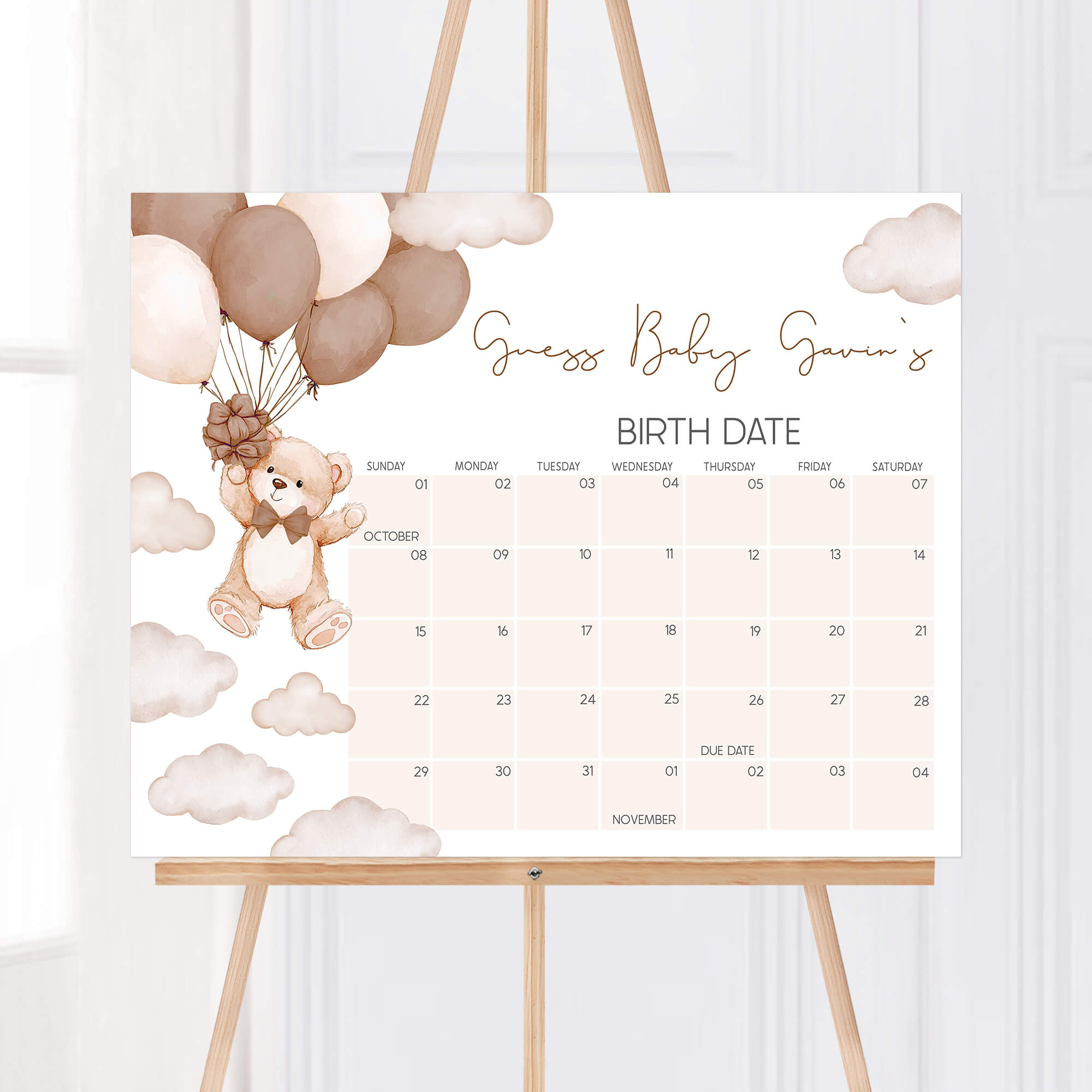 Partake in the excitement of your Balloon Bear Baby Shower Party with our Gender Neutral Teddy Bear Due Date Game! Embrace the adorable spirit of the We Can Bearly Wait Baby Shower party as guests make their predictions for the due date, coming together to share in the anticipation of the upcoming arrival. Complete the joy and fun with this Bear Baby Shower Birthday Predictions.