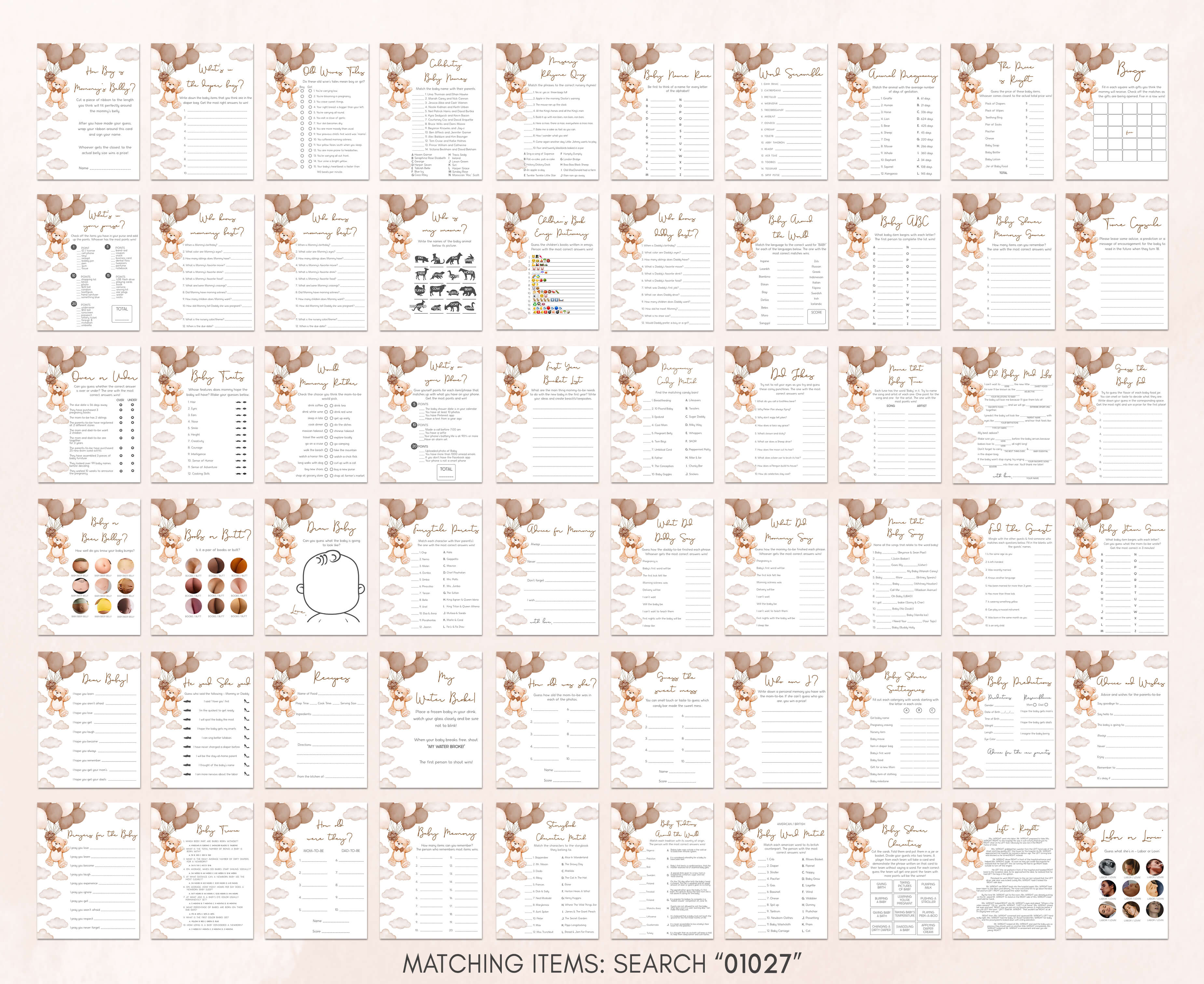Discover the ultimate collection of baby shower games in a single package, each one fully editable for a personalized touch. Enjoy the top 60 Editable Baby Shower Game Cards, sized at 5" x 7", ensuring endless fun and entertainment for your celebration.