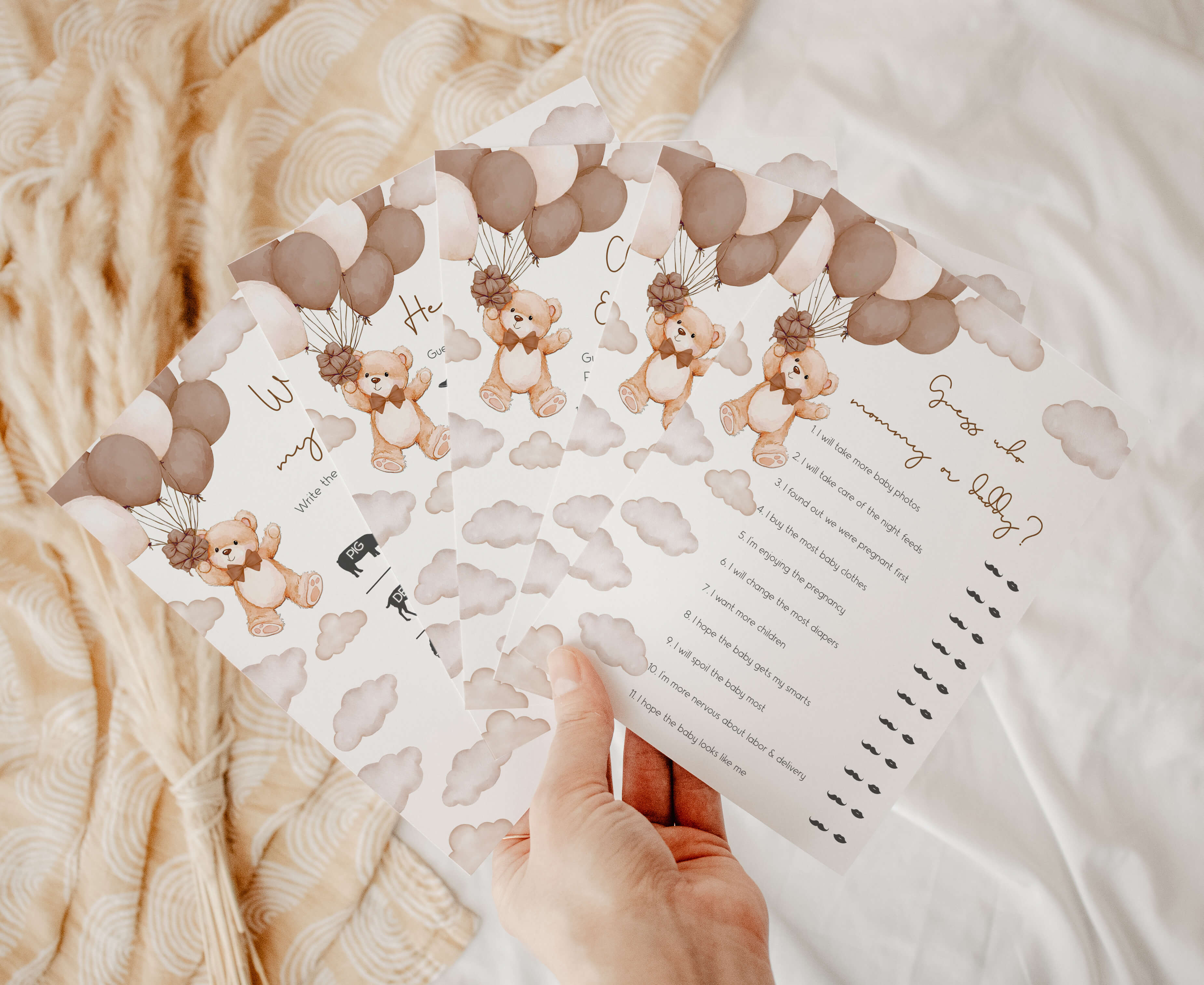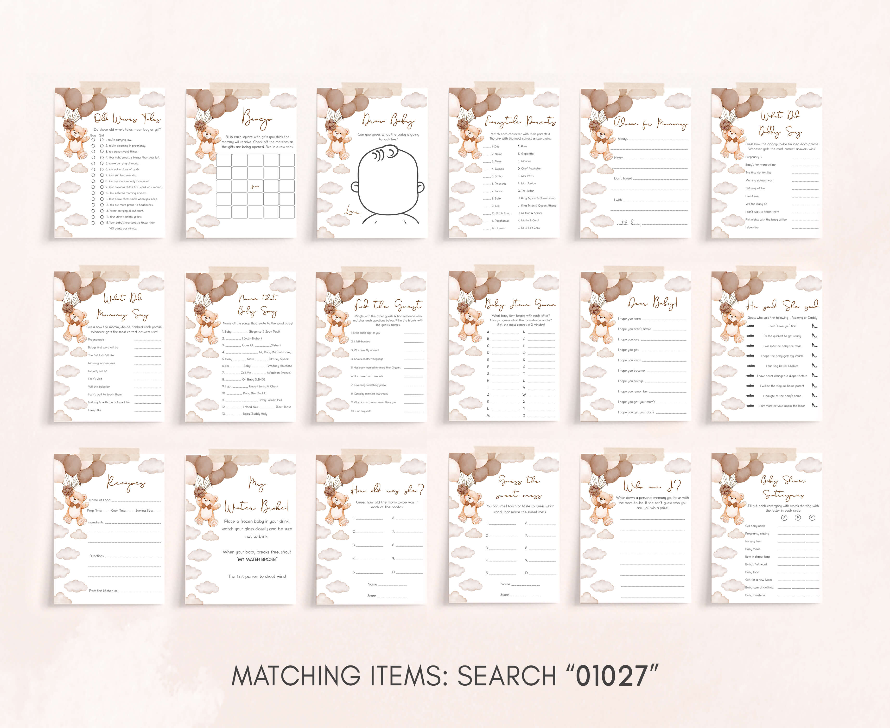 Make your Balloon Bear Baby Shower Party a joyous and laughter-filled occasion with our charming Gender Neutral Teddy Bear Games Set. Packed with heartwarming activities and entertaining challenges, these We Can Bearly Wait Baby Shower Game Pack will infuse your celebration with unforgettable moments, crafting cherished memories along the way.