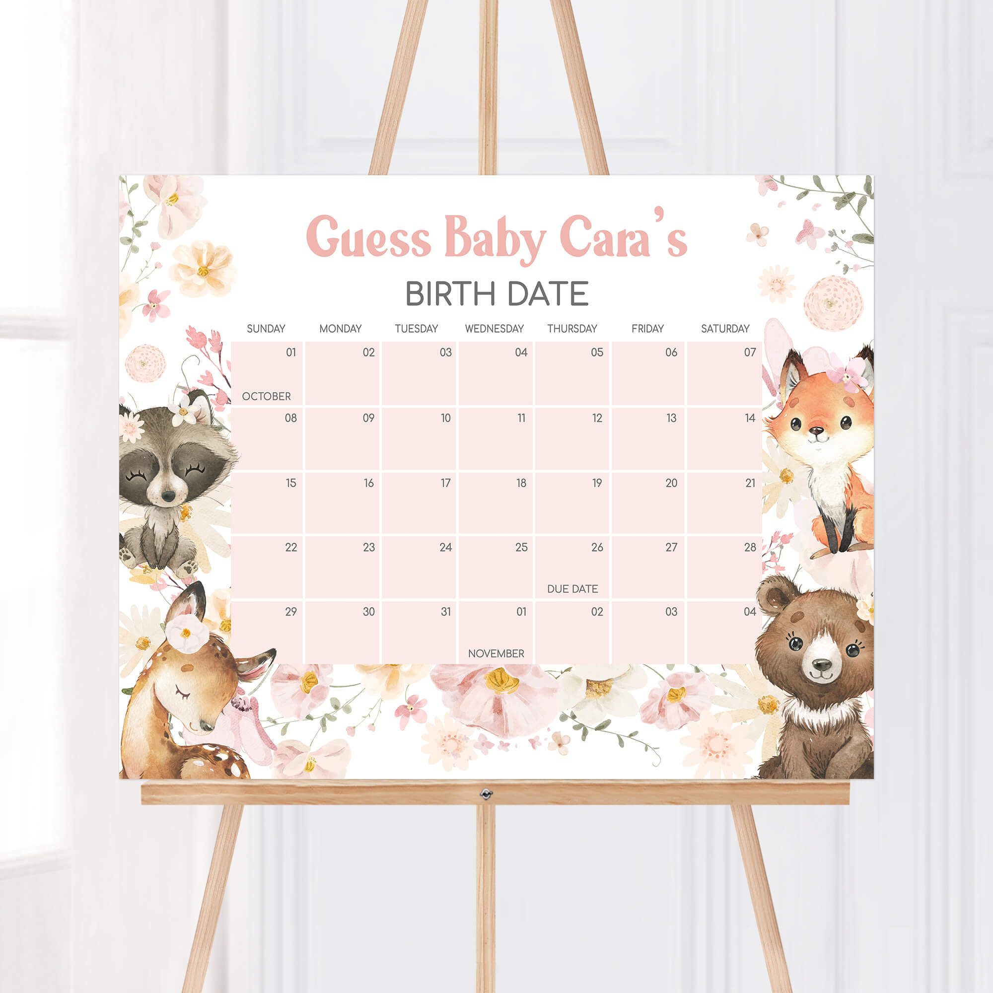 Partake in the excitement of your Spring Forest Baby Shower Party with our Floral Woodland Creatures Due Date Game! Embrace the adorable spirit of the Girl Forest Animals Baby Shower party as guests make their predictions for the due date, coming together to share in the anticipation of the upcoming arrival. Complete the joy and fun with this Spring Baby Shower Birthday Predictions.