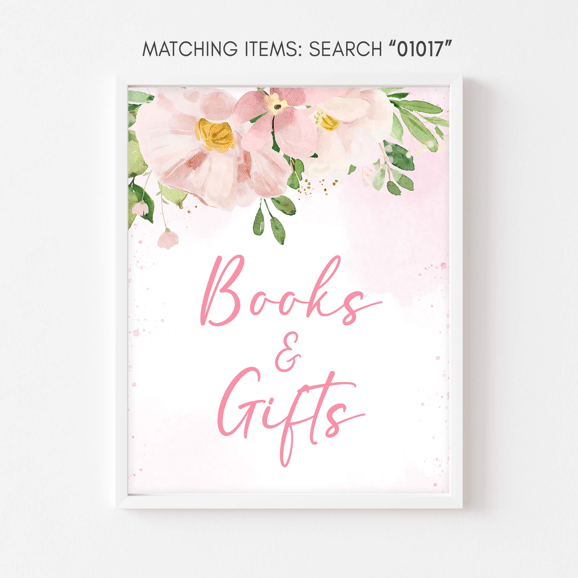 Craft an ideal atmosphere for your Pastel Spring Baby Shower Party using our enchanting Pink Floral Baby Shower Books and Gifts Sign Printable. These prints not only add a touch of charm but also serve as helpful guides, directing guests to various Watercolor Flowers party sections with their delightful designs.