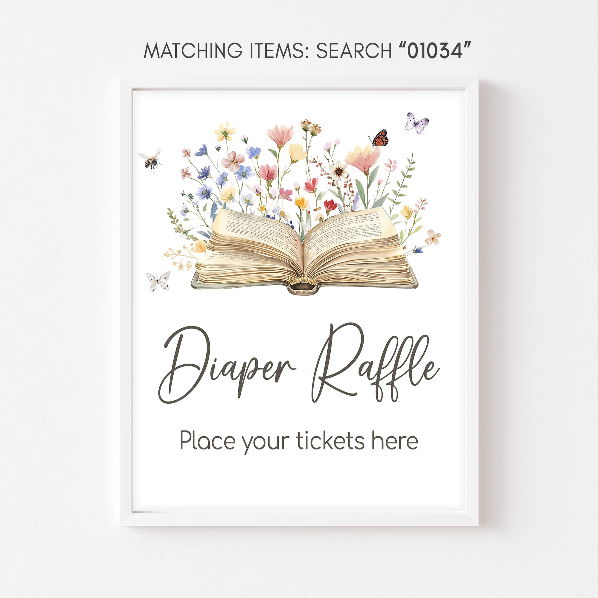 Craft an ideal atmosphere for your Spring Flowers Baby Shower Party using our enchanting Floral Storybook Baby Shower Diaper Game Sign Printable. These prints not only add a touch of charm but also serve as helpful guides, directing guests to various Butterfly Spring Book party sections with their delightful designs.