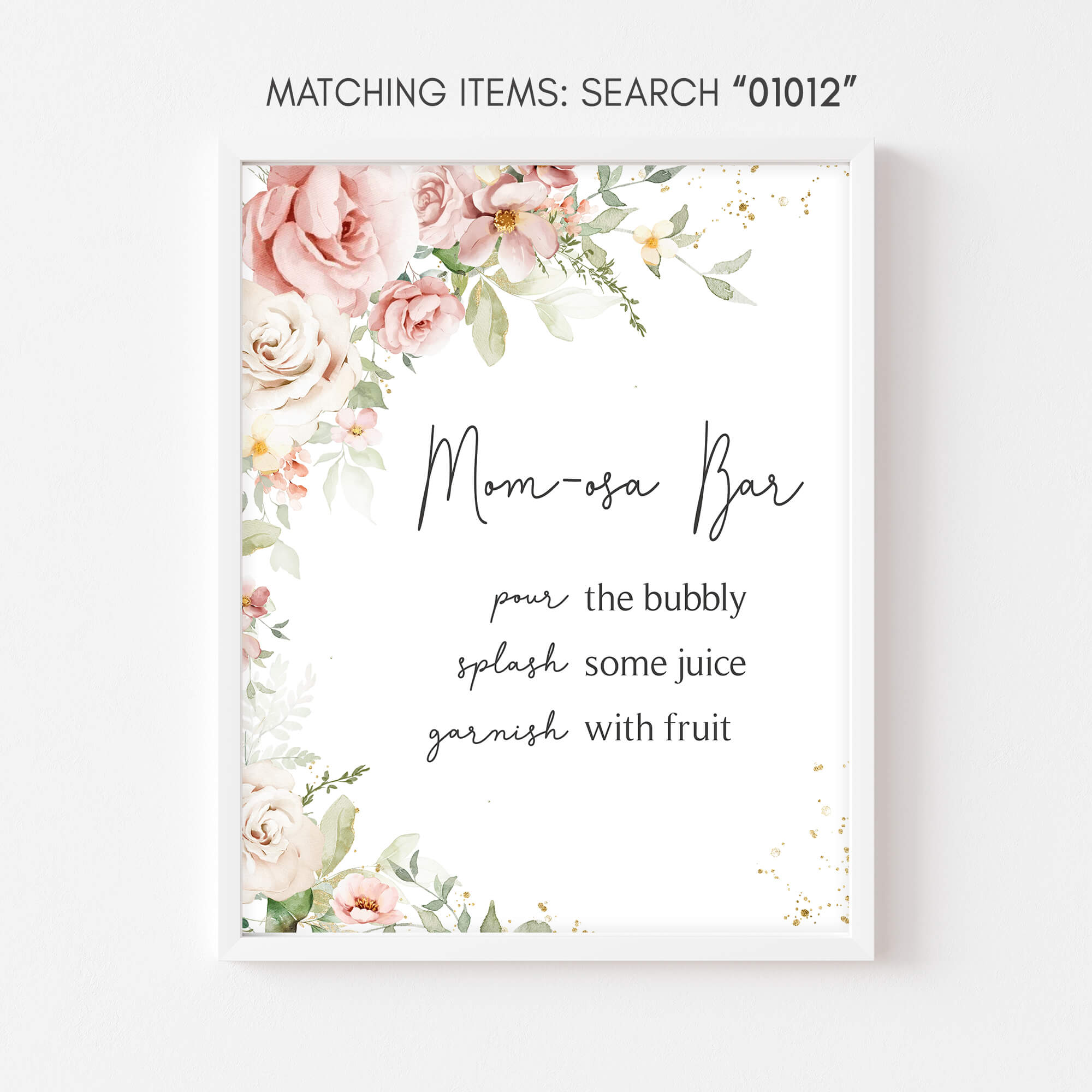Craft an ideal atmosphere for your Spring Flower Baby Shower Party using our enchanting Baby Girl is on Her Way Baby Shower Mimosa Sign Printable. These prints not only add a touch of charm but also serve as helpful guides, directing guests to various Blush Pink Floral Spring party sections with their delightful designs.