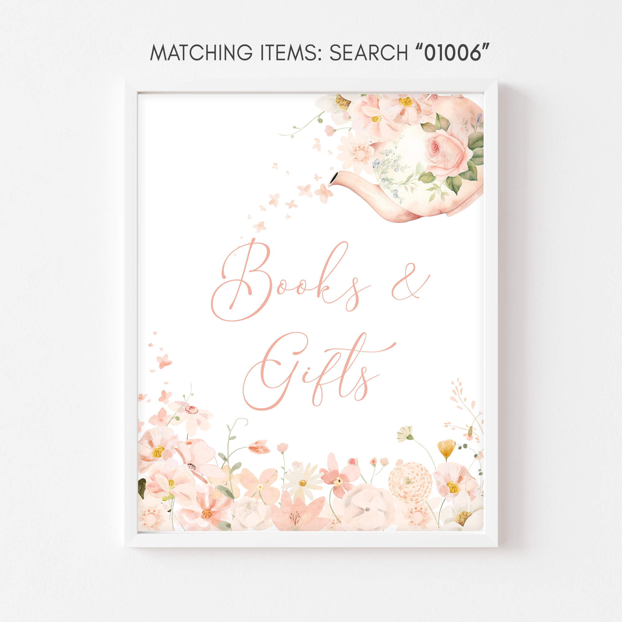 Craft an ideal atmosphere for your Floral Spring Baby Shower Party using our enchanting Garden Tea Party Baby Shower Books and Gifts Sign Printable. These prints not only add a touch of charm but also serve as helpful guides, directing guests to various Floral Tea Pot party sections with their delightful designs.