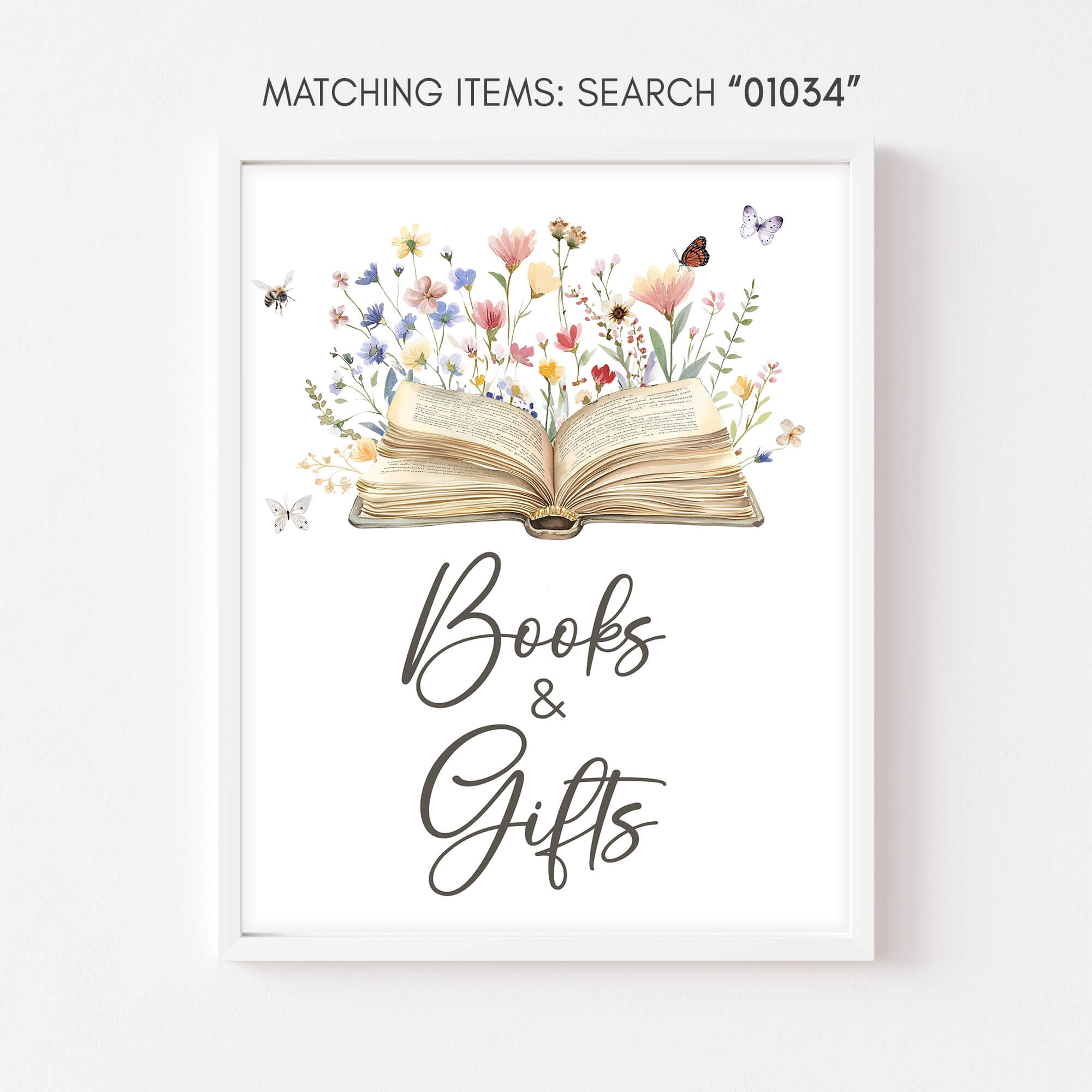 Craft an ideal atmosphere for your Spring Flowers Baby Shower Party using our enchanting Floral Storybook Baby Shower Books and Gifts Sign Printable. These prints not only add a touch of charm but also serve as helpful guides, directing guests to various Butterfly Spring Book party sections with their delightful designs.