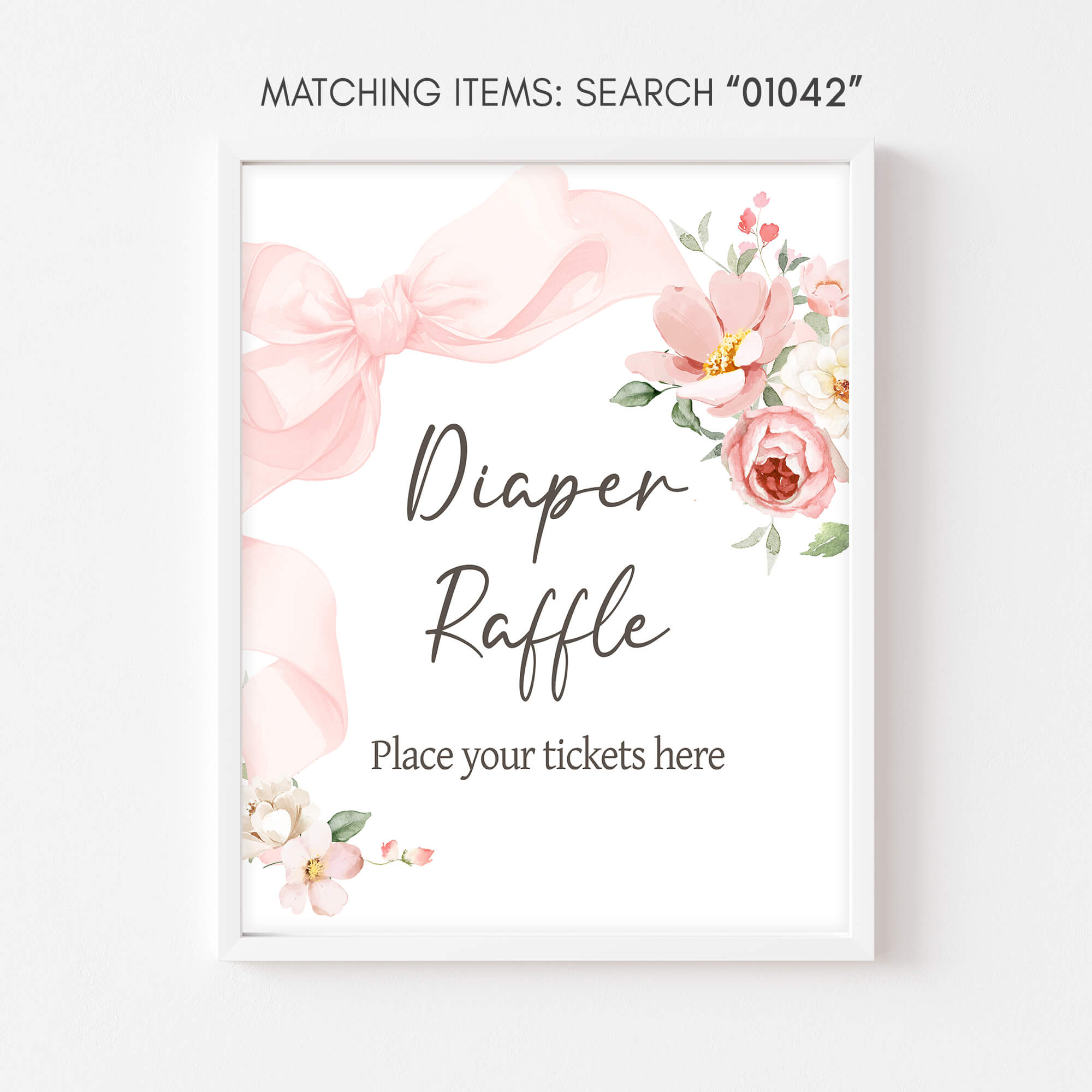 Craft an ideal atmosphere for your Girl Flowers Baby Shower Party using our enchanting Pastel Coquette Ribbon Baby Shower Diaper Game Sign Printable. These prints not only add a touch of charm but also serve as helpful guides, directing guests to various Pink Baby in Bloom party sections with their delightful designs.