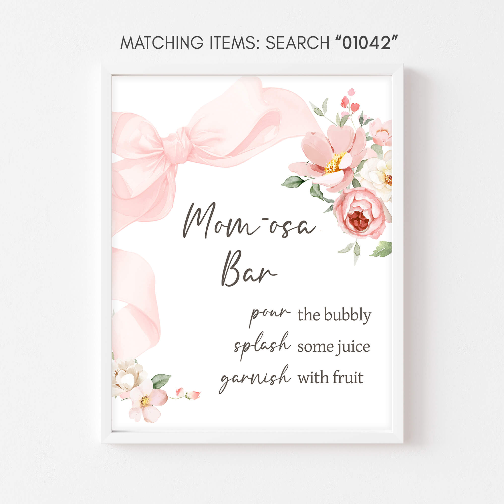 Craft an ideal atmosphere for your Girl Flowers Baby Shower Party using our enchanting Pastel Coquette Ribbon Baby Shower Mimosa Sign Printable. These prints not only add a touch of charm but also serve as helpful guides, directing guests to various Pink Baby in Bloom party sections with their delightful designs.