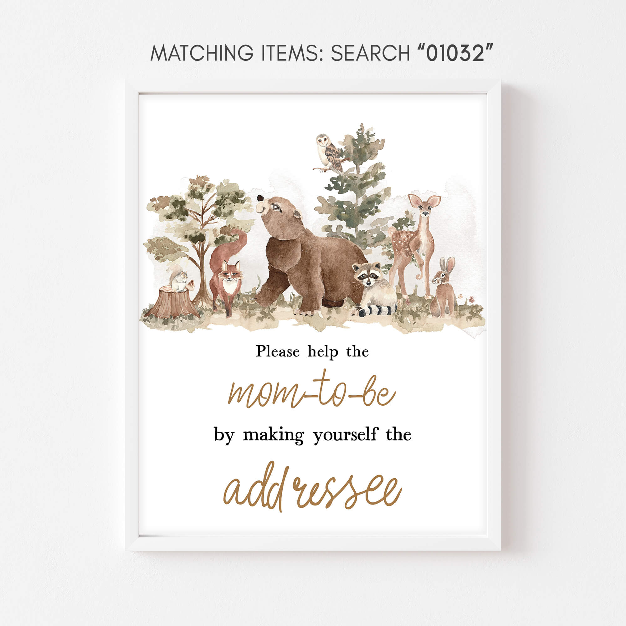 Craft an ideal atmosphere for your Rustic Nature Baby Shower Party using our enchanting Forest Animals Baby Shower Addressee Sign Printable. These prints not only add a touch of charm but also serve as helpful guides, directing guests to various Gender Neutral Woodland party sections with their delightful designs.