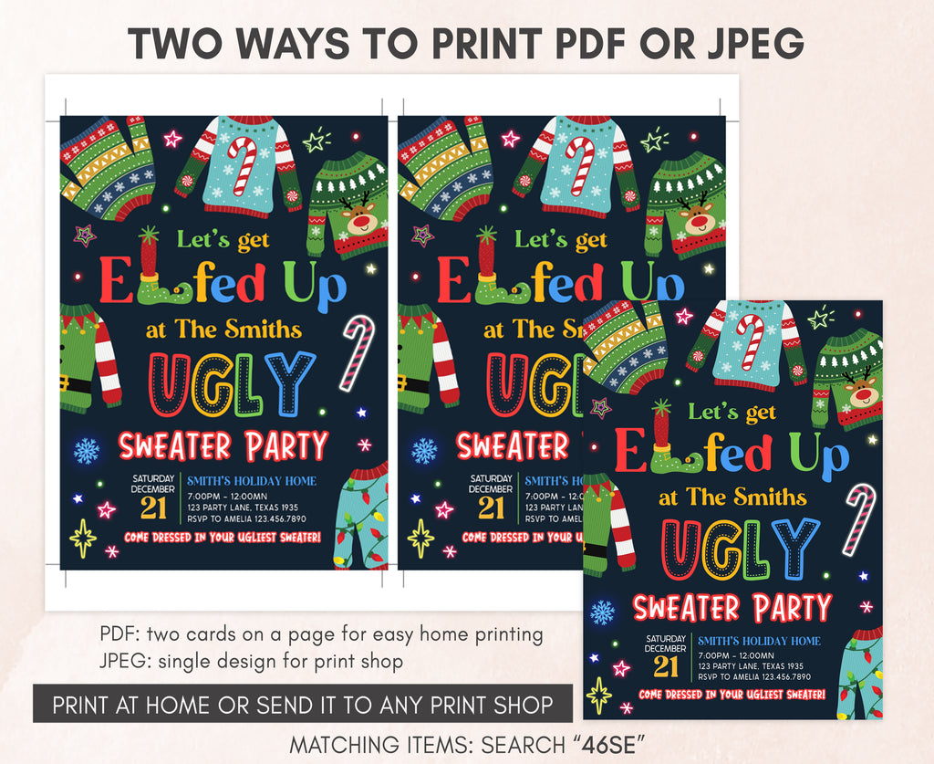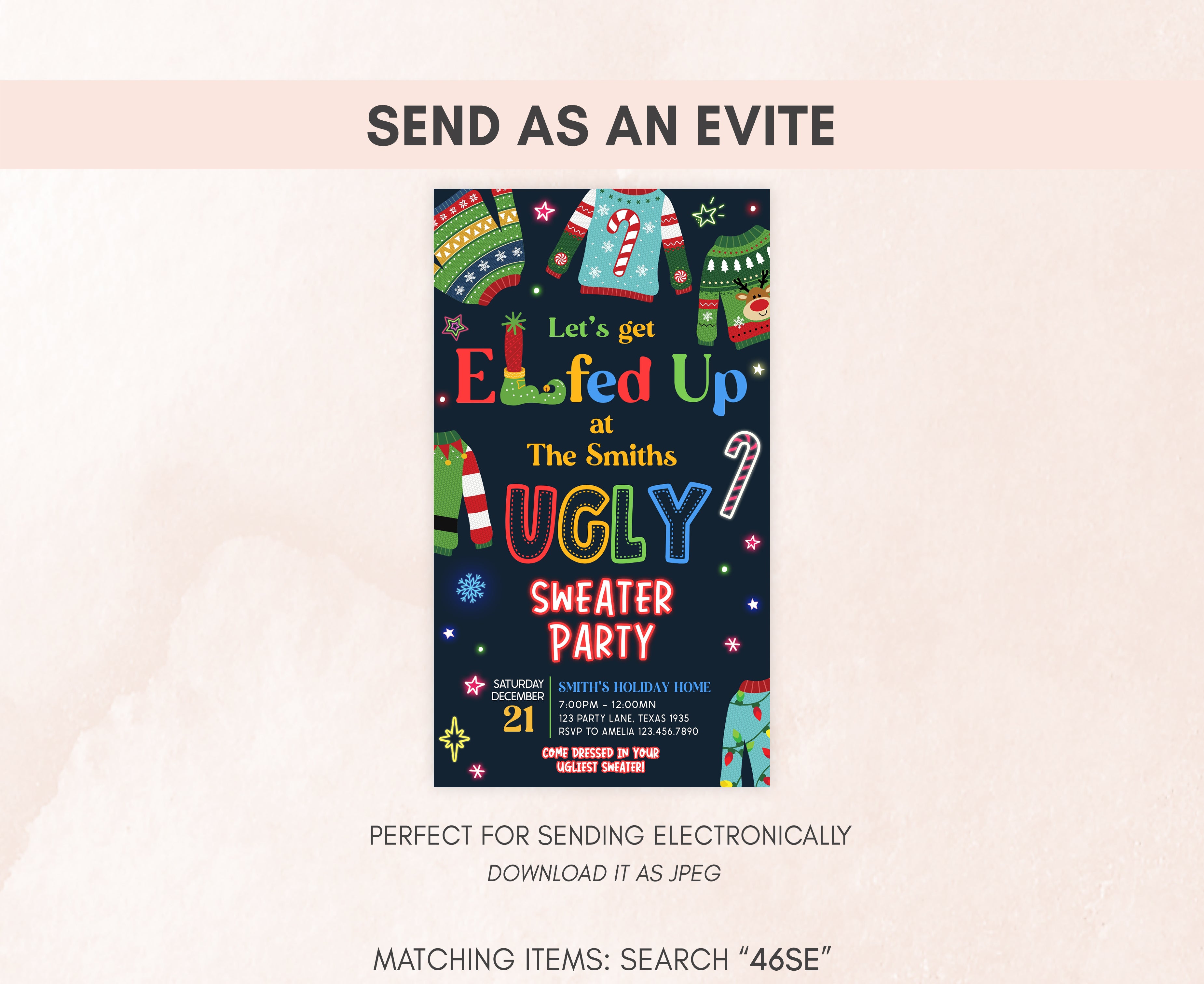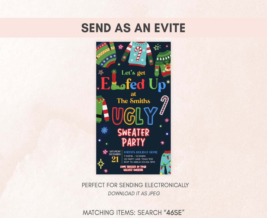 Celebrate with your guests at your Funny Christmas Party using our delightful Festive Ugly Sweater Invitation. This Cozy Christmas Gathering Invite is the ideal choice to tone for a Holiday-themed celebration.