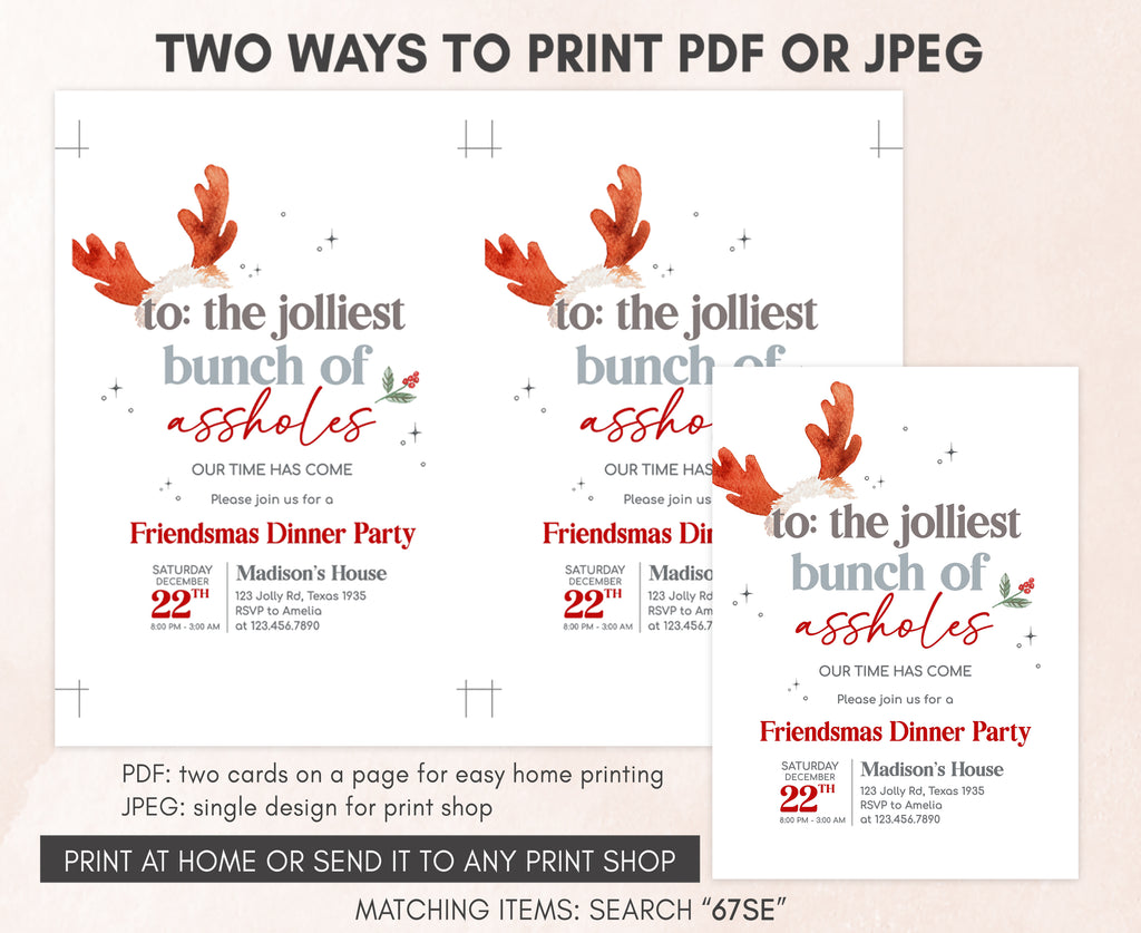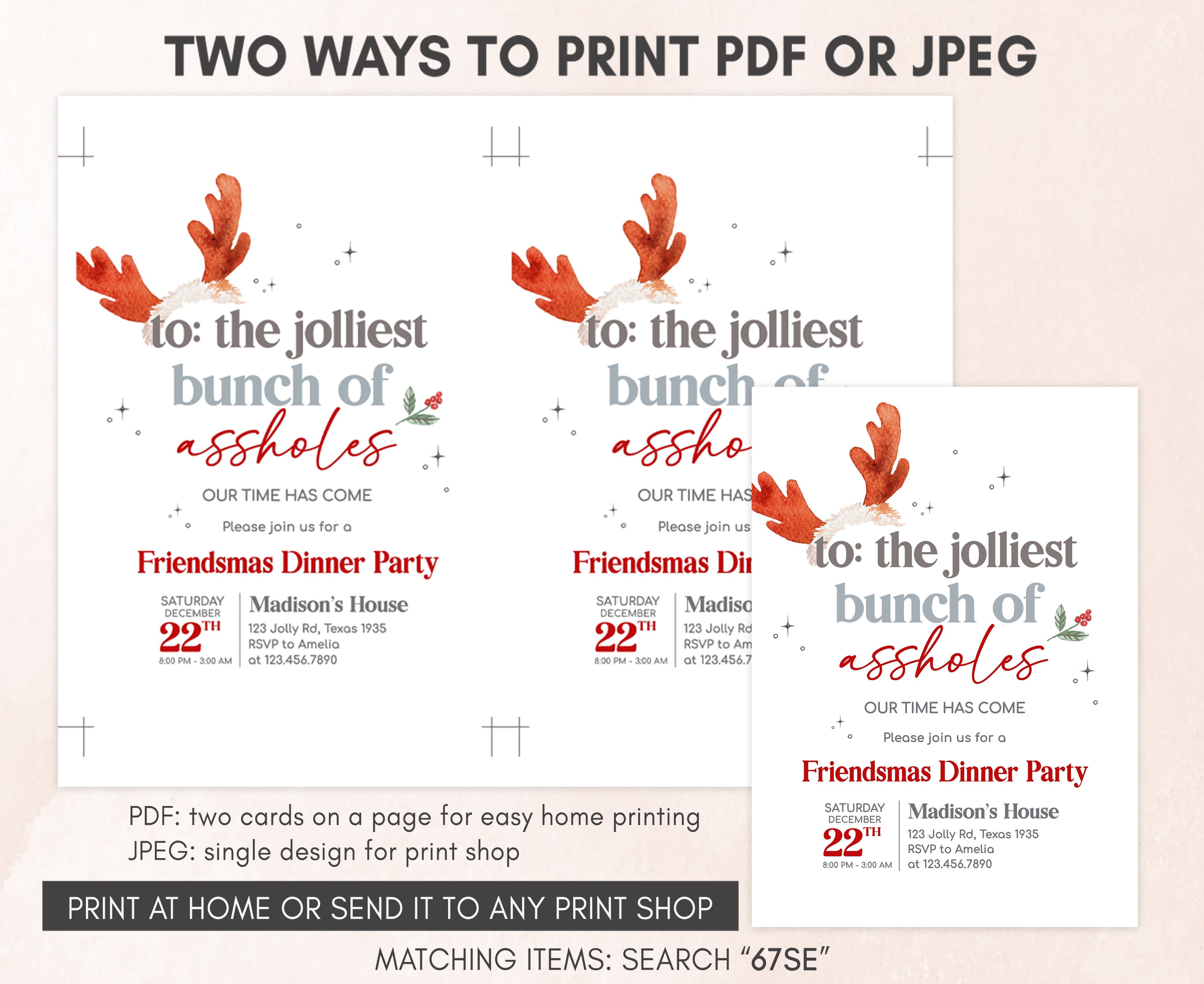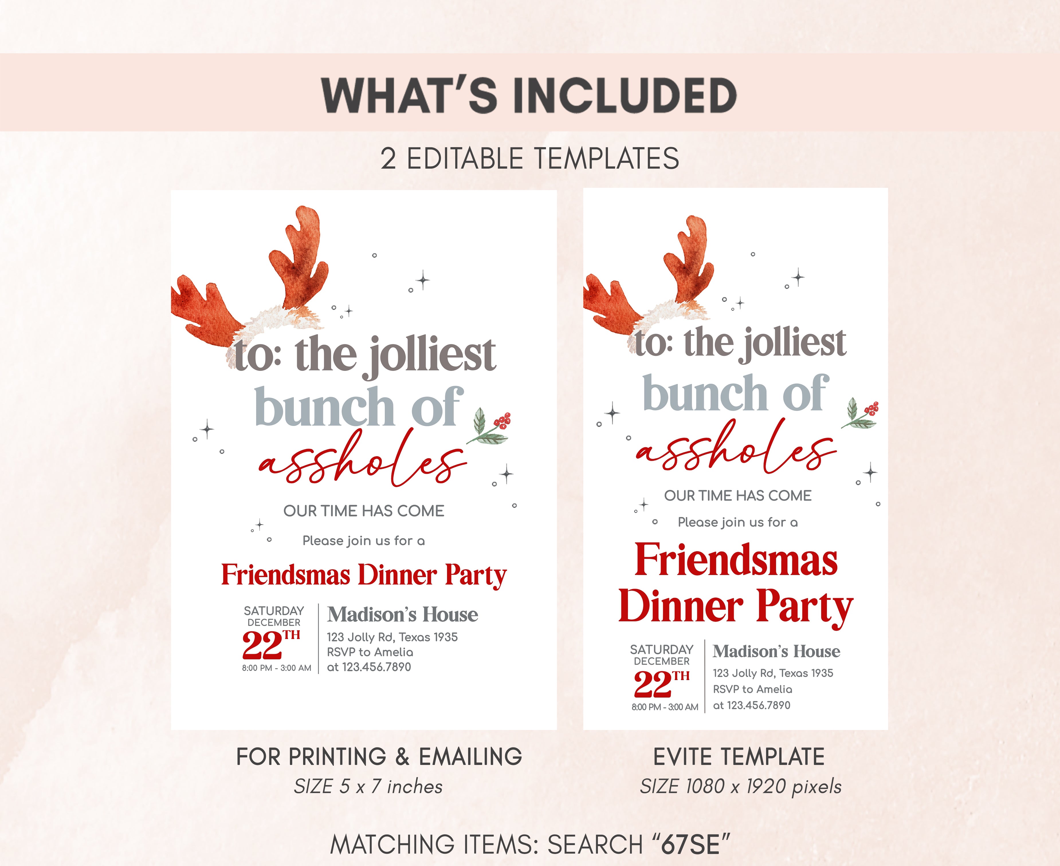 Celebrate with your guests at your Minimalist Christmas Party using our delightful Friendsmas Dinner Party Invitation. This Modern Funny Holiday Invite is the ideal choice to tone for a Christmas-themed celebration.