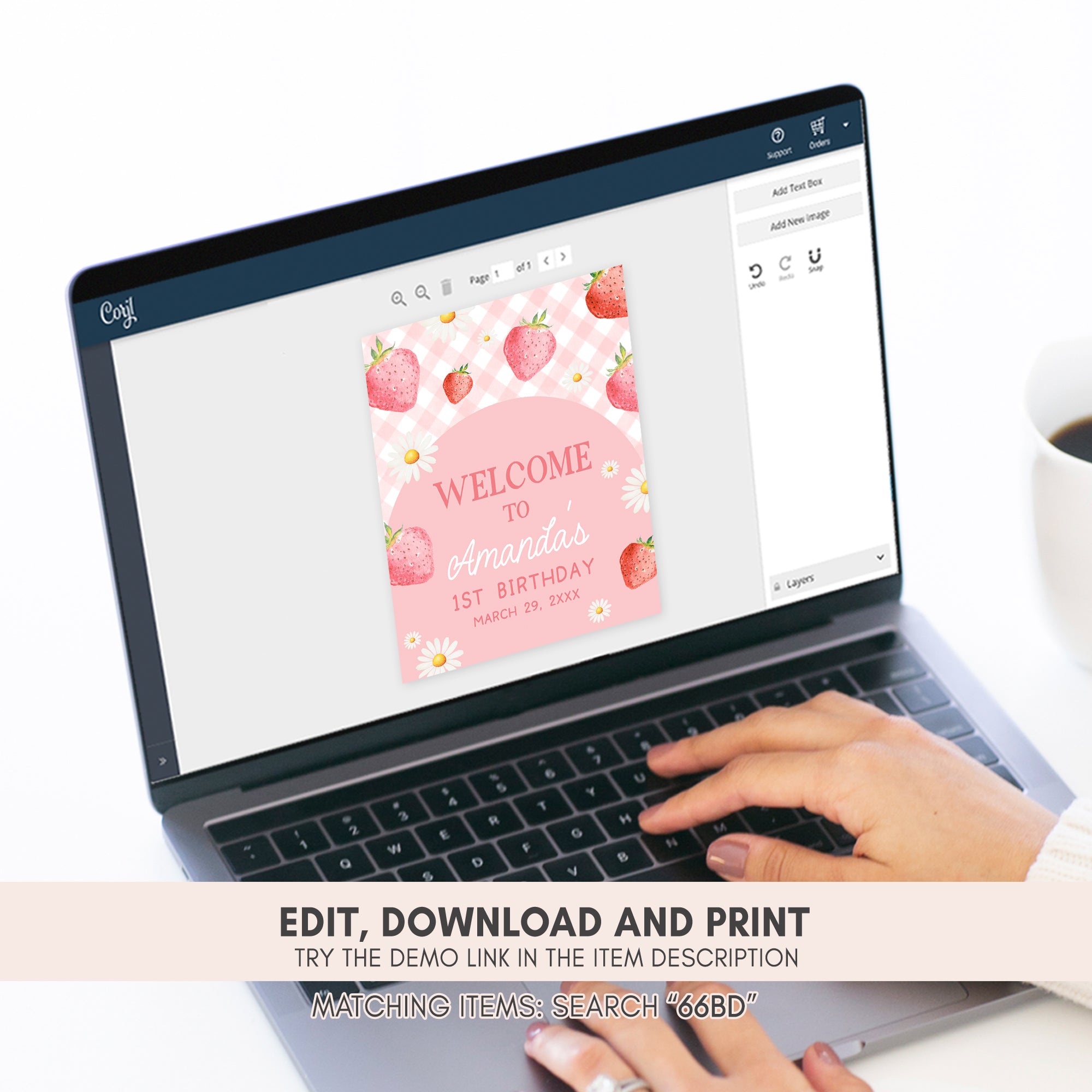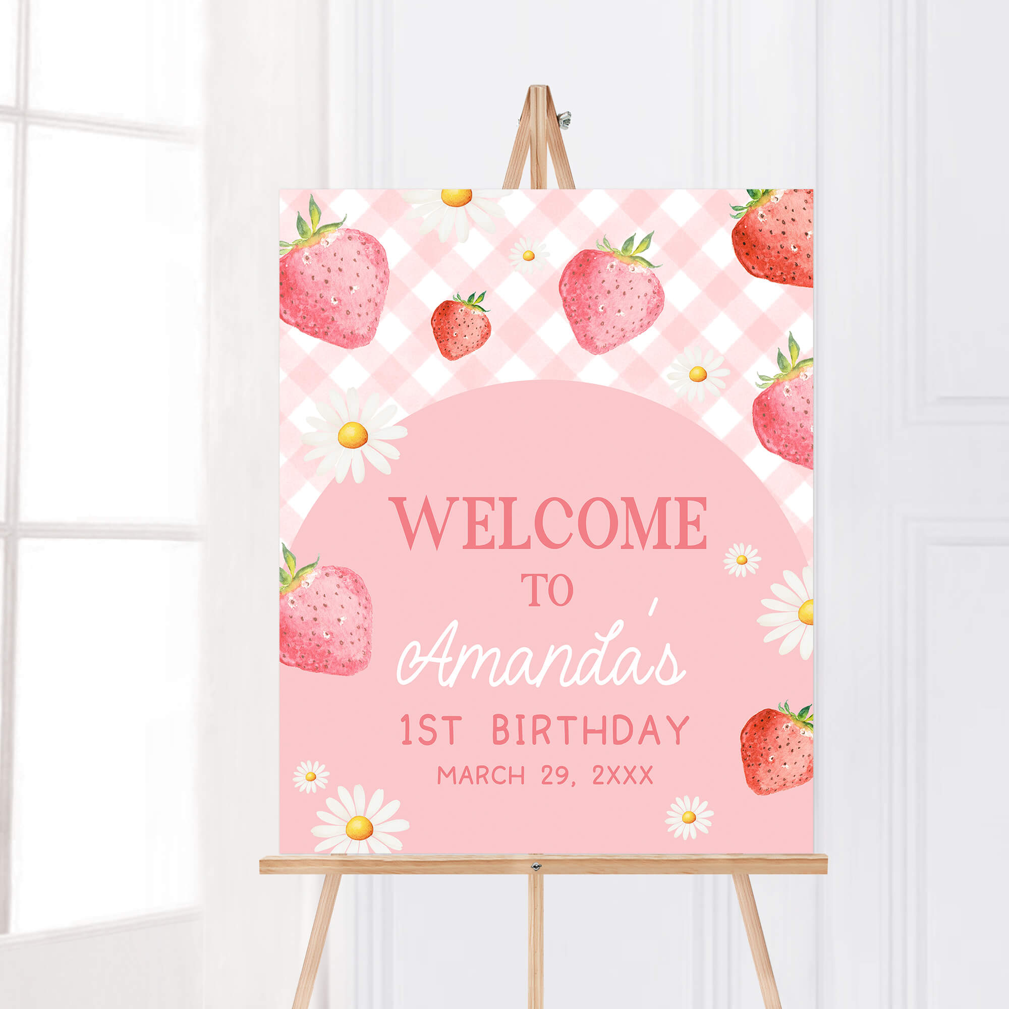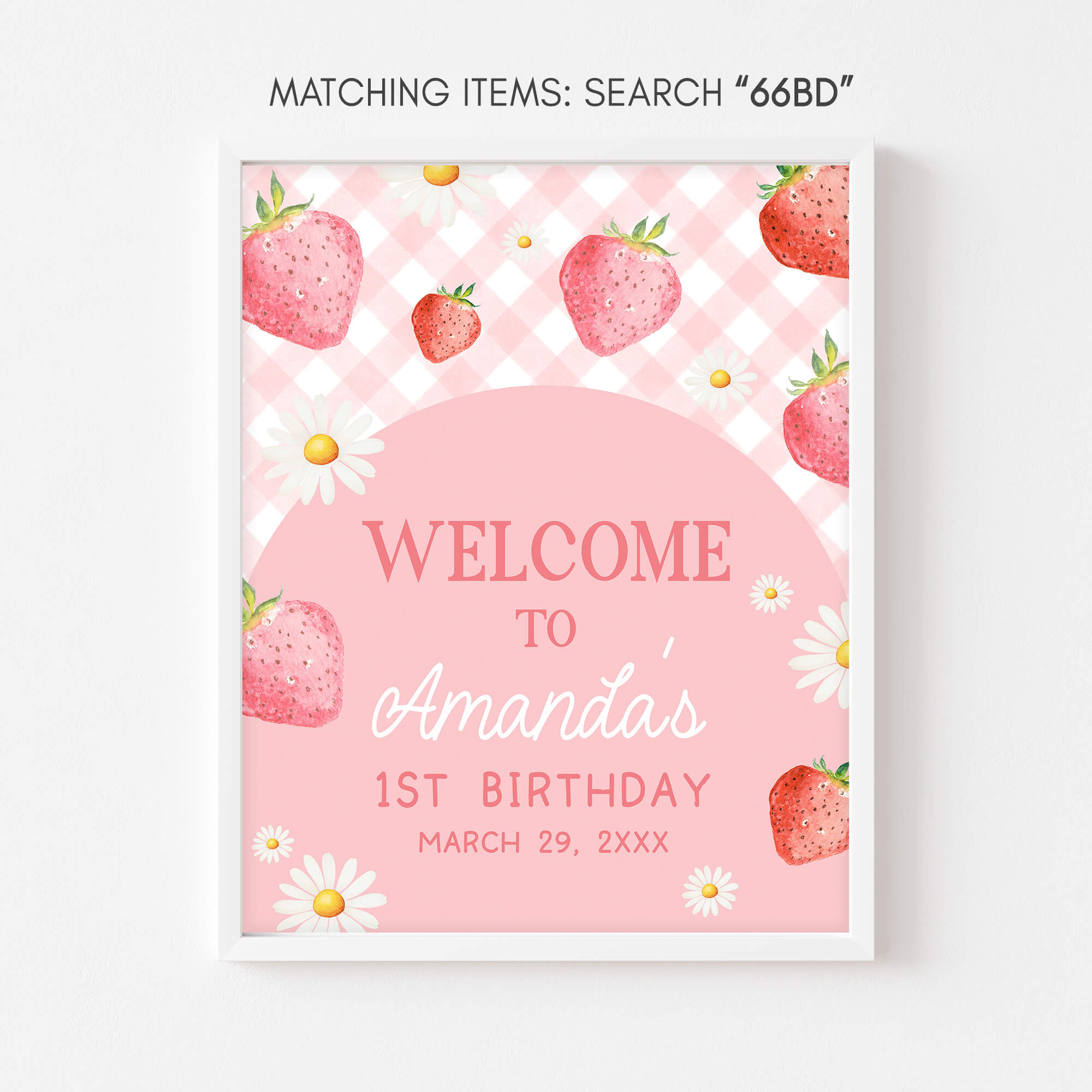 Elevate the charm of your Spring Summer Birthday Party with the Strawberry Gingham Birthday Welcome Sign Printable. With its vibrant design, it effortlessly captivates attention and enhances the overall ambiance, playfully guiding your guests to the heart of the Pink Berry Bash celebration.