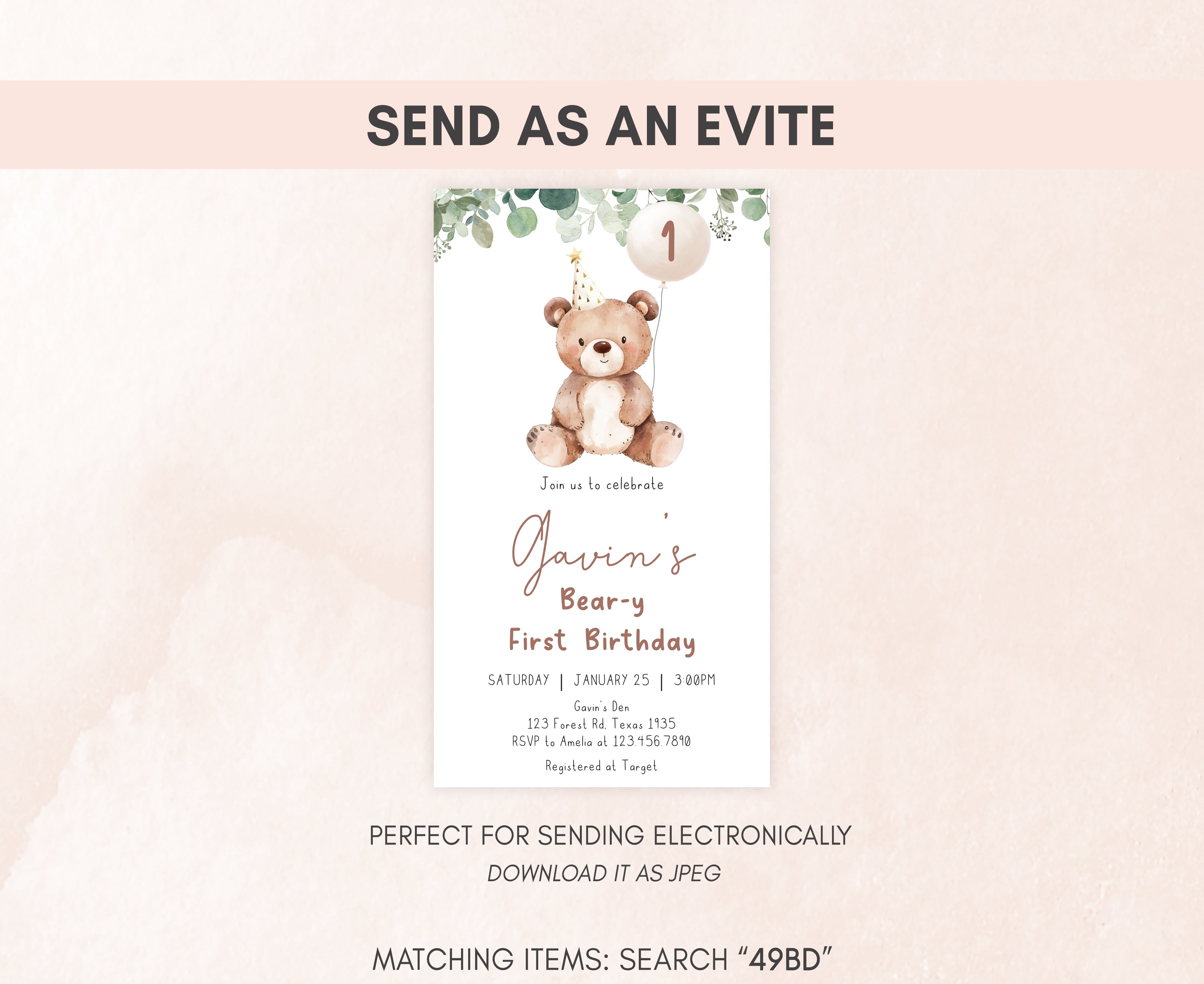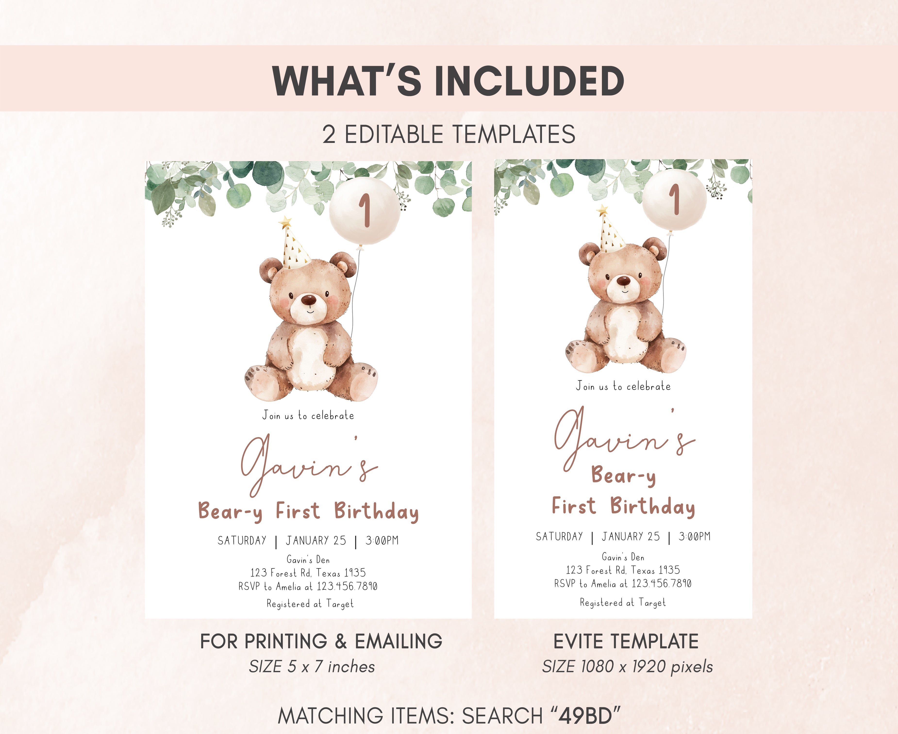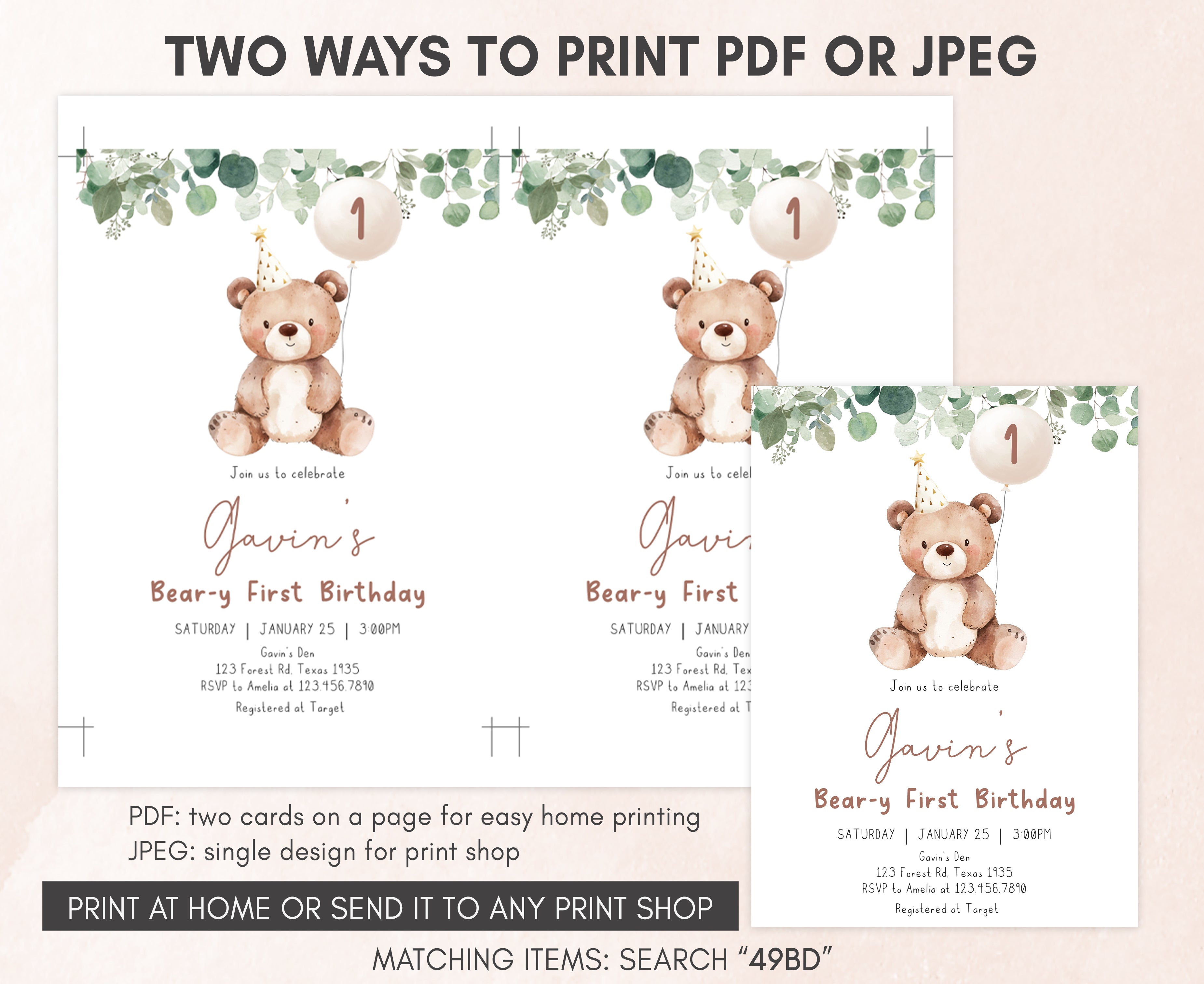 Celebrate with your guests at your Green Balloon Bear Birthday Party using our delightful Woodland Bear Birthday Invitation. This Greenery Teddy Bear Birthday Invite is the ideal choice to tone for a Bear-themed celebration.