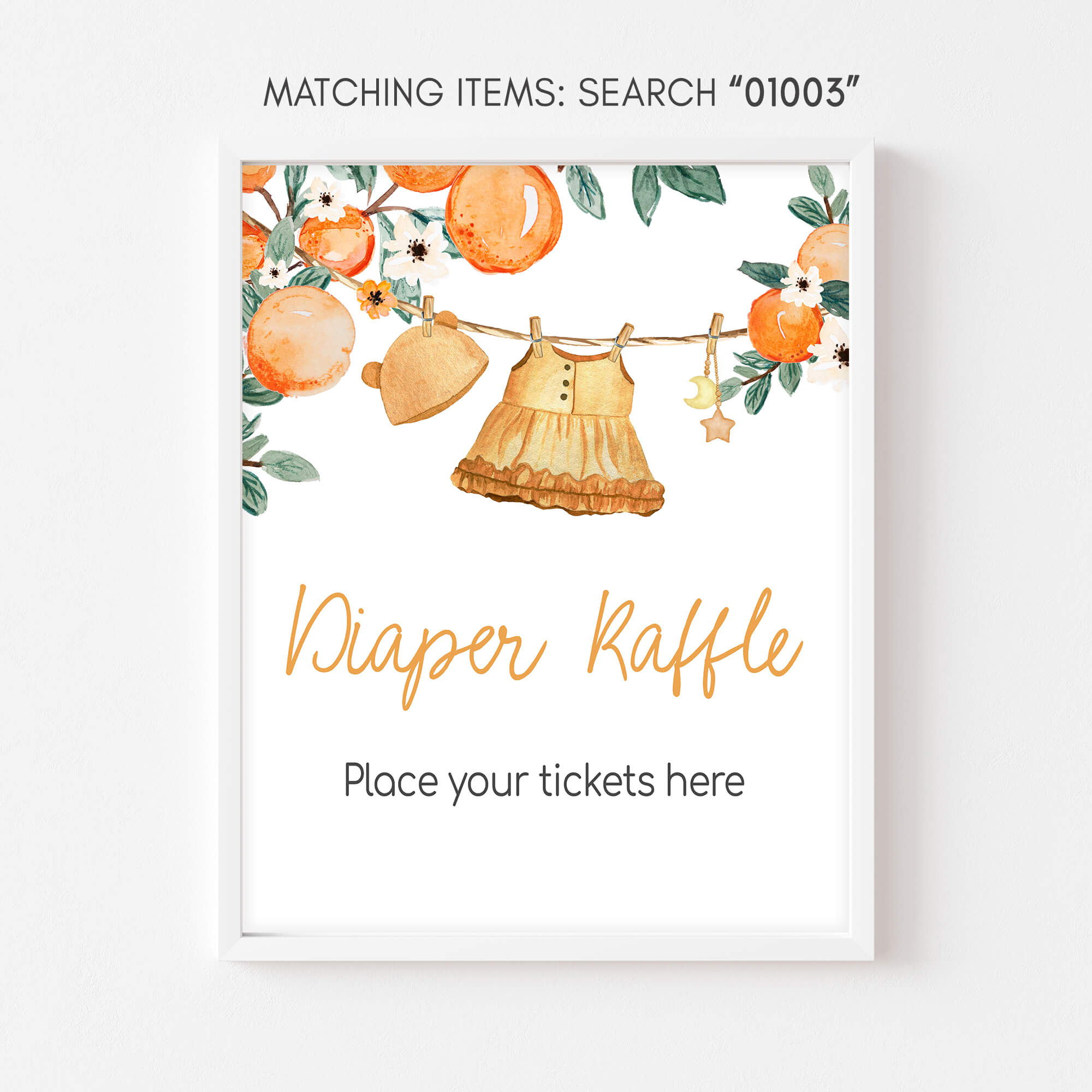 Craft an ideal atmosphere for your Spring Summer Baby Shower Party using our enchanting Orange Little Cutie Baby Shower Diaper Game Sign Printable. These prints not only add a touch of charm but also serve as helpful guides, directing guests to various Cute Baby Clothesline party sections with their delightful designs.