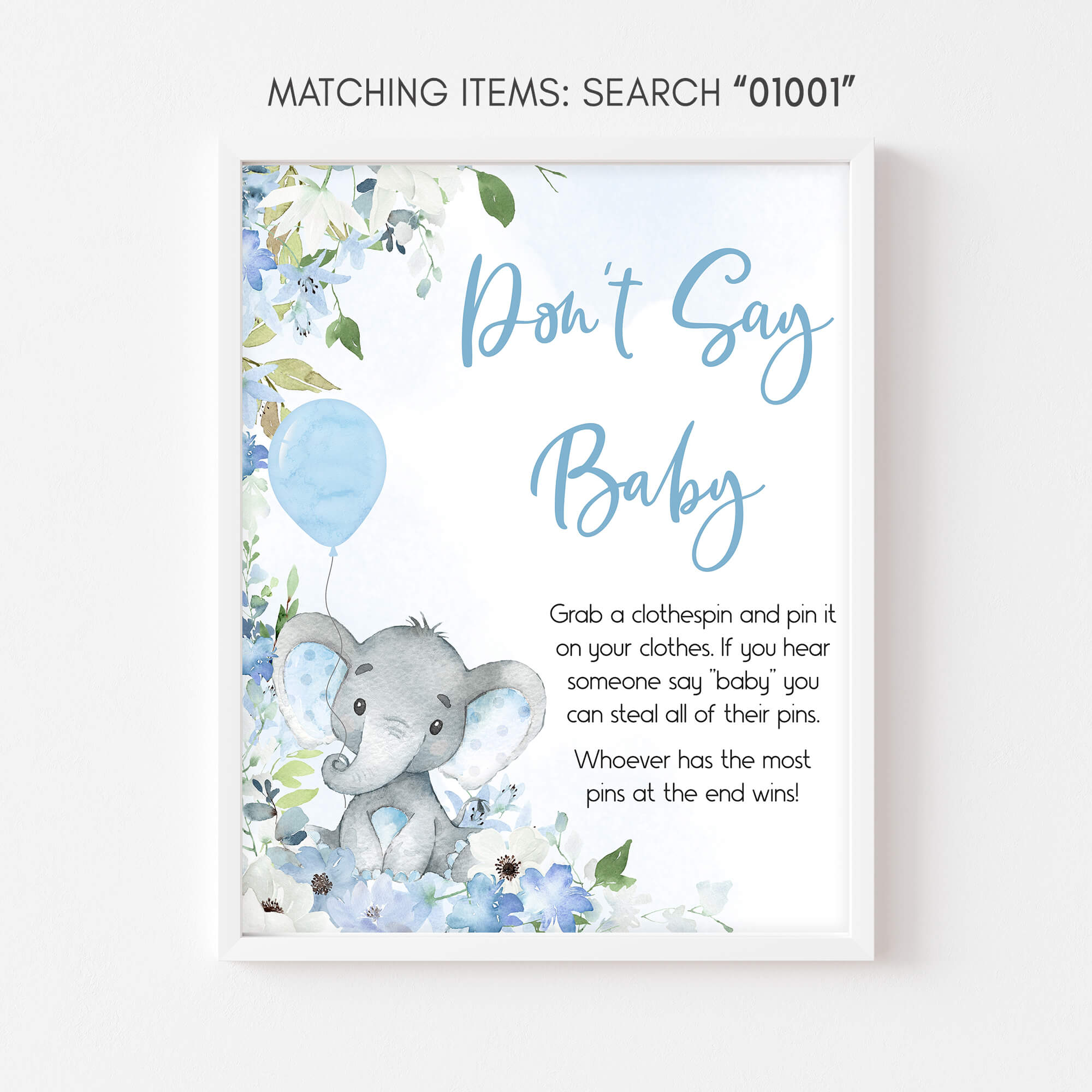 Craft an ideal atmosphere for your Floral Spring Elephant Baby Shower Party using our enchanting Blue Little Peanut Baby Shower Don't Say Baby Game Sign Printable. These prints not only add a touch of charm but also serve as helpful guides, directing guests to various Watercolor Elephant party sections with their delightful designs.