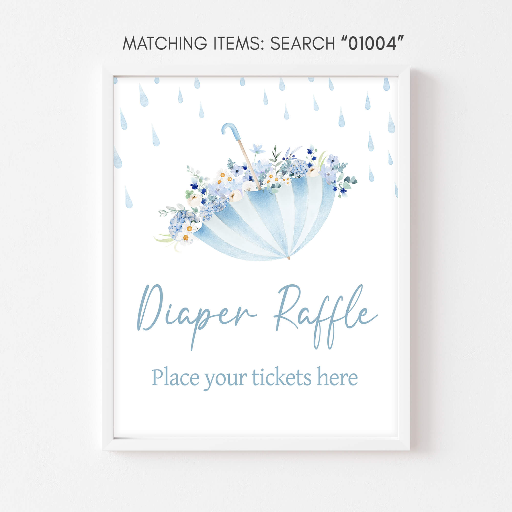 Craft an ideal atmosphere for your Blue Spring Baby Shower Party using our enchanting Rain Showers Baby Shower Diaper Game Sign Printable. These prints not only add a touch of charm but also serve as helpful guides, directing guests to various Floral Umbrella party sections with their delightful designs.